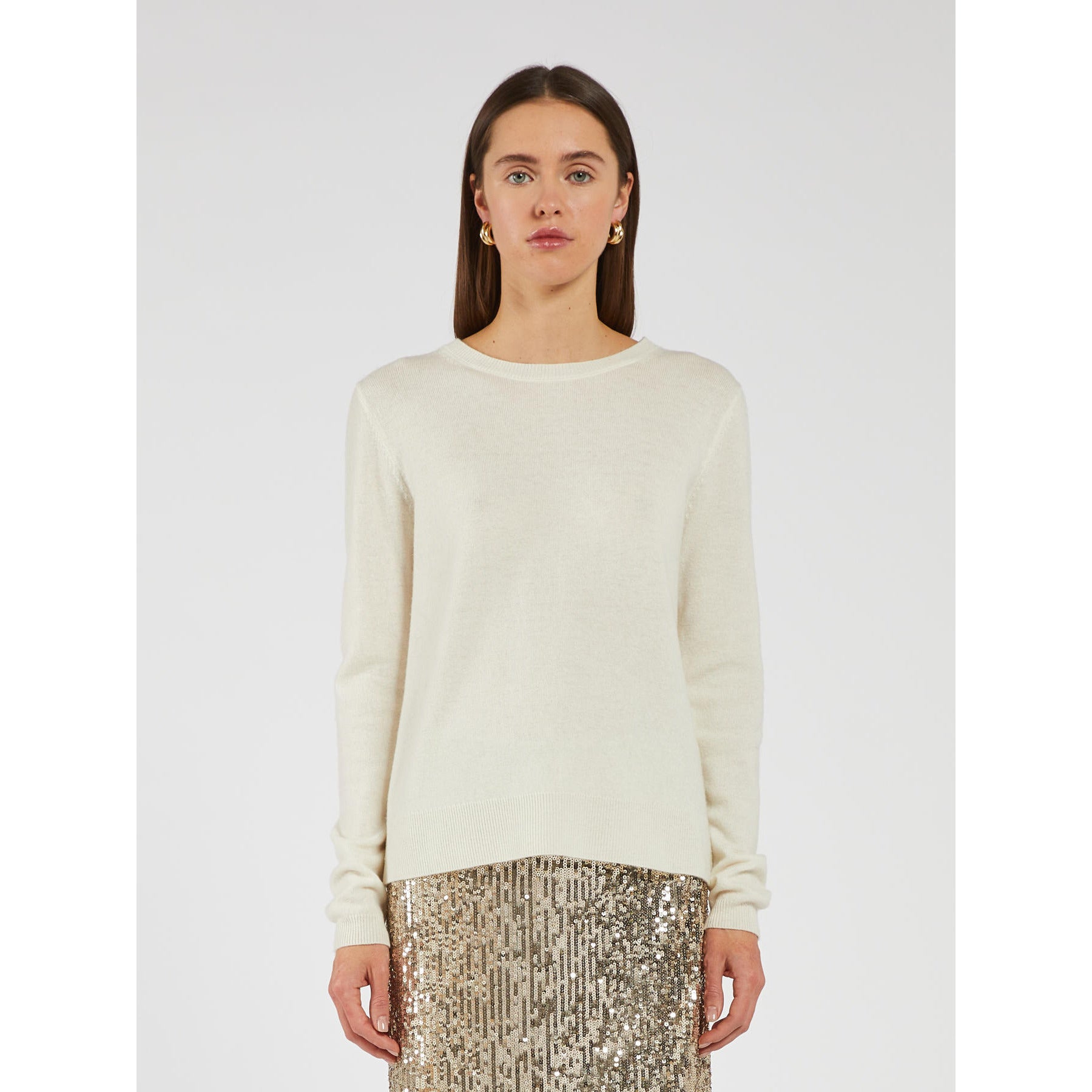 Maglia girocollo in pura lana merino dalla linea semiaderente e scivolata. Maniche lunghe.