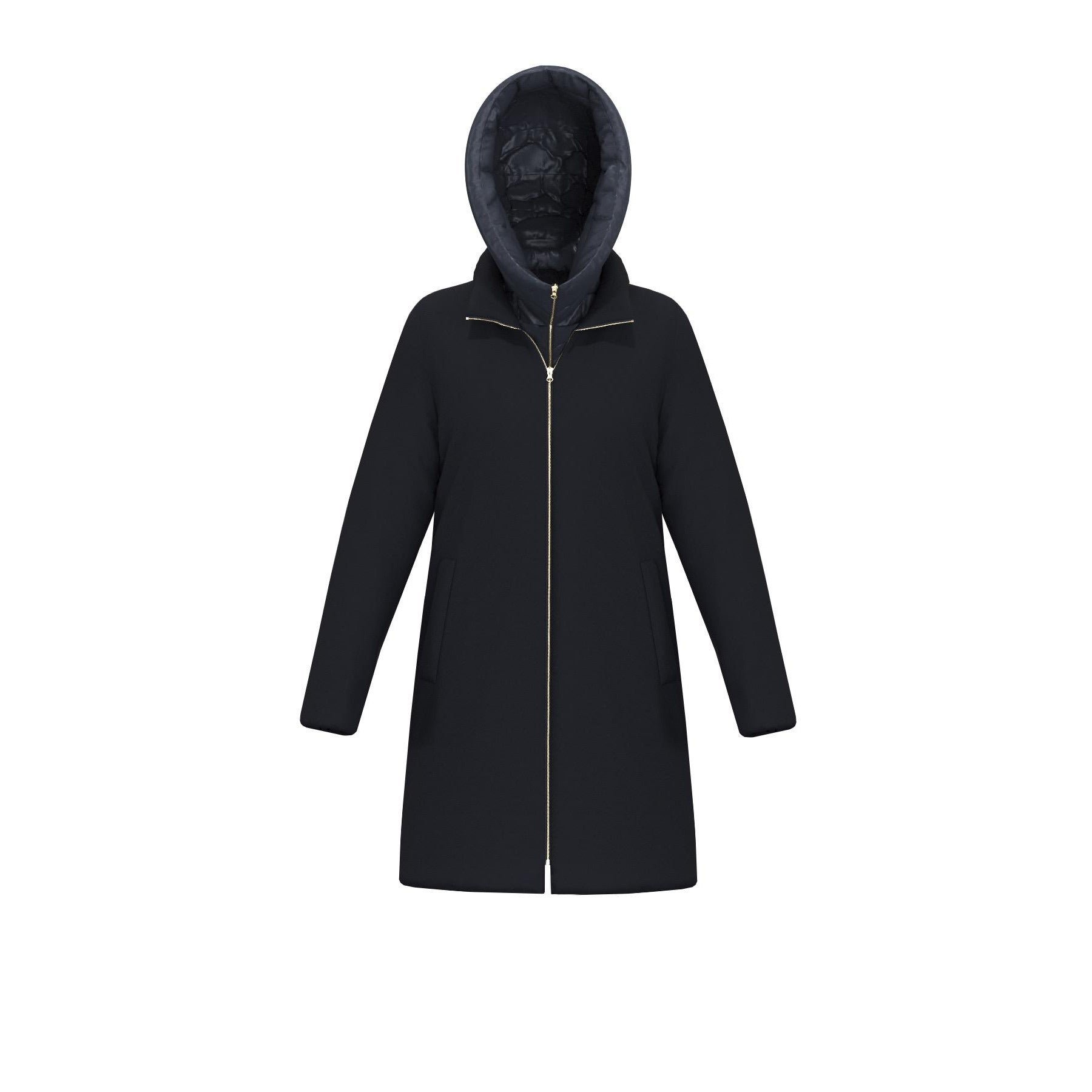 Collo con cappuccio e pettorina rimovibili in tessuto luxury antigoccia imbottito
