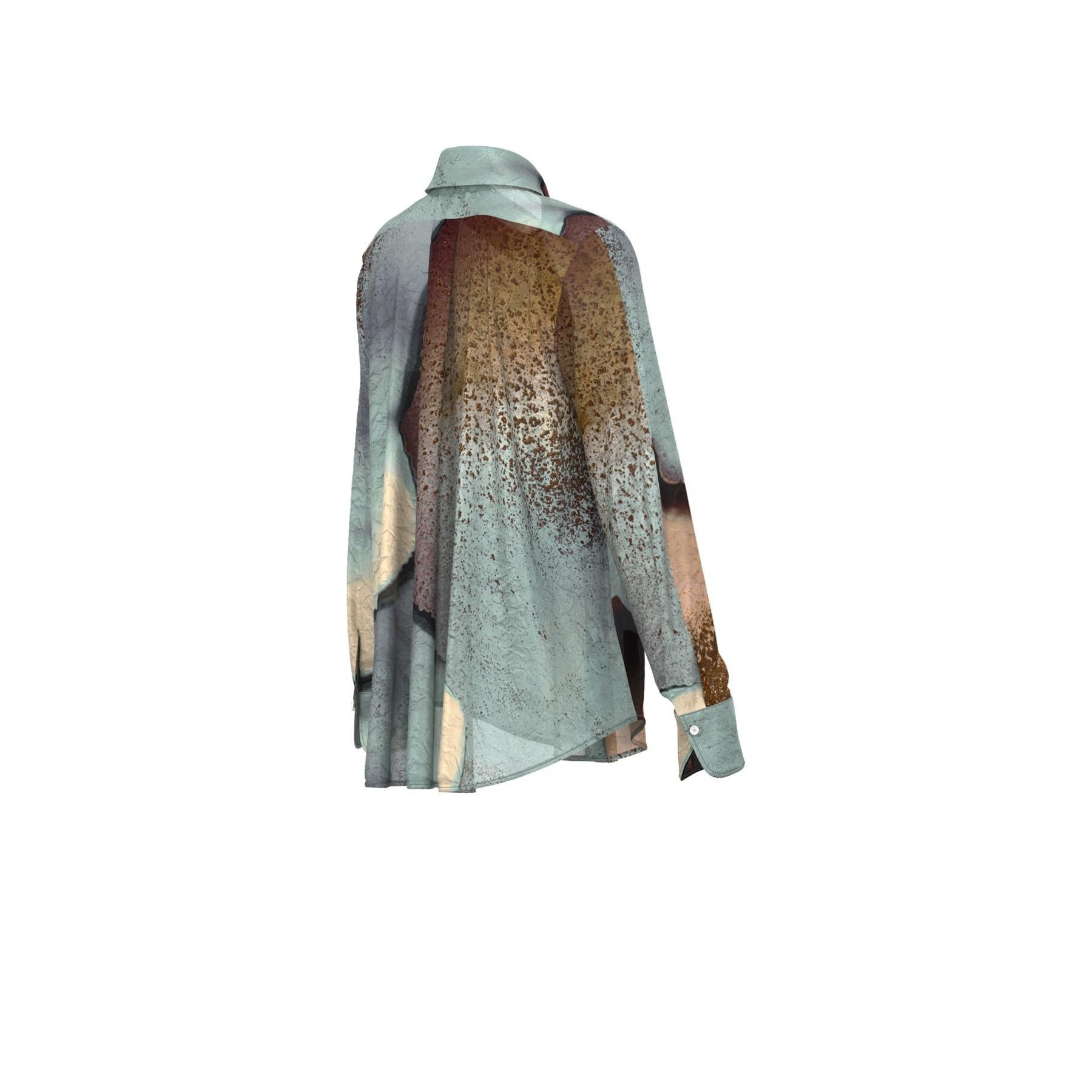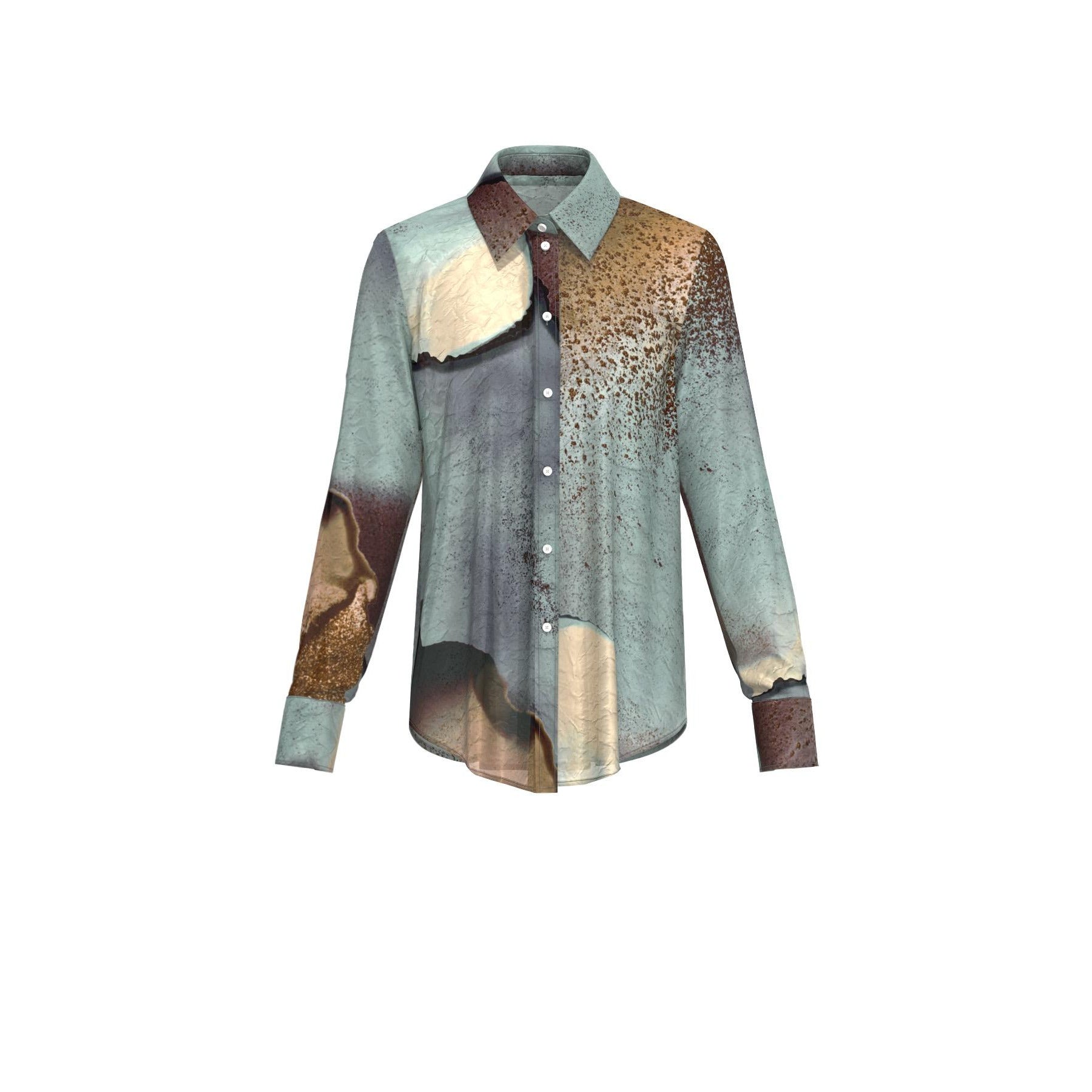 Lasciati ispirare dai colori e dalla fantasia audace di questa camicia in raso: facile da abbinare con blazer e longuette, o da indossare con i denim wide leg di collezione.