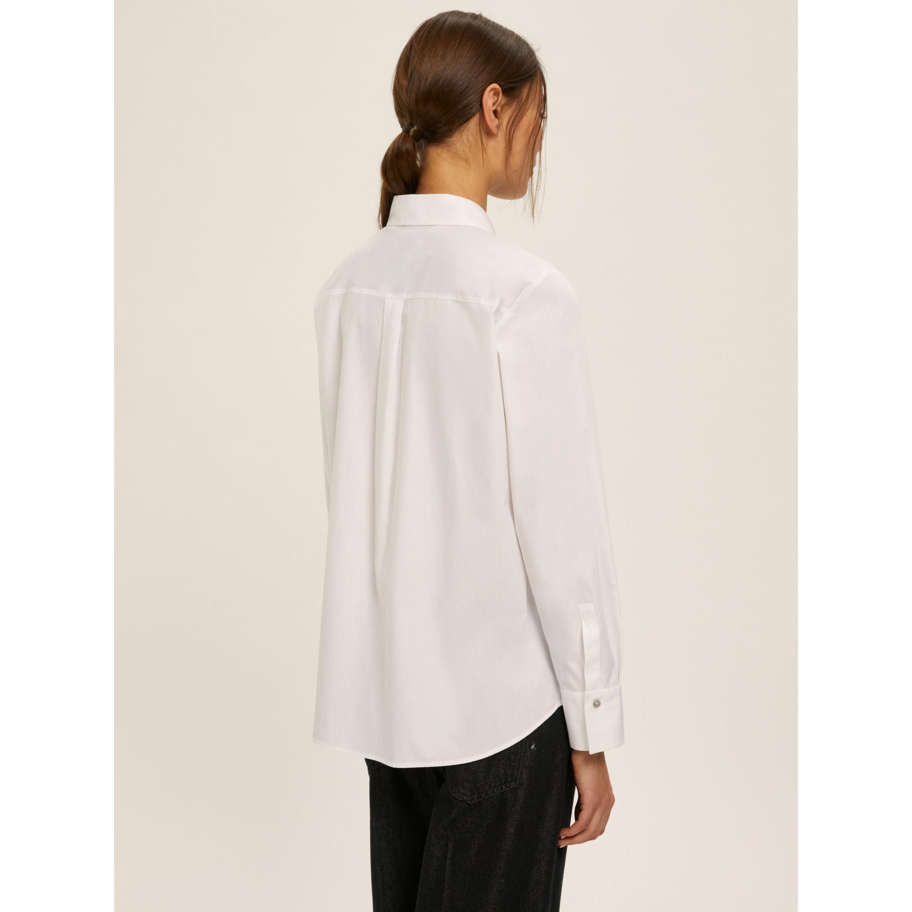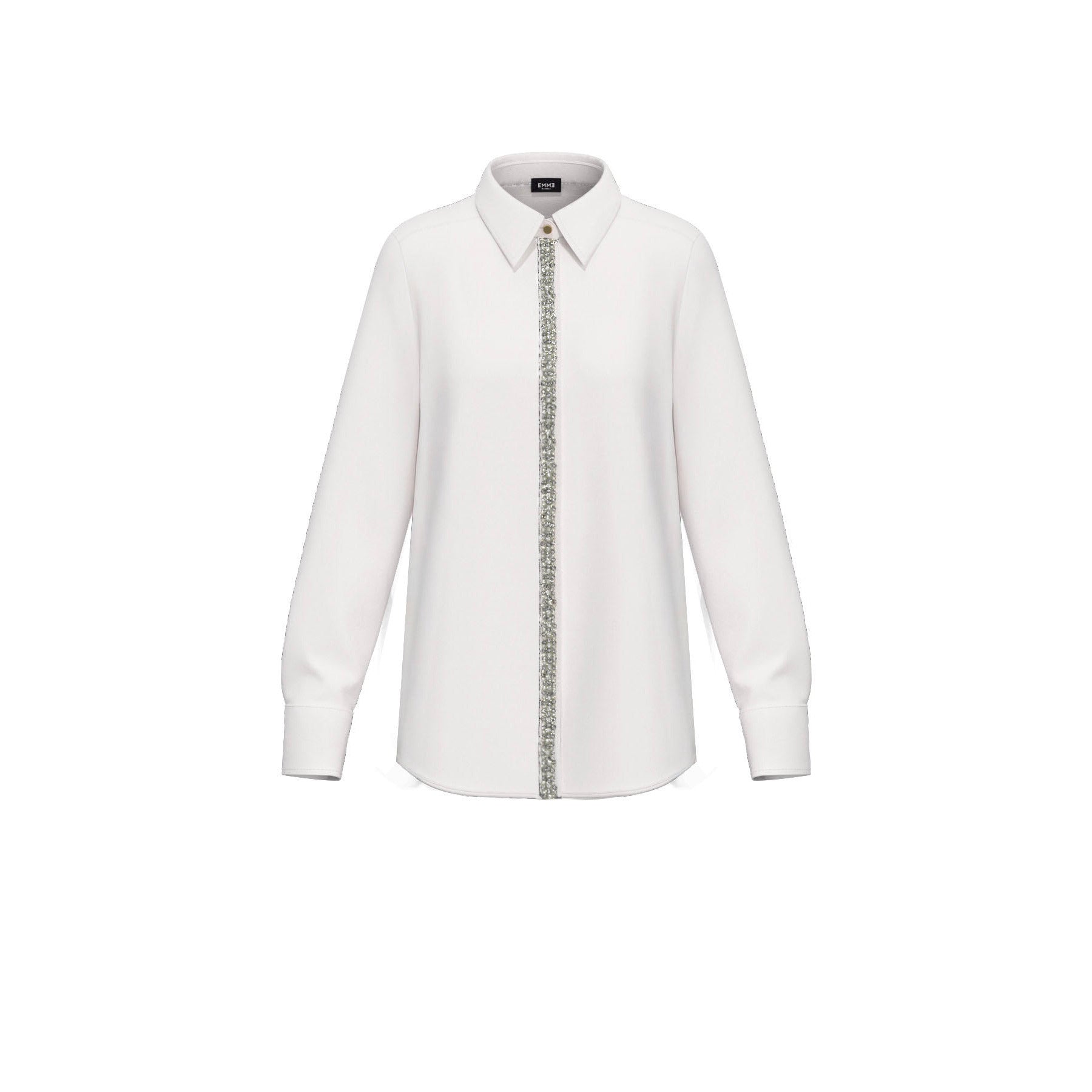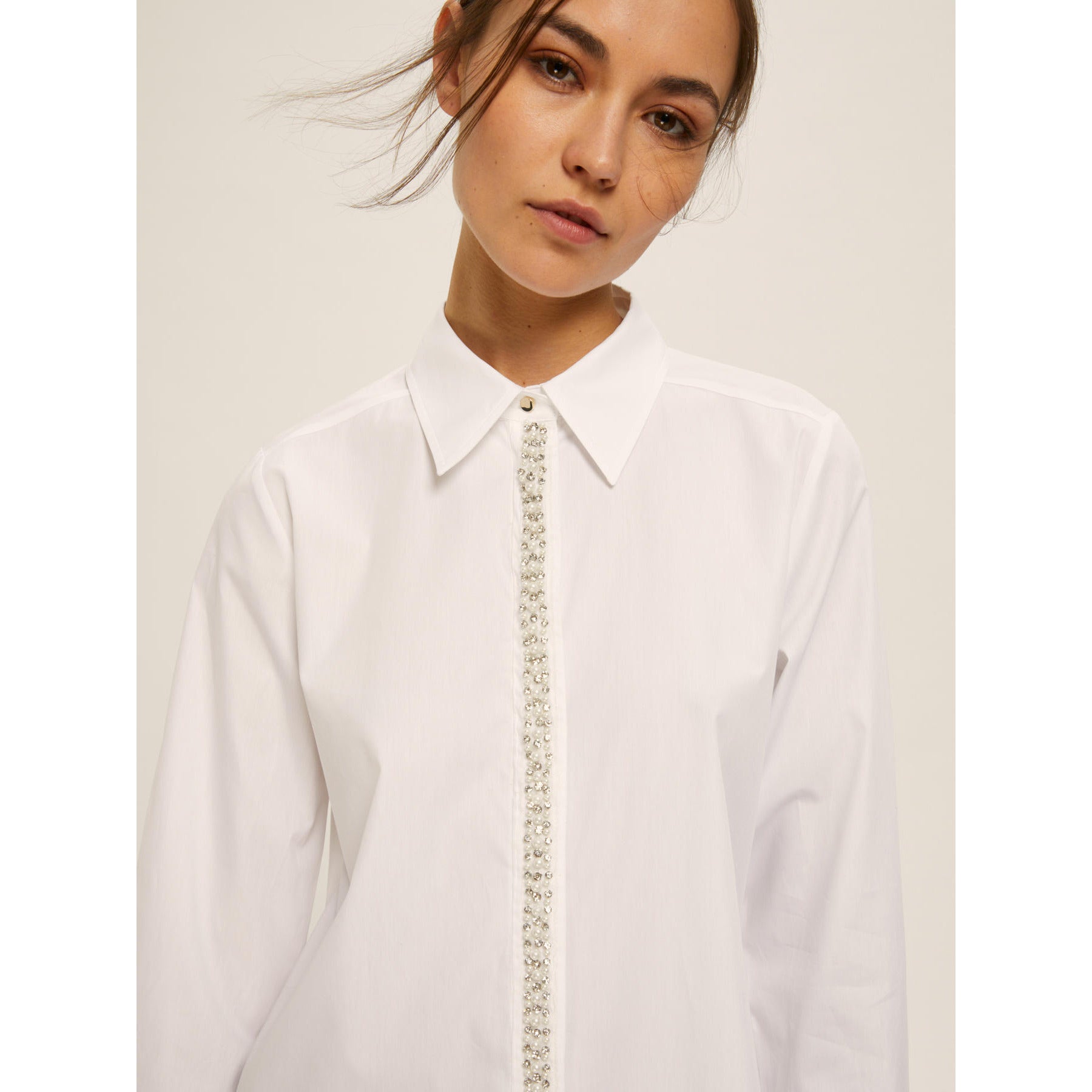 Sparkling beauty con questa camicia in popeline di puro cotone decorata da una graziosa passamaneria con perle e strass. Perfetta per l ufficio con blazer e pantalone, sorprendente con i denim.