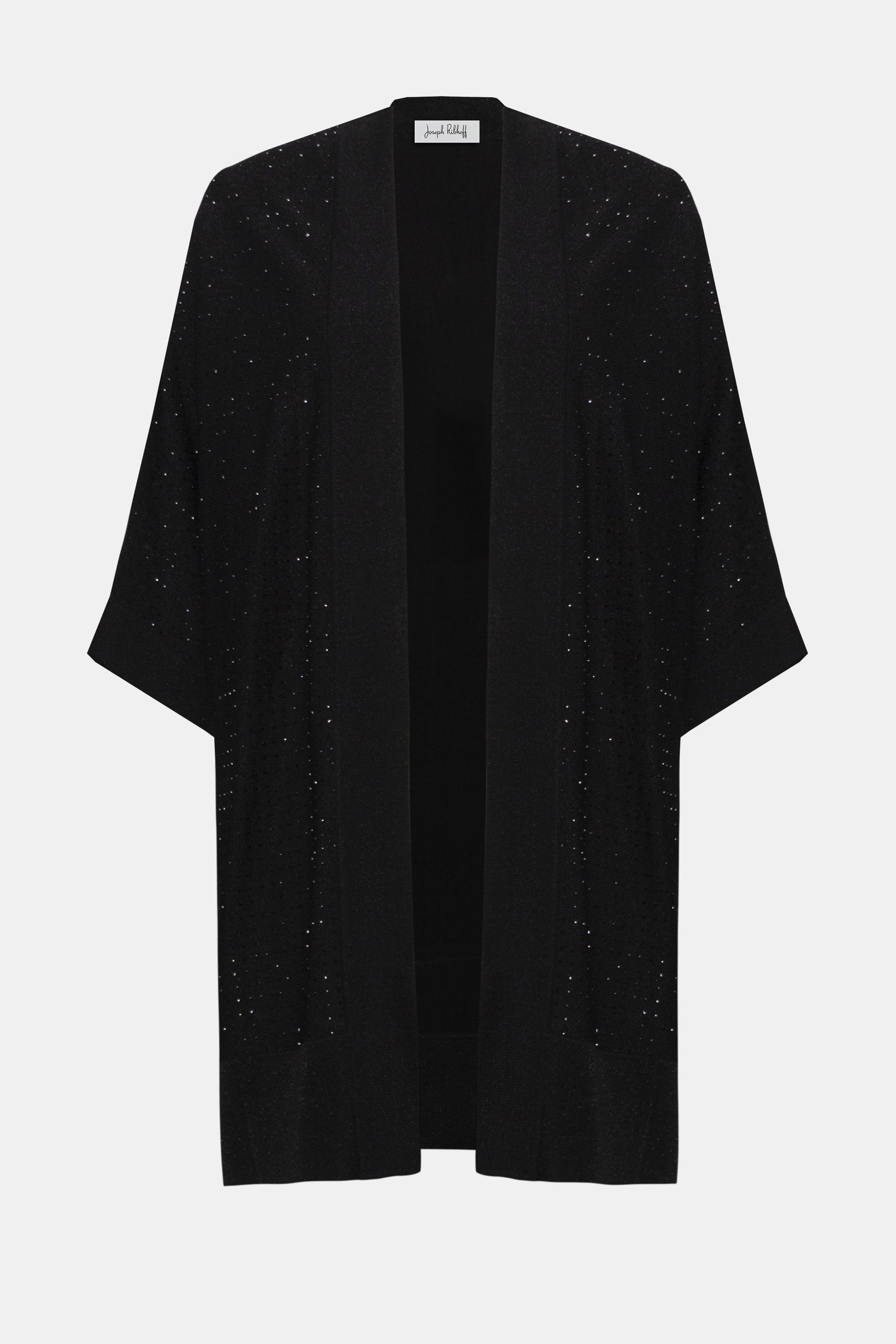 Realizzato in morbida maglia, questo elegante soprabito è reso più glamour dai dettagli termoadesivi scintillanti sul davanti. Il design lungo con apertura sul davanti e silhouette dritta crea un look aggraziato e fluido, perfetto per ogni occasione.