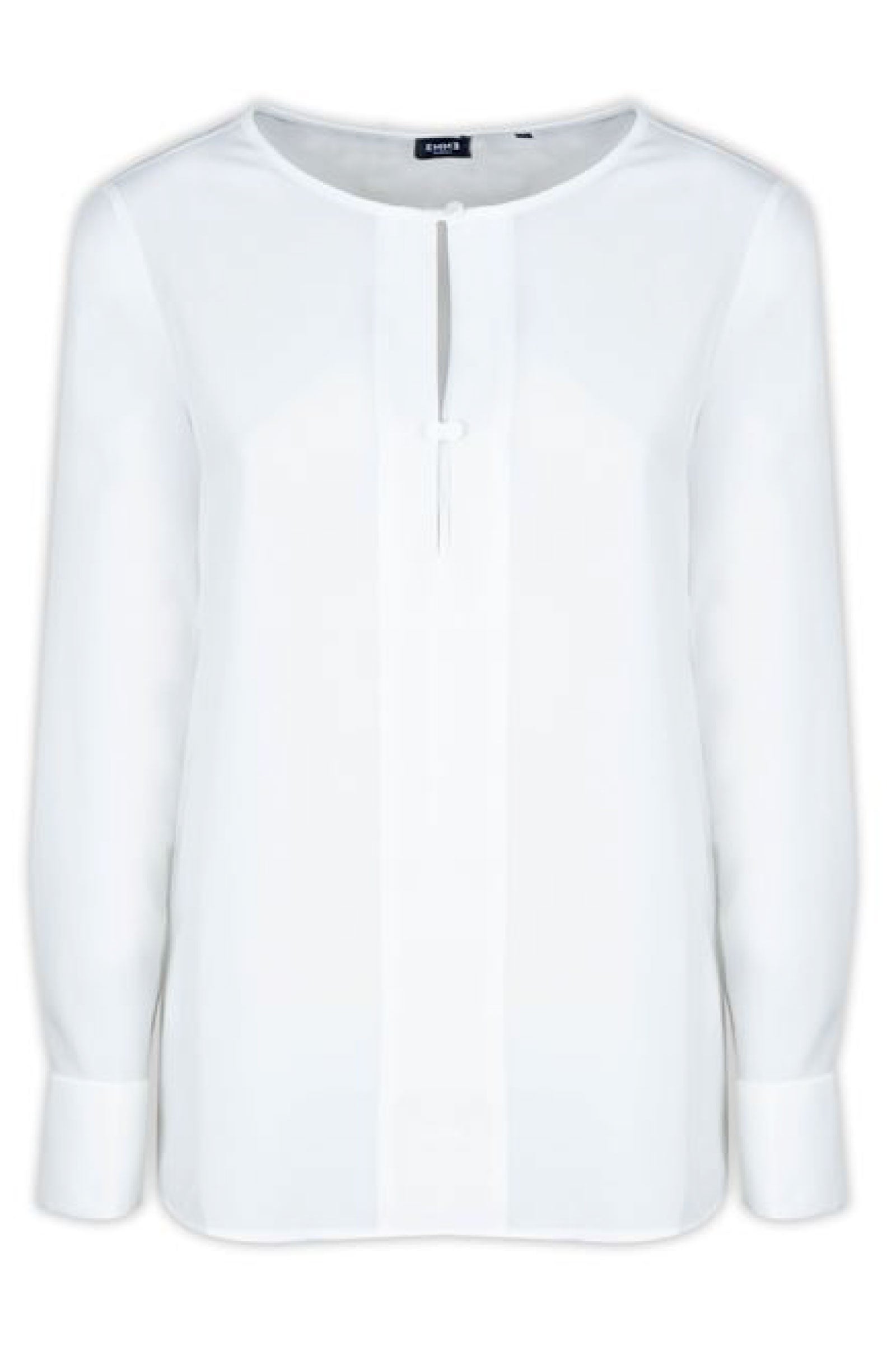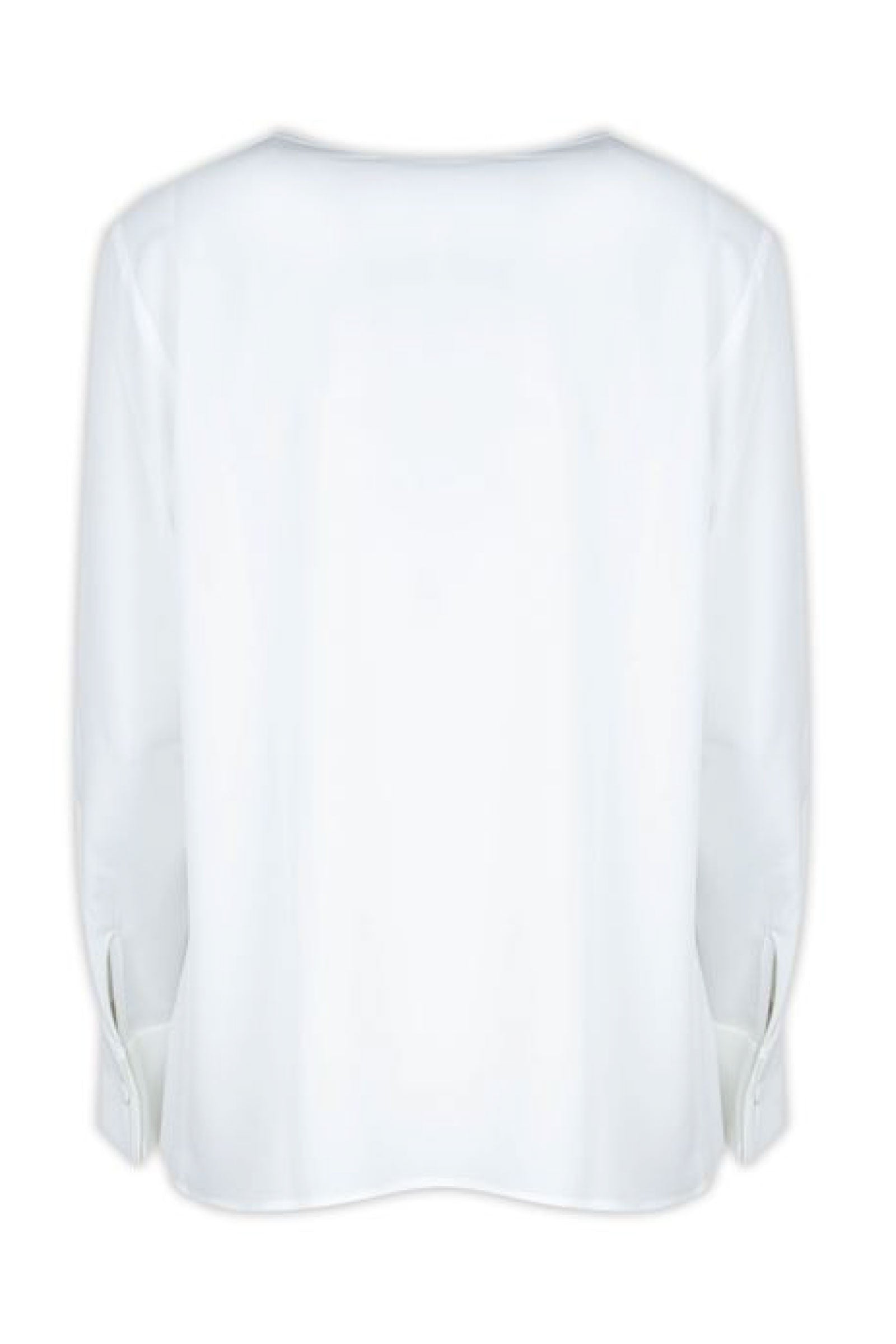 Blusa EMME MARELLA in satin con scollo rotondo, apertura frontale con due bottoni, maniche lunghe con polsini con bottoni.
