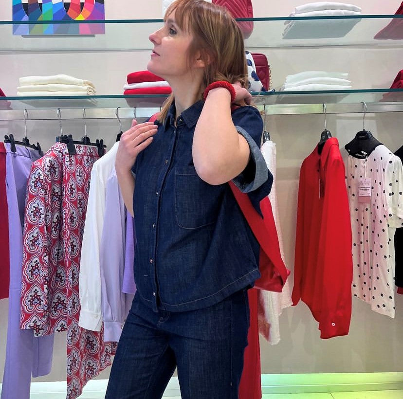 Camicia in denim misto lino e cotone dalla linea boxy, chiusa con bottoni metallici. Colletto classico e maniche a kimono corte con risvolto. Tasca applicata sul petto. Fondo arricciato sul retro.Tessuto contenente cotone proveniente da una catena di fornitori impegnati in un’agricoltura a basso impatto ambientale. Il finissaggio del denim viene realizzato attraverso Indigo Flow, una tecnica di tintura brevettata e sostenibile che consente una riduzione dell’impatto ambientale grazie alla tintura indaco superficiale. Questo consente di risparmiare il 70% di acqua. Si ottiene inoltre un ingente risparmio energetico grazie ad una lavorazione senza calore nella fase di finissaggio.