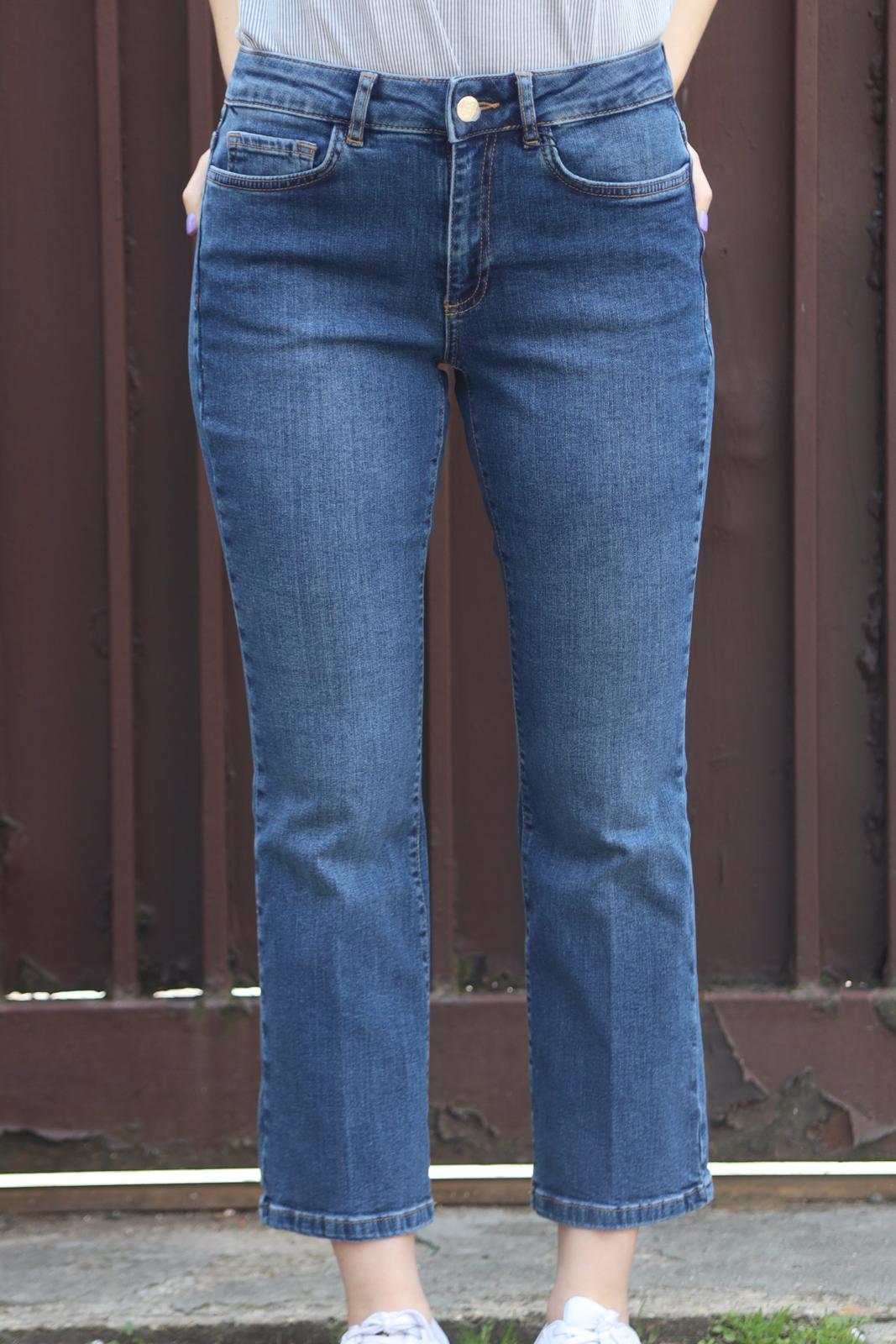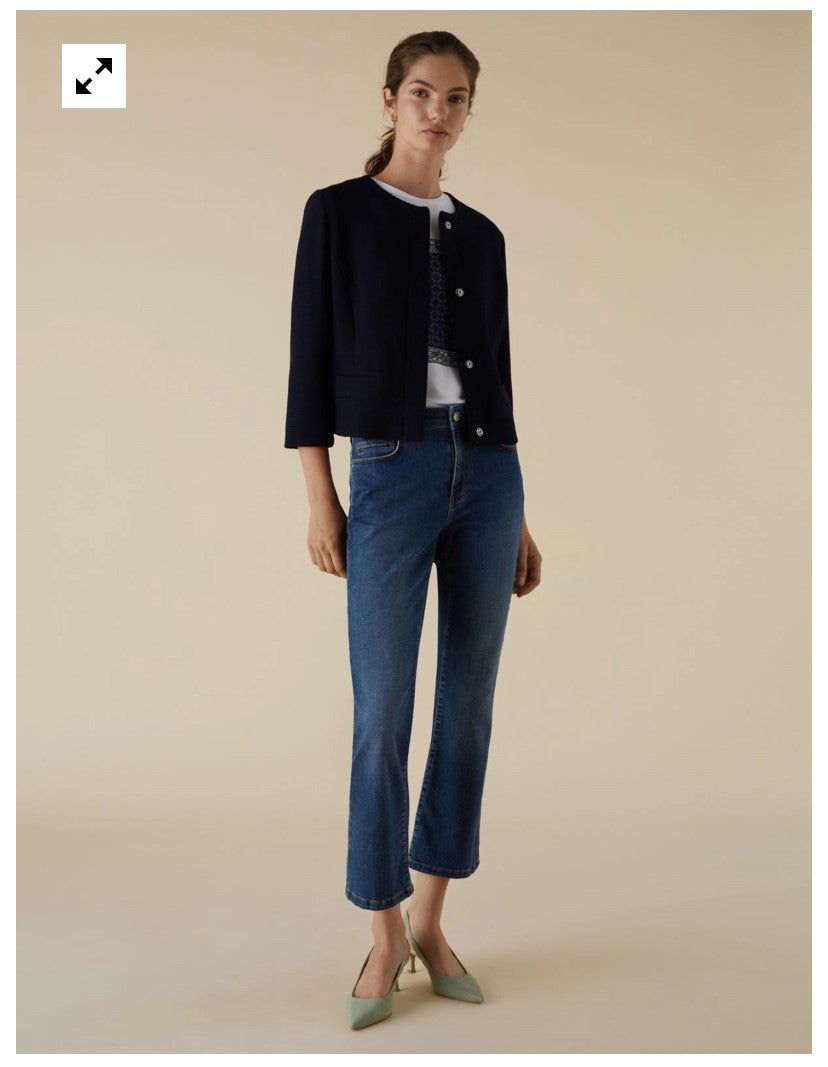 Linea flare e allure rétro per questi jeans in denim di cotone stretch dal fascino vintage. L essenziale design cinque tasche si arricchisce delle impunture a contrasto.