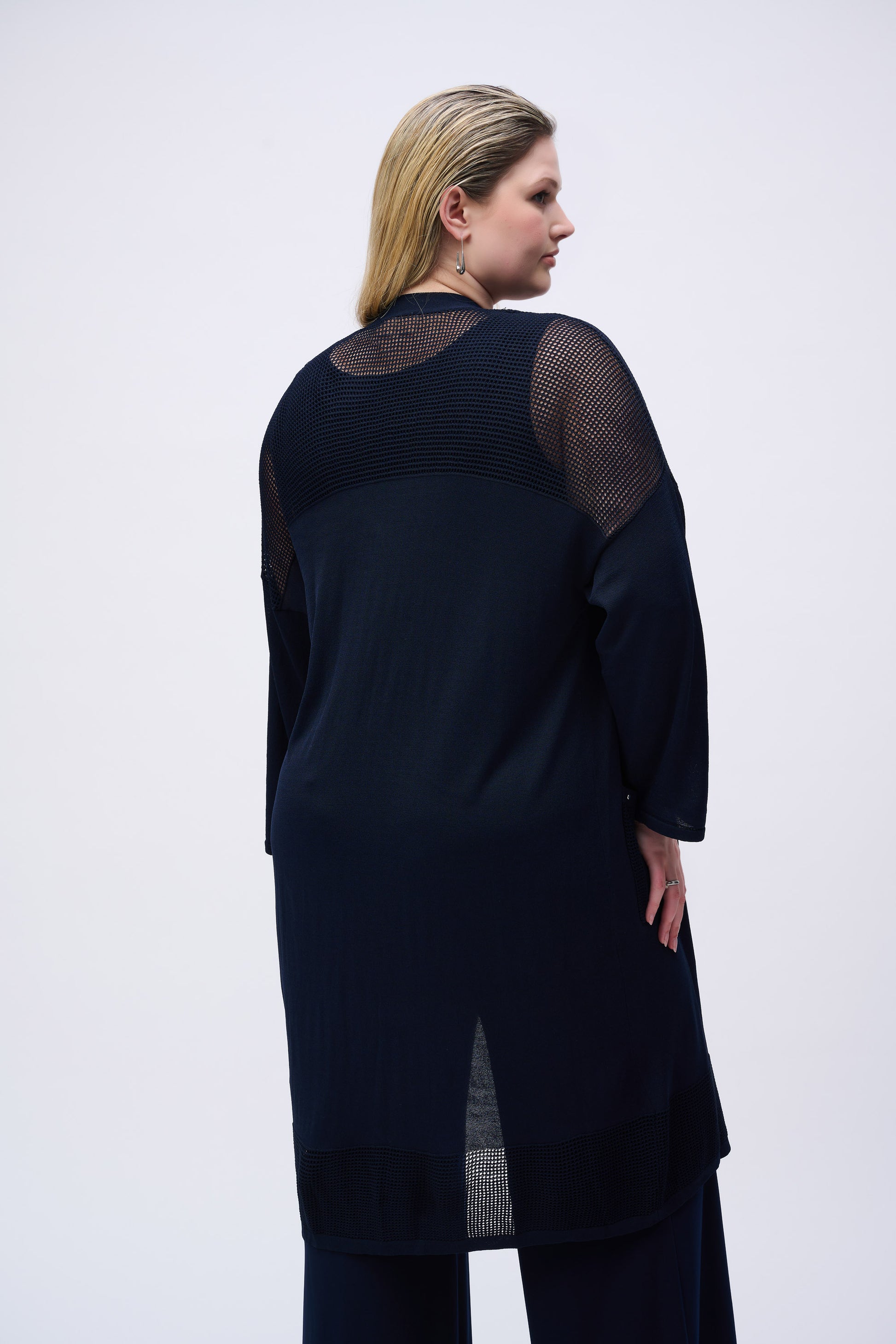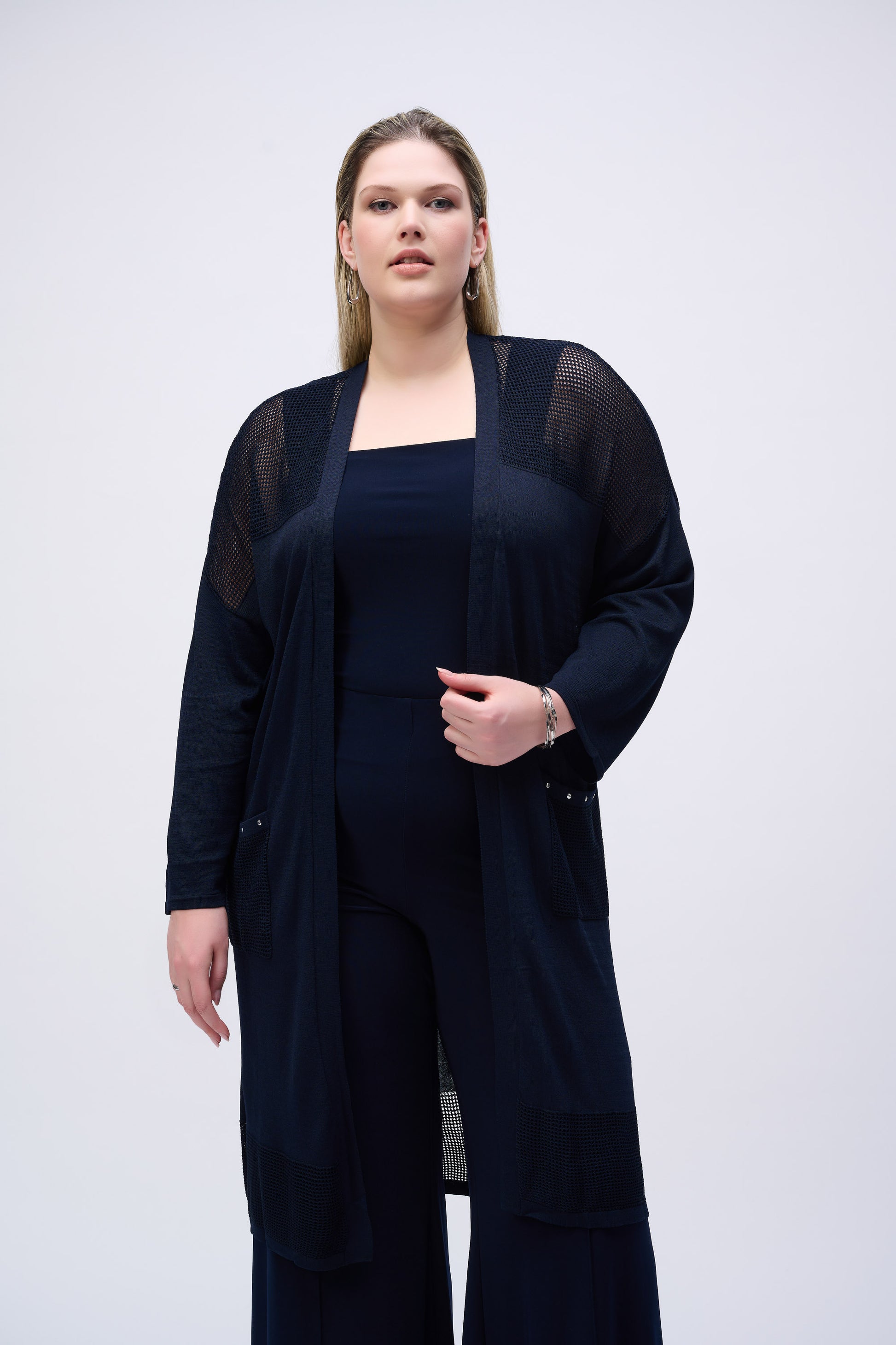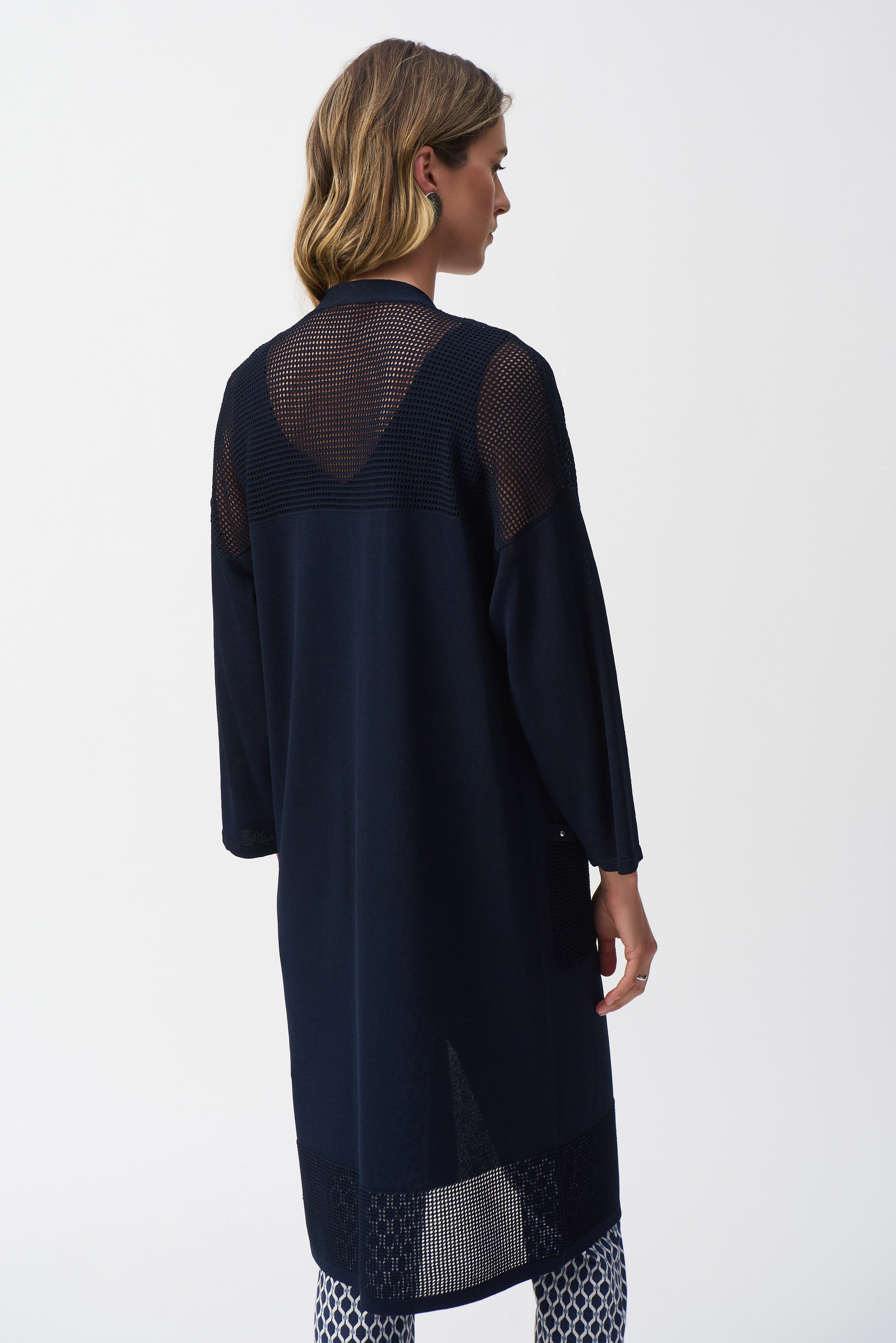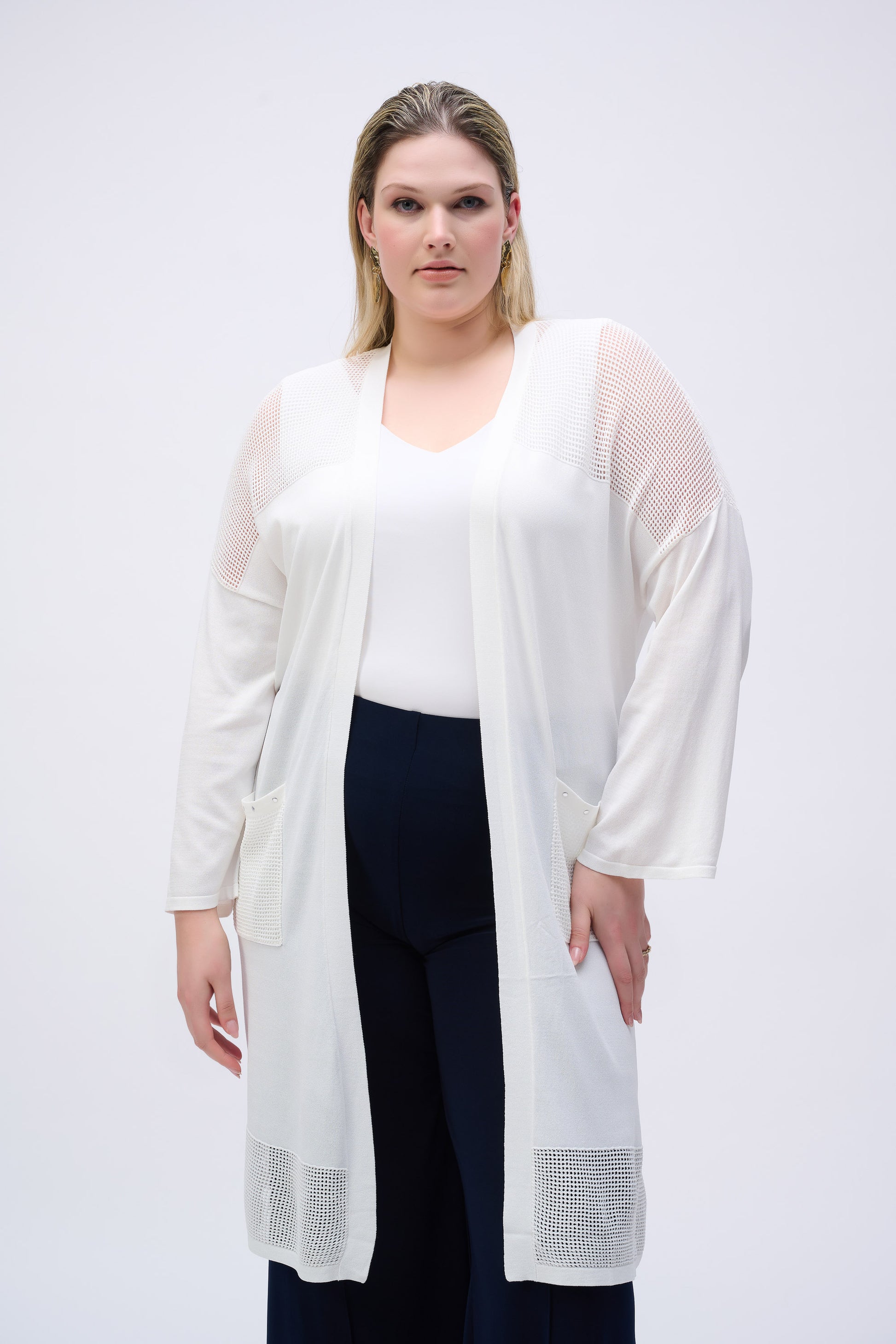Questo soprabito in maglia è tutt altro che banale, con le sue raffinate cuciture traforate sui carré e sull orlo. Il modello aperto sul davanti, le maniche a tre quarti e le tasche applicate decorate si combinano per creare una versione elegante di questo capo tanto amato.