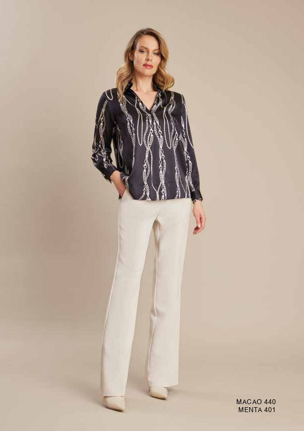 Camicia manica lunga nero in seta a fantasia