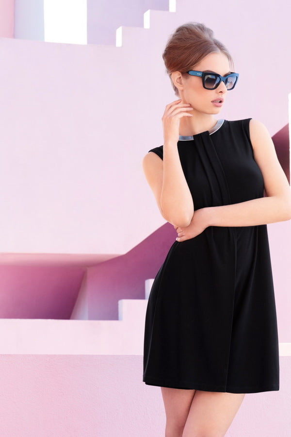 Indossare questo abito nero in jersey con scollatura girocollo e collana incorporata è un modo per sentirsi sicure e sofisticate in qualsiasi occasione. Che tu stia partecipando a una festa, a una cena elegante o semplicemente desideri aggiungere un tocco di eleganza alla tua giornata, questo abito sarà sicuramente un ottima scelta.