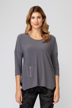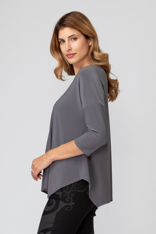 Questa maglia a manica tre quarti in jersey grigio è un capo versatile e confortevole per il tuo guardaroba casual. Realizzata con un morbido tessuto jersey, offre una vestibilità comoda e uno stile semplice ma chic.