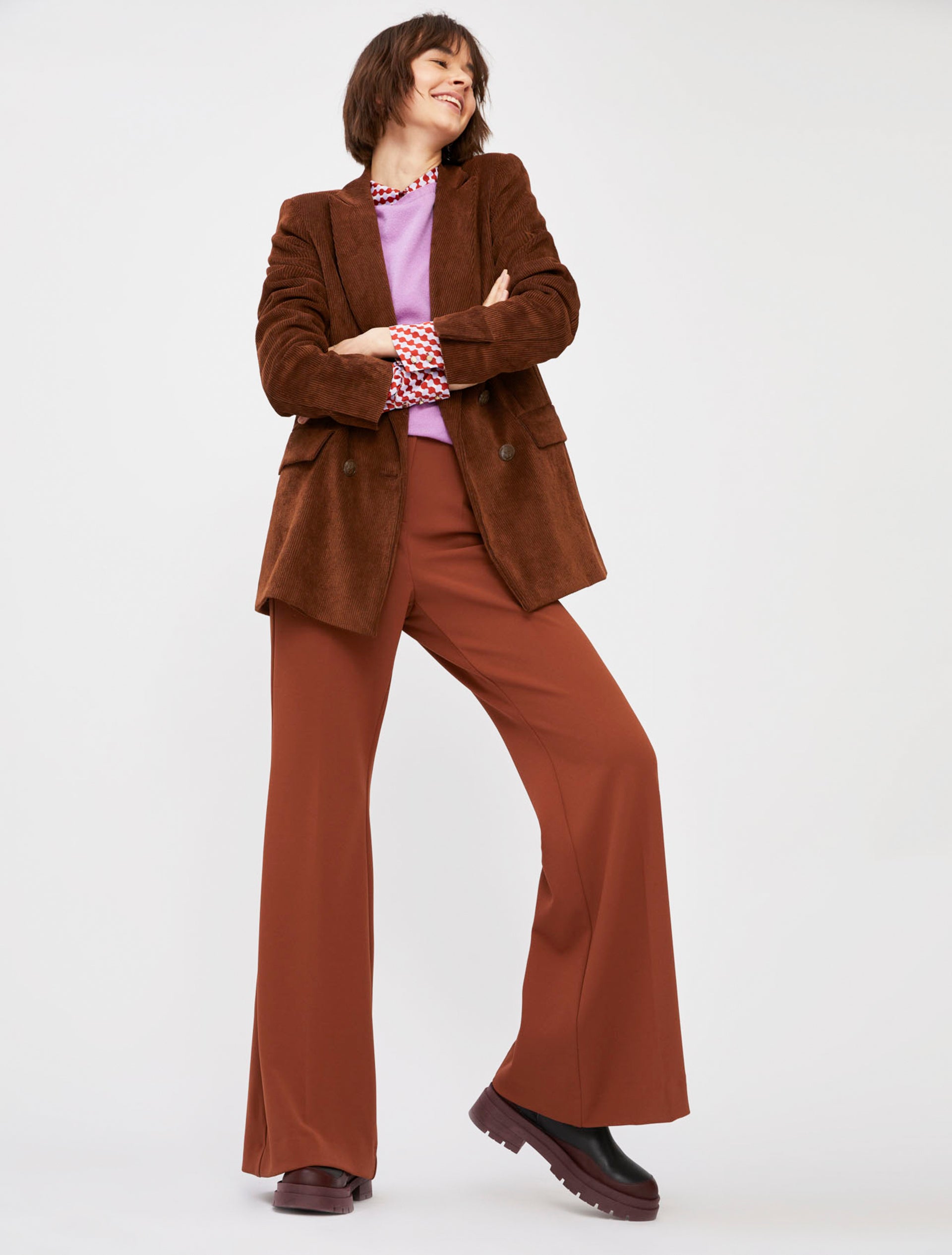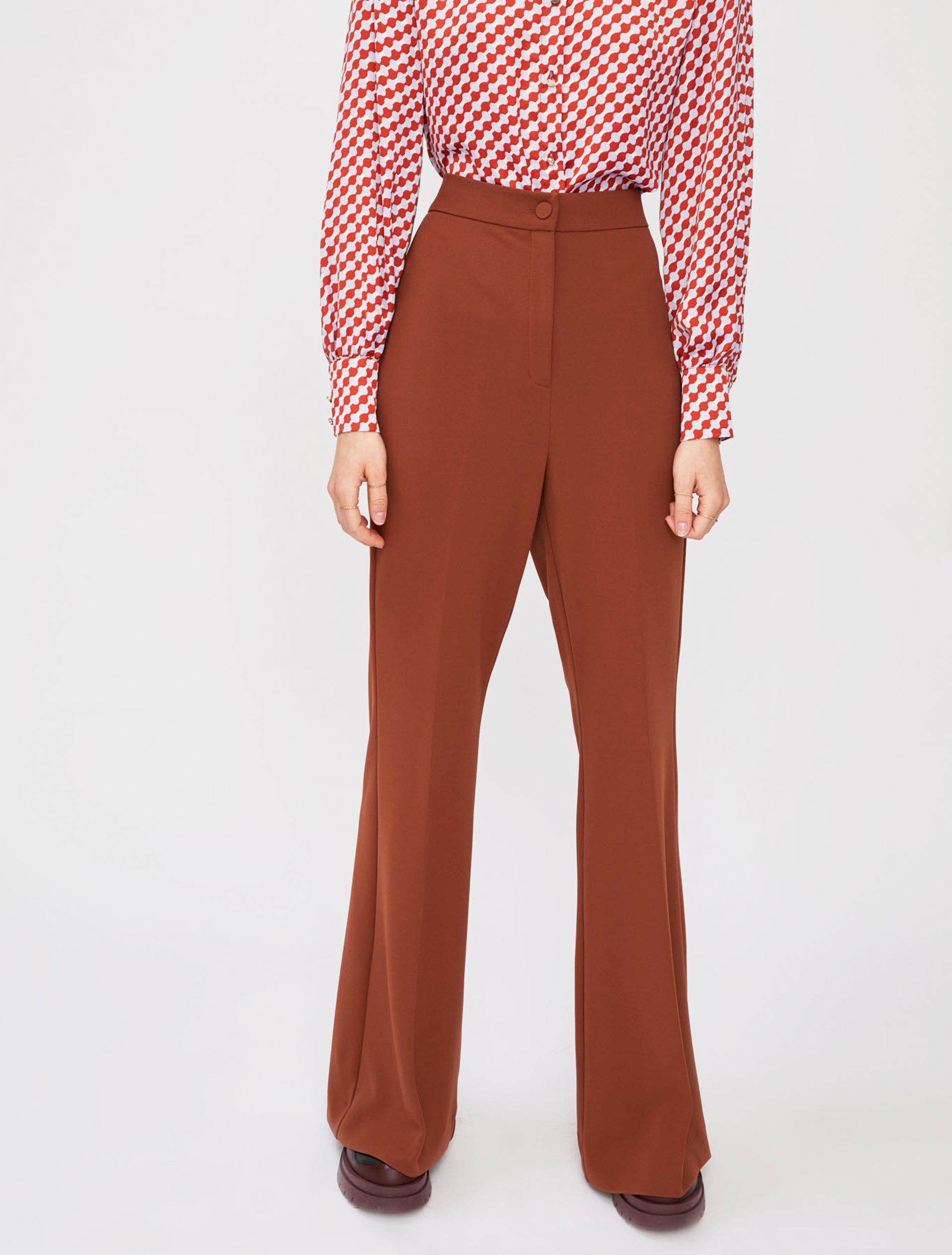 i Blues Nereo Pantaloni in jersey crêpe stretch dalla linea a zampa, chiusi con zip e bottone. Tasca a filetto sul retro.