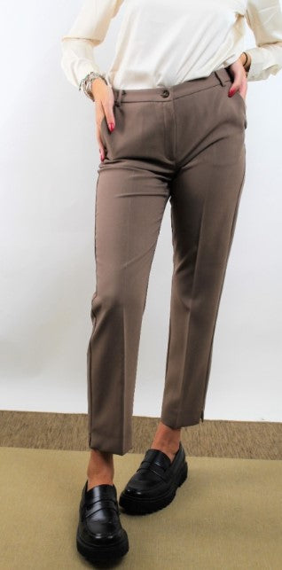 Il pantalone articolo APRILIA di Emme di Marella èa sigaretta con butino e zip . Ha le tasche taglio maschile . E realizzato in confortevole tessuto bistretch
