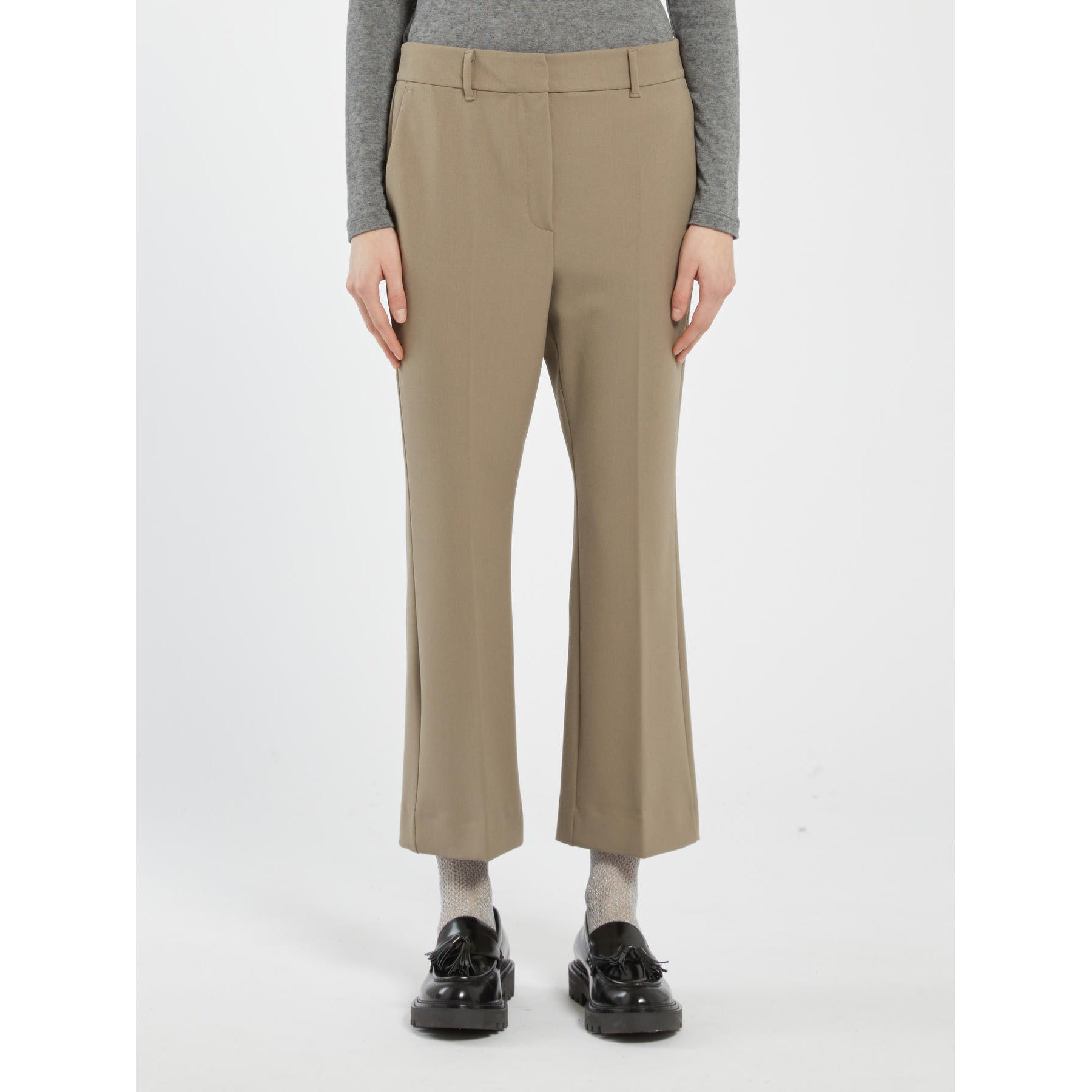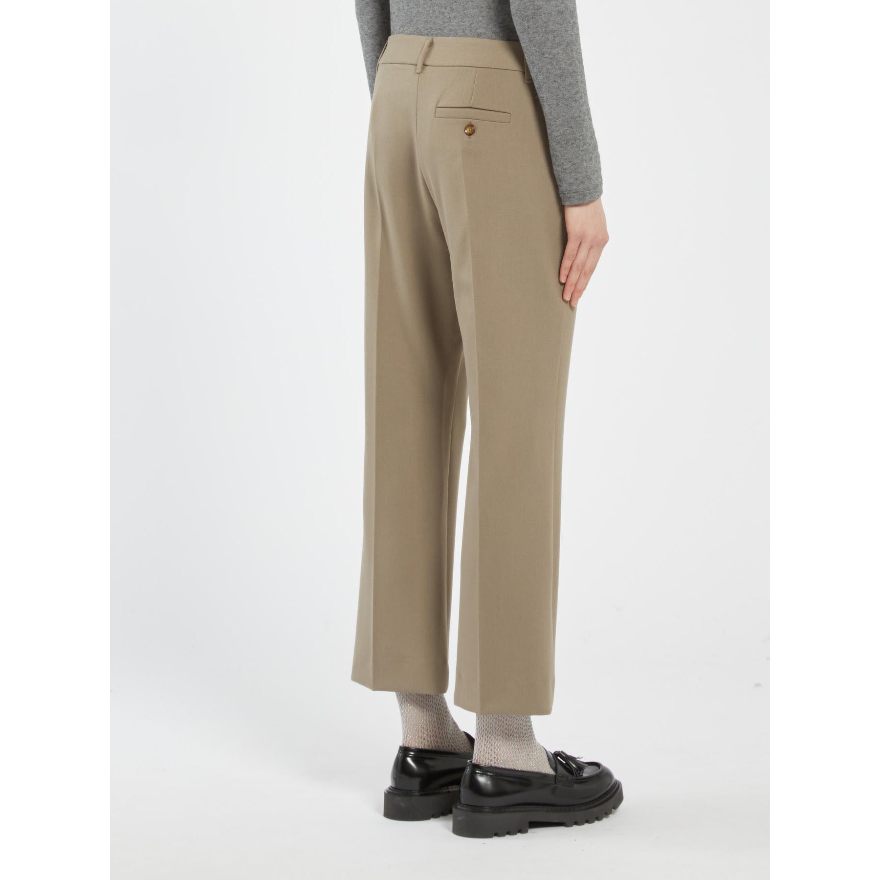 Tasche alla francese davanti, finta tasca a filetto con bottone dietro, piega stirata