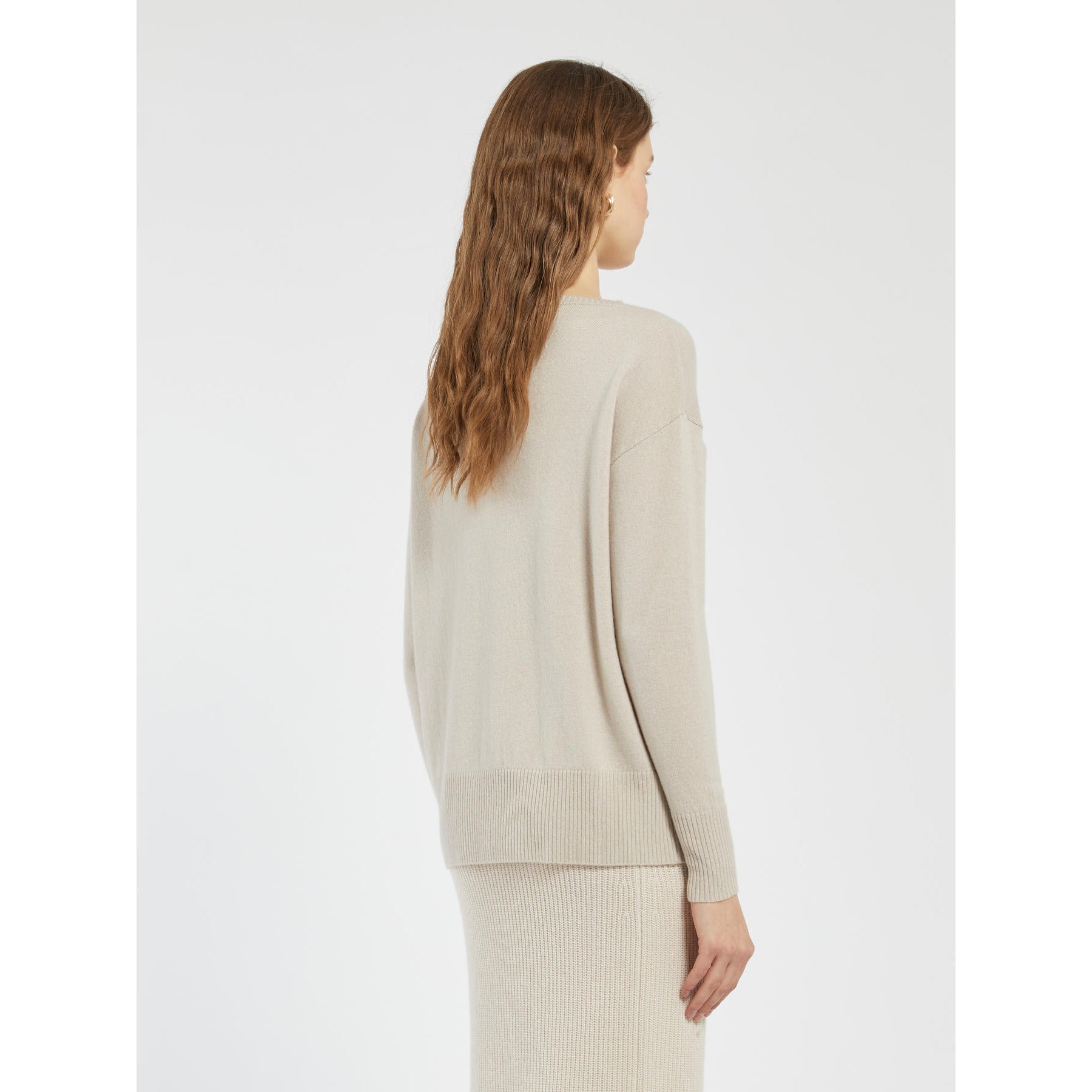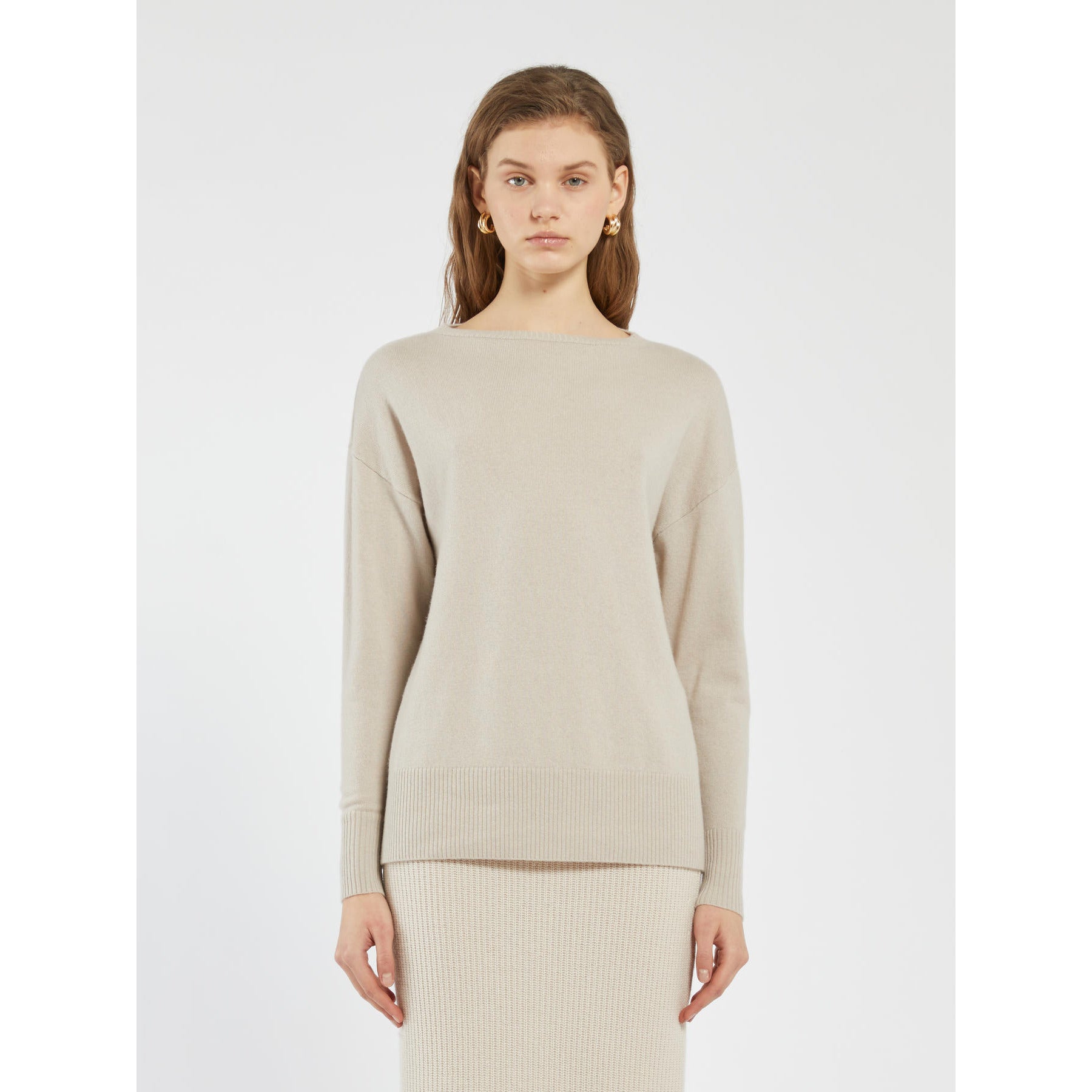 Maglia in pura lana merino dalla linea dritta e lunga. Scollo a barchetta e maniche lunghe con spalle scese.