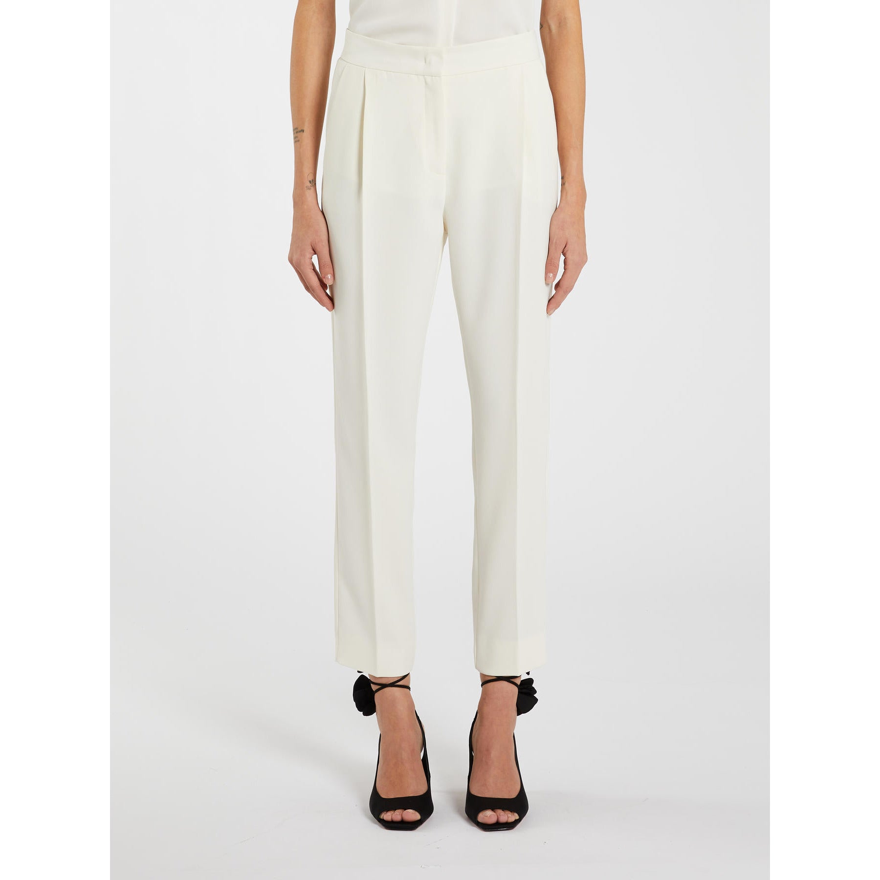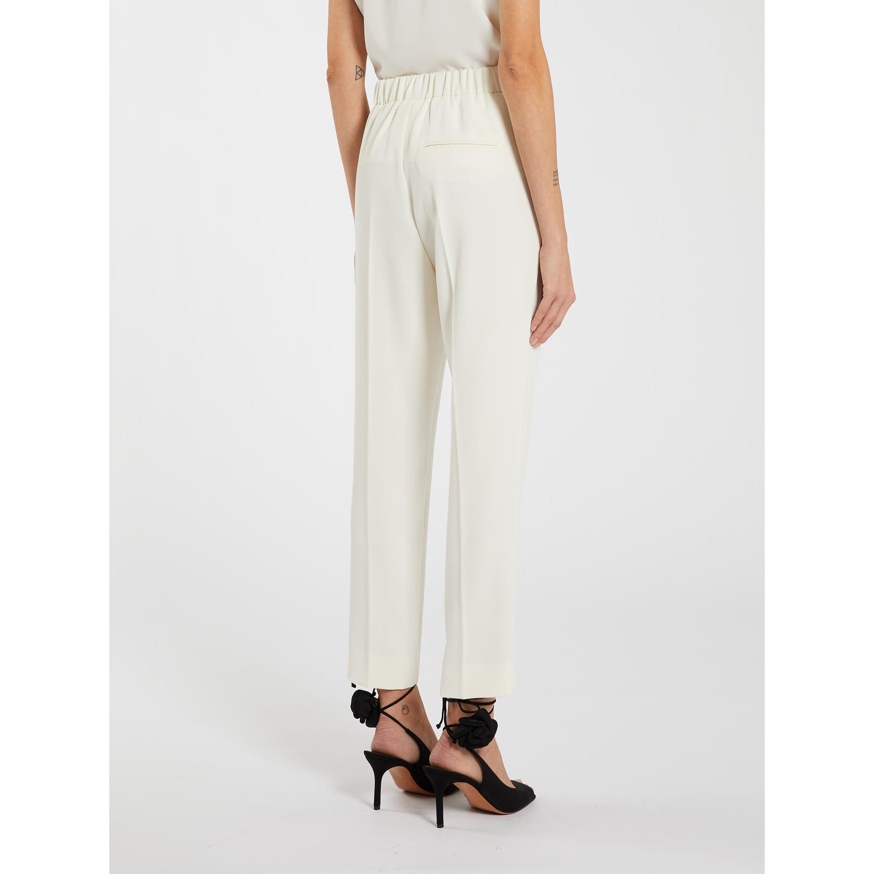 Eleganti, slanciati e sempre perfetti: i pantaloni a sigaretta rubano il flair di lui per una femminilità tutta da scoprire. Il capo fa parte della capsule seasonless Marella ART.365.