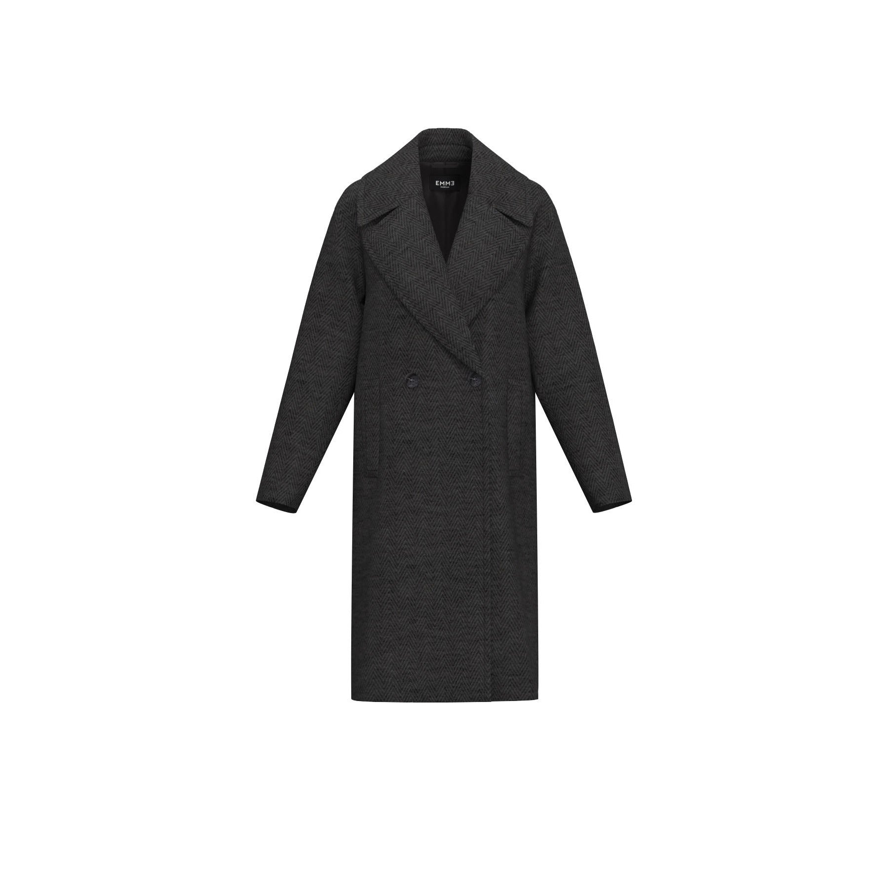 Cappotto in jersey chevron dalla linea dritta. Collo a rever, maniche lunghe. Chiusura a doppiopetto con bottoni a vista, tasche con patta. Foderato.