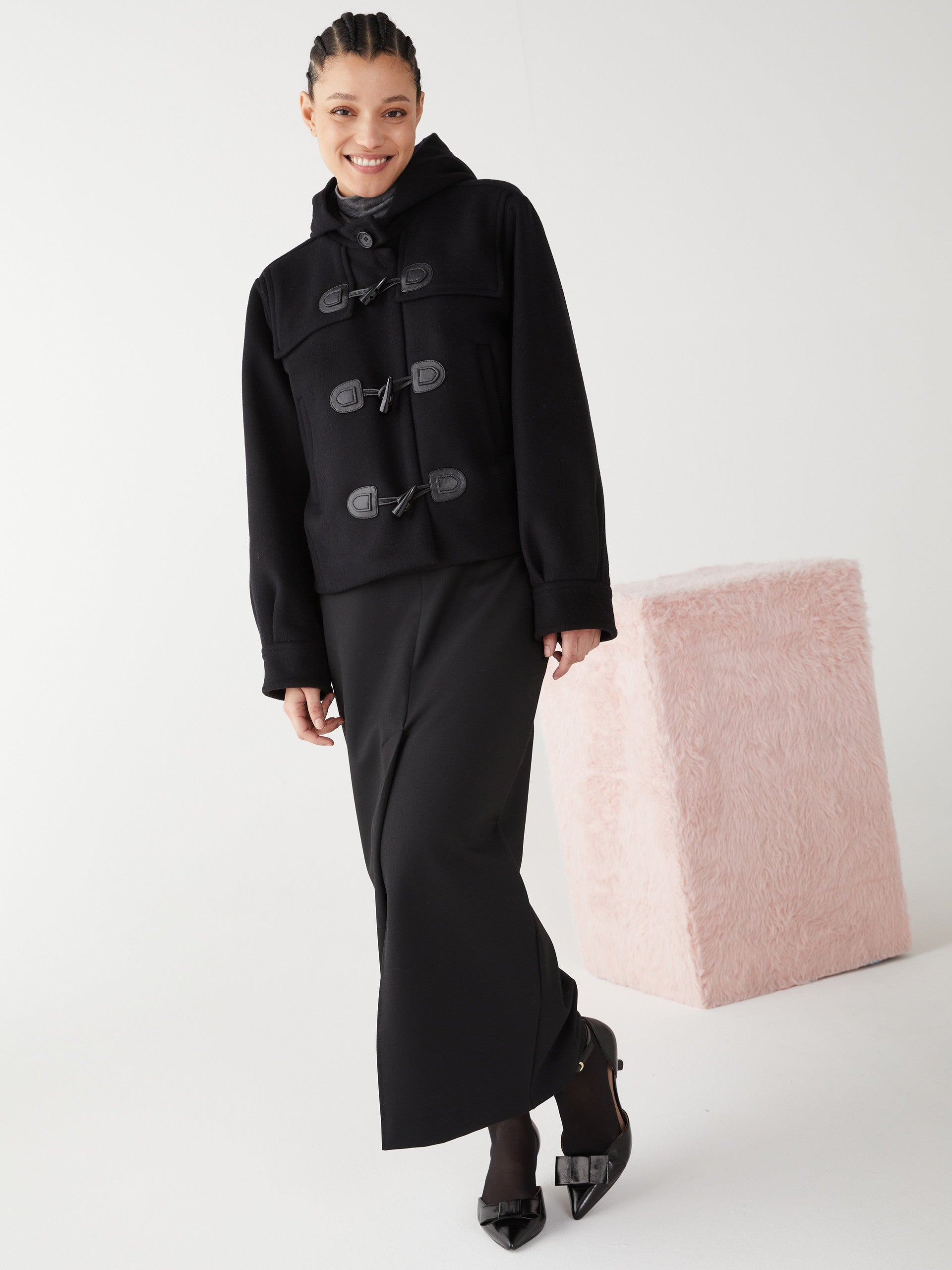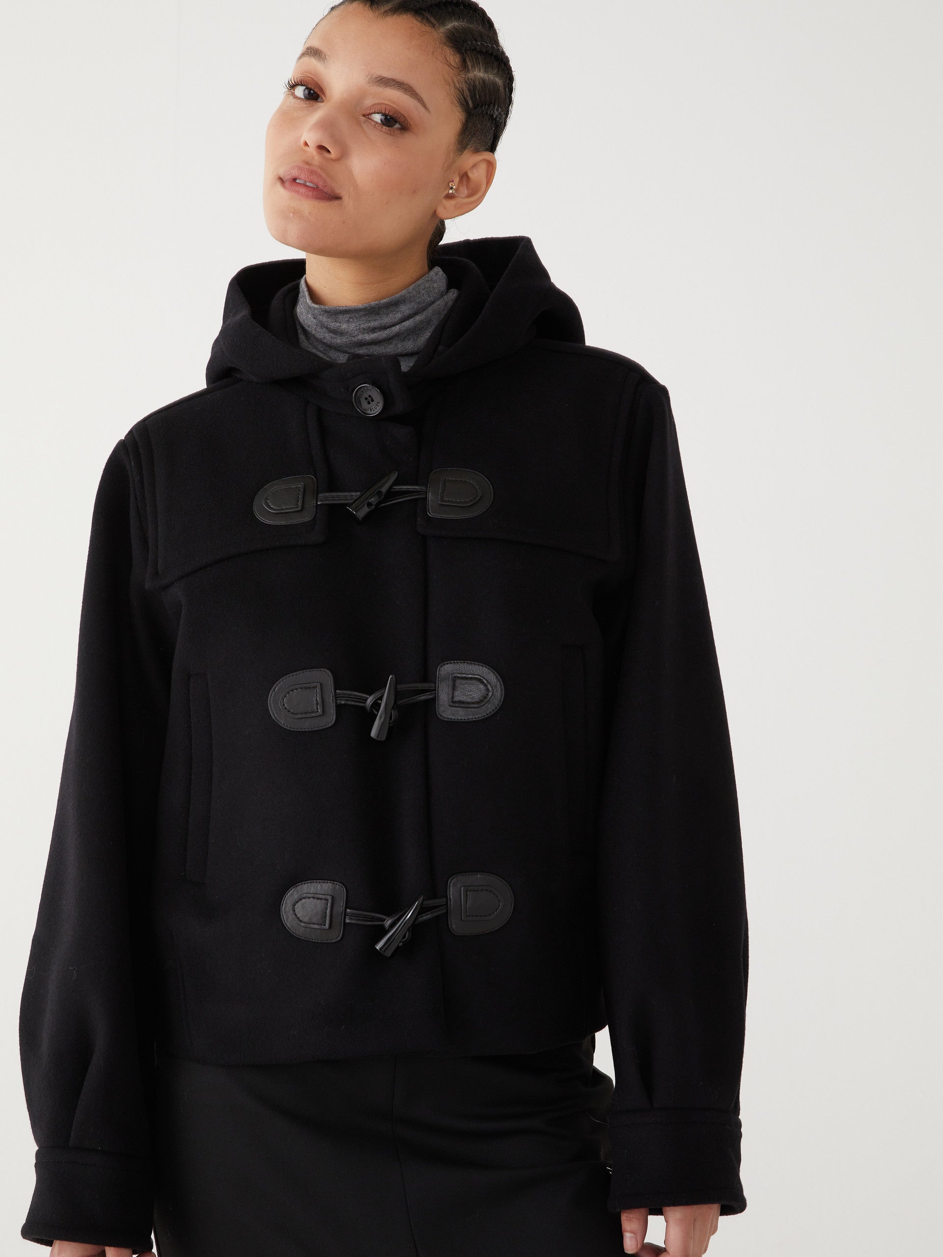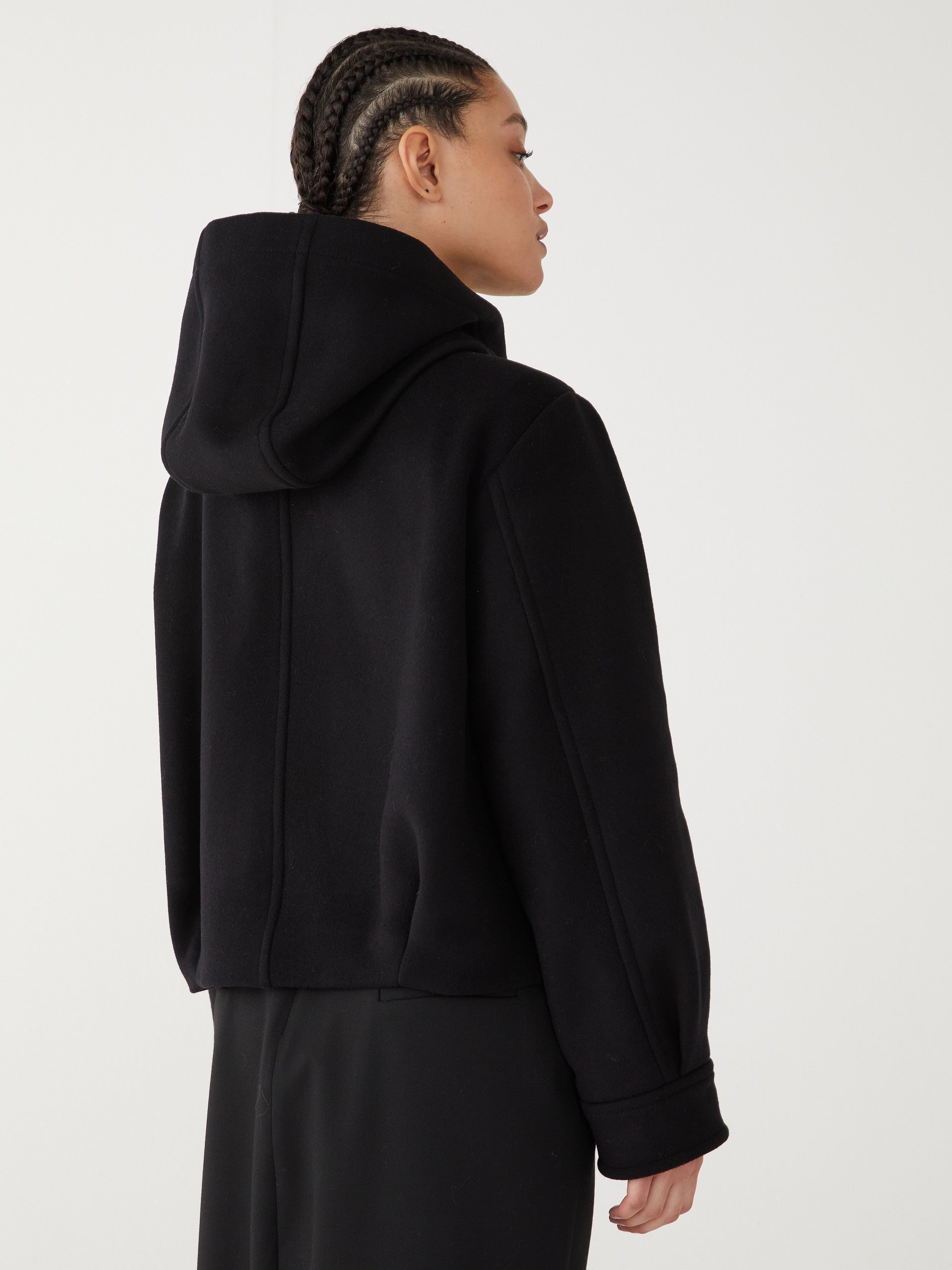 Collo a listino con cappuccio, maniche lunghe con polsini