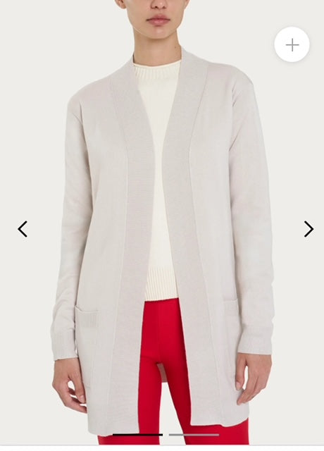 Cardigan lungo Four Seasons, lungo aperto da donna a manica lunga in misto viscosa, tessuto in finezza 12, caldo e confortevole.