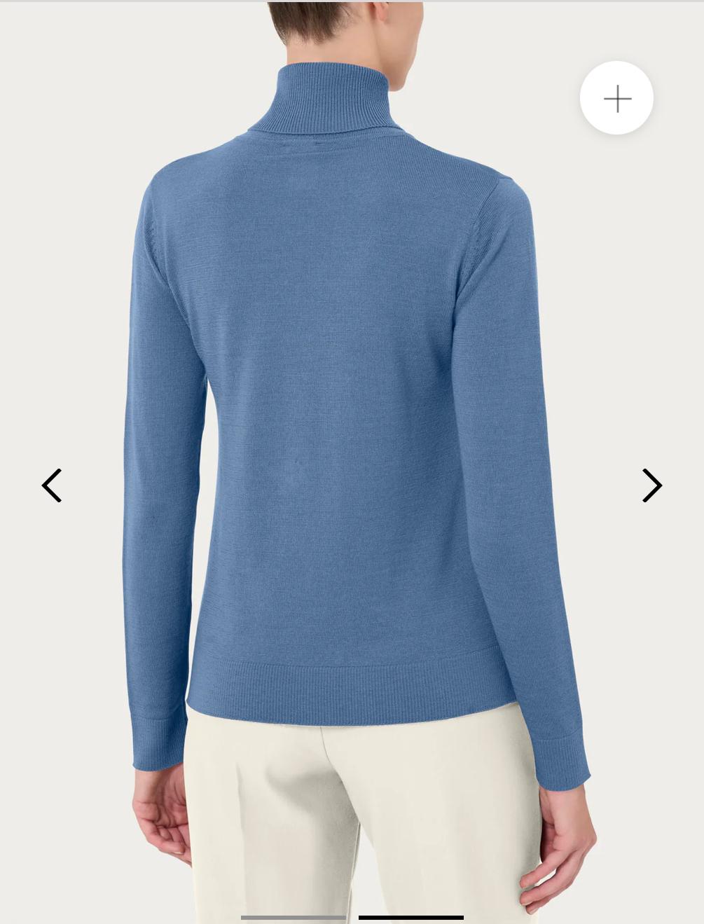 Maglia da donna con collo roulè in pura lana merino, tessuto in finezza 12, traspirante, termoregolante e confortevole.