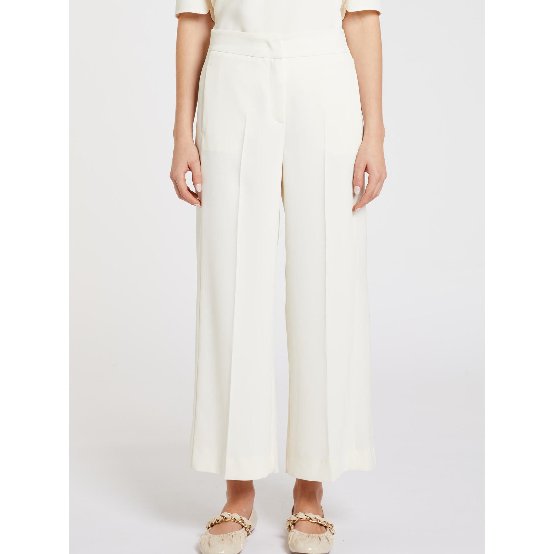 Nuovo pantalone di ispirazione maschile, ingentilito dalla fluidità dell envers satin che slancia la silhouette e ondeggia morbidamente al movimento. L inserto elastico posteriore assicura un fit impeccabile in ogni occasione.