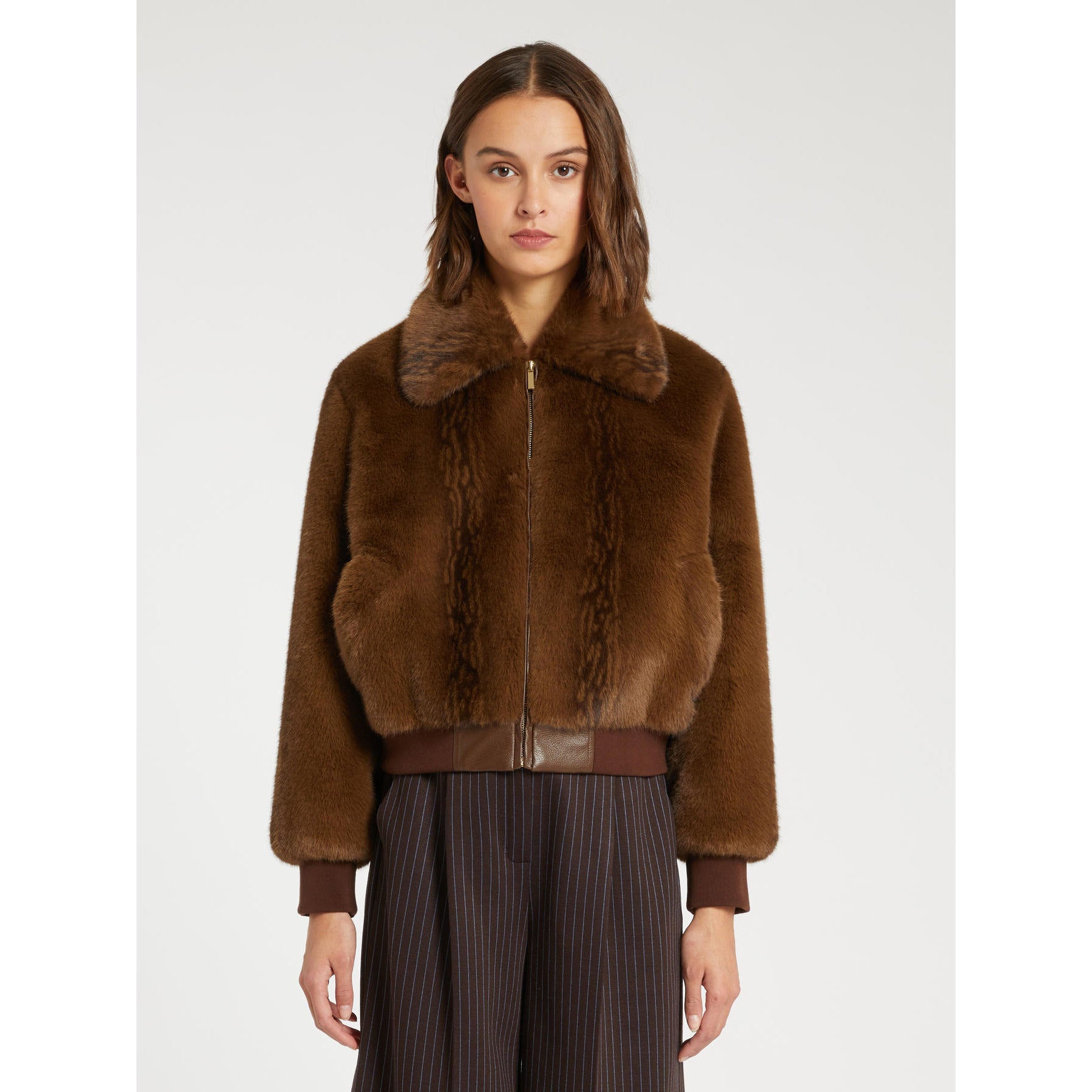 Bomber in tessuto fluffy con polsi e fondo in maglia