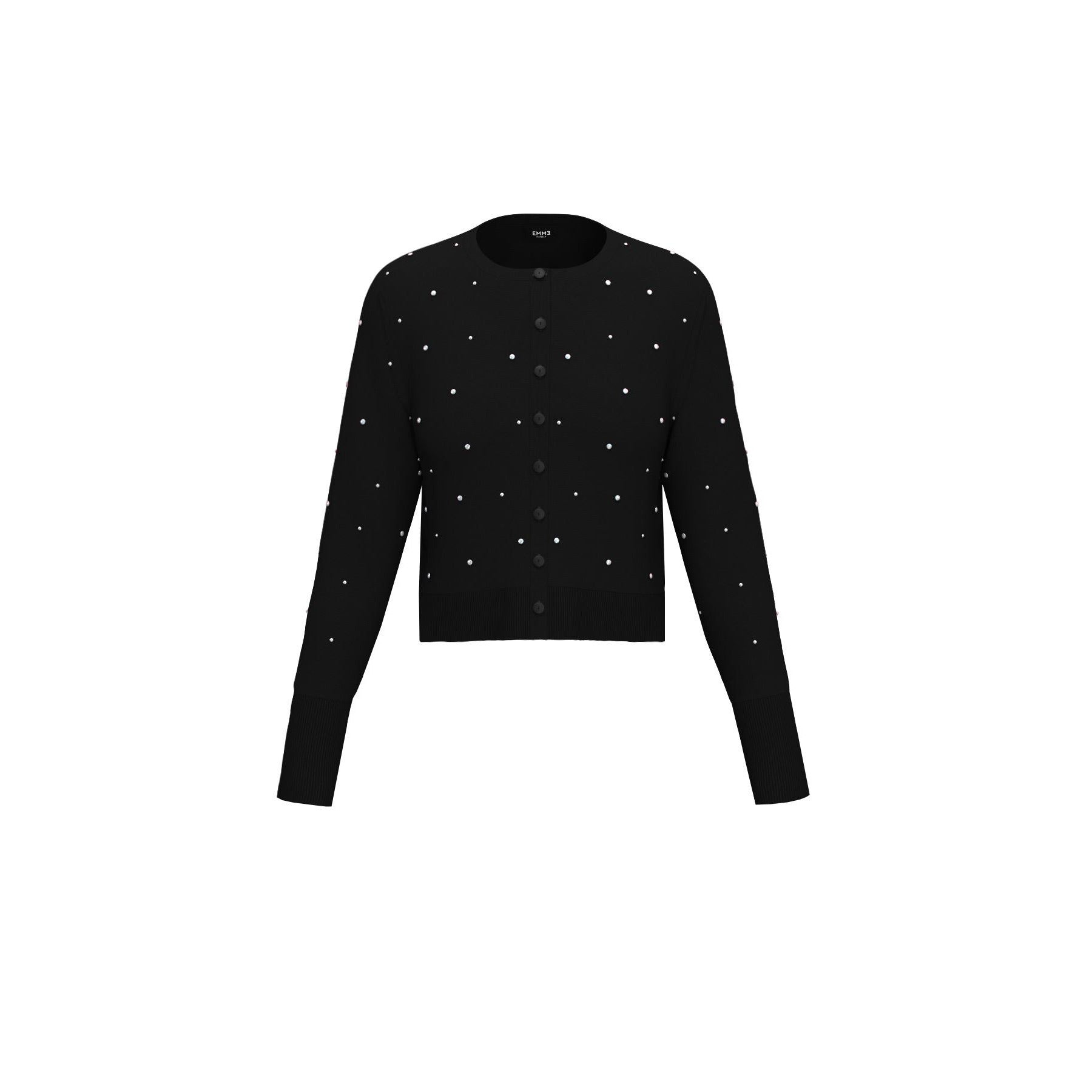 L allure lady like del cardigan trova nuova energia in questa versione con cristalli applicati. Per brillare di glamour, giorno dopo giorno.