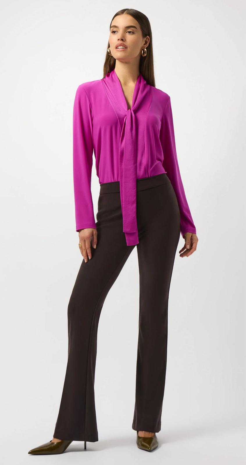 Questi armoniosi pantaloni svasati in maglia effetto seta slanciano piacevolmente la gamba, avvolgendo ogni curva prima di allargarsi sotto il ginocchio. Non dovrai scendere a compromessi nemmeno per quanto riguarda il comfort. Grazie allo stile pull-on, il modello è facile da indossare.