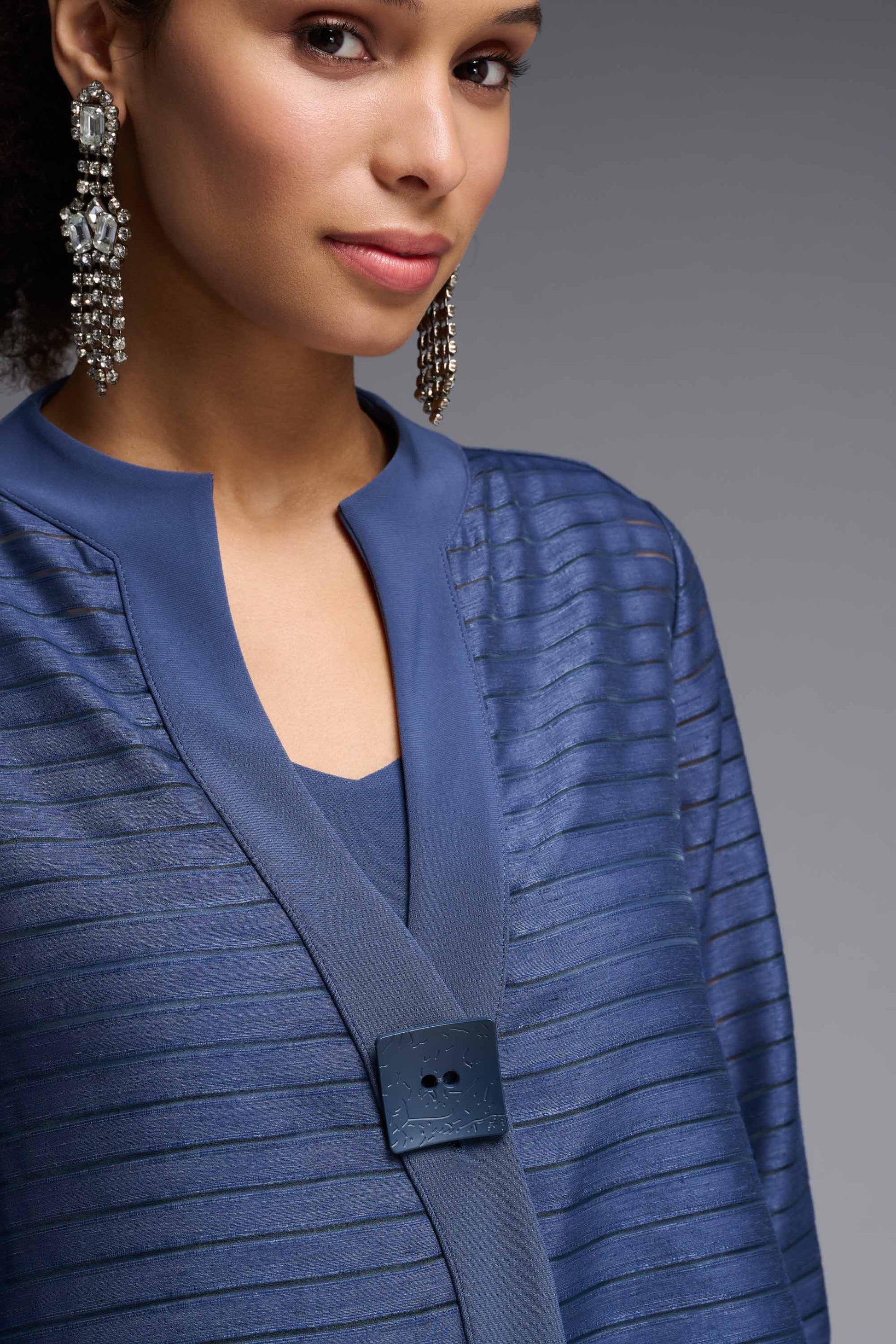Una scintillante giacca svasata corta degna del tuo prossimo evento, un capo di tendenza che presenta una fascia in maglia effetto seta a contrasto sugli orli. Spiccano inoltre le maniche a tre quarti con polsini e spacco posteriore, lo scollo a girocollo e un abbottonatura d effetto sul davanti. Il capo perfetto per aggiungere un pizzico di texture e lucentezza al tuo outfit.