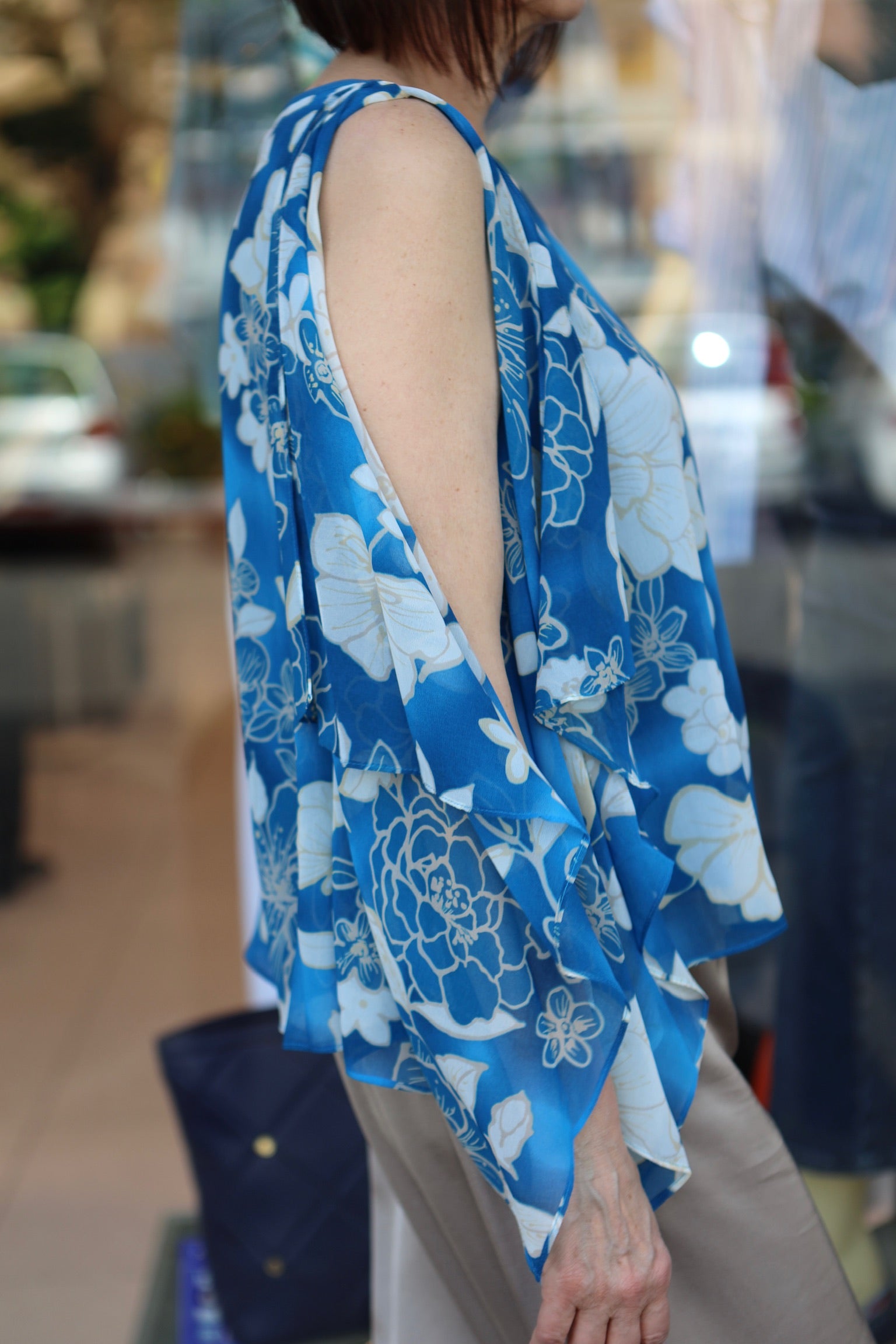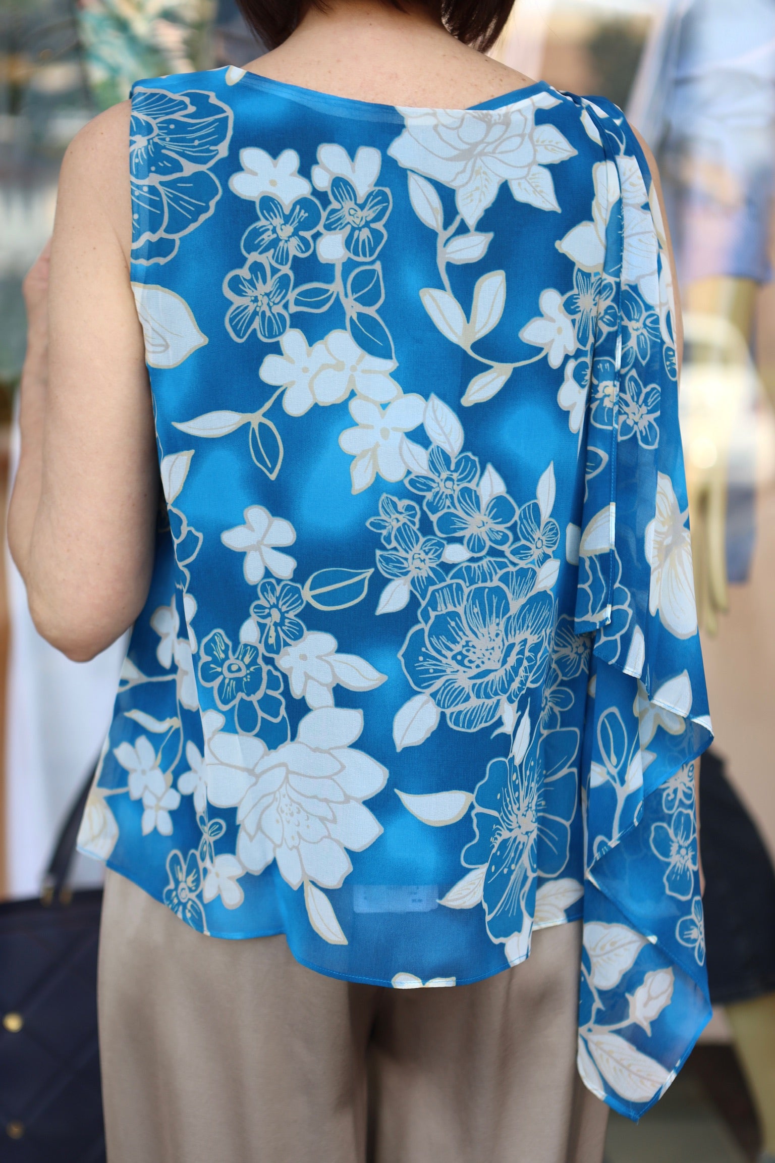 La stampa floreale dona personalità a questo top dal taglio minimal arricchito dal drappeggio asimmetrico. Piacevole da indossare grazie al morbido georgette.