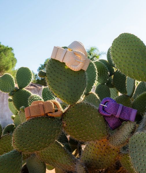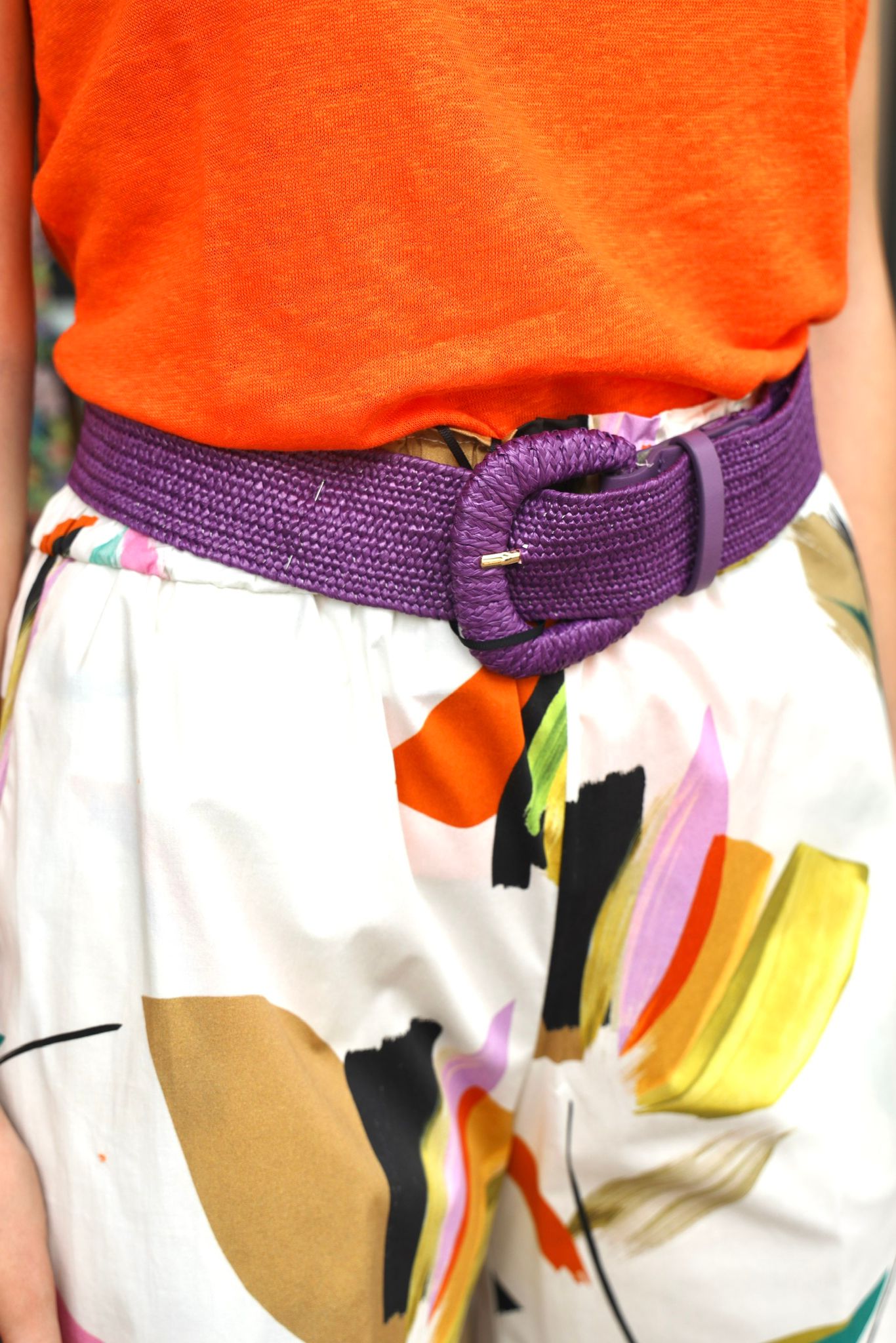 Cintura da vita in rafia con fibbia ricoperta ideale per completare i look con un gusto unico e distintivo.