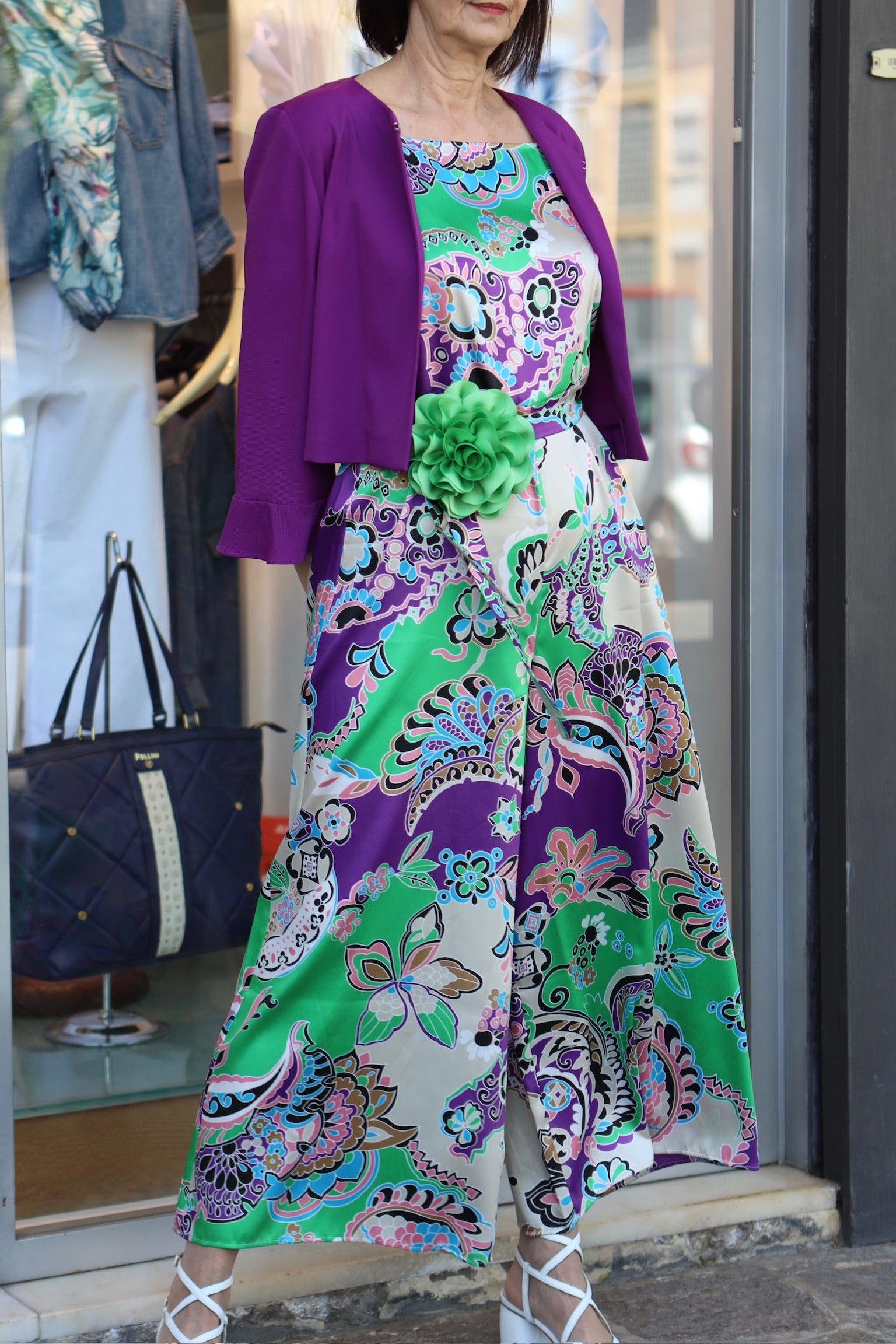 Giacca corta in faille, linea dritta. Scollo rotondo, maniche lunghe con balza sul fondo. Chiusura con gancio sullo scollo. Sfoderata.