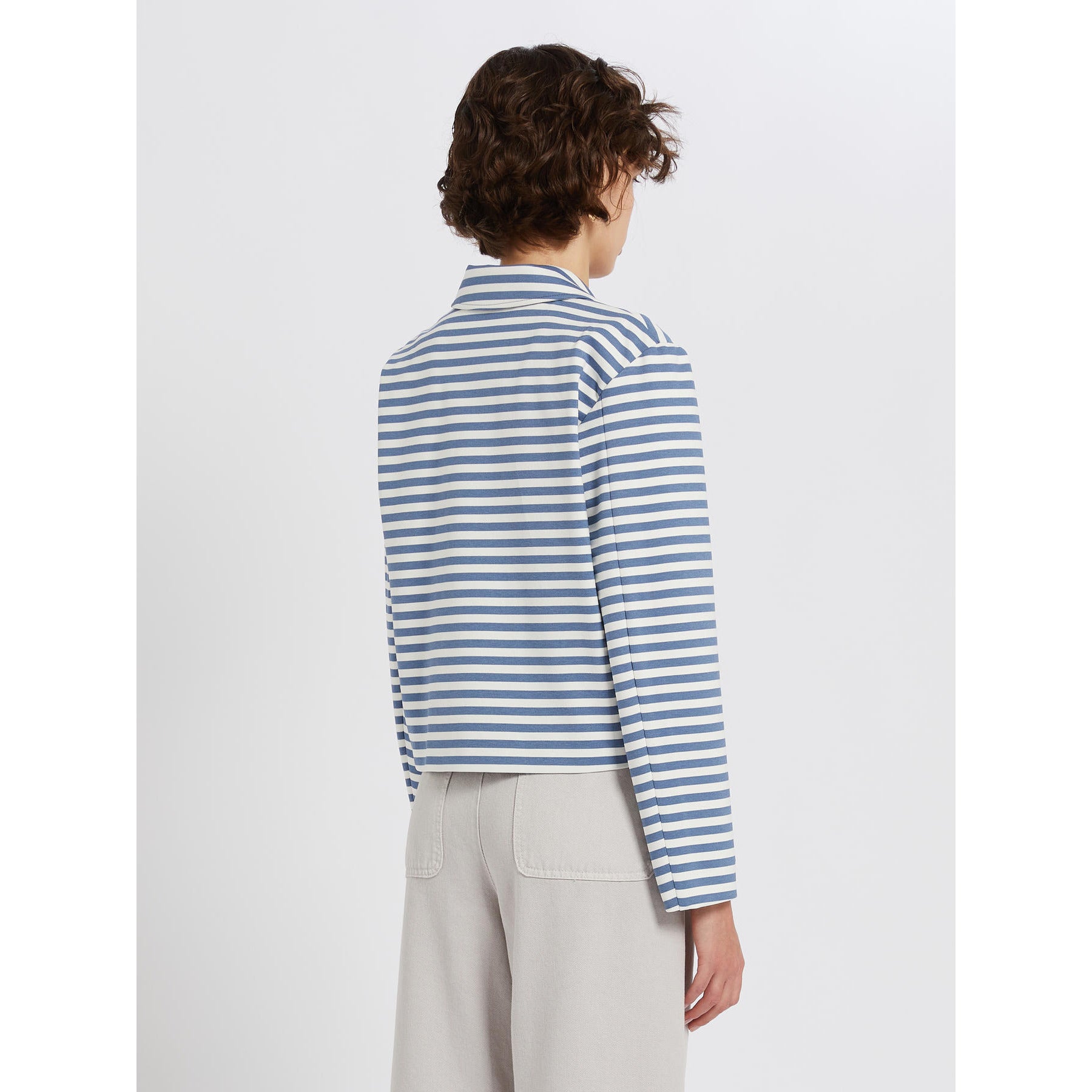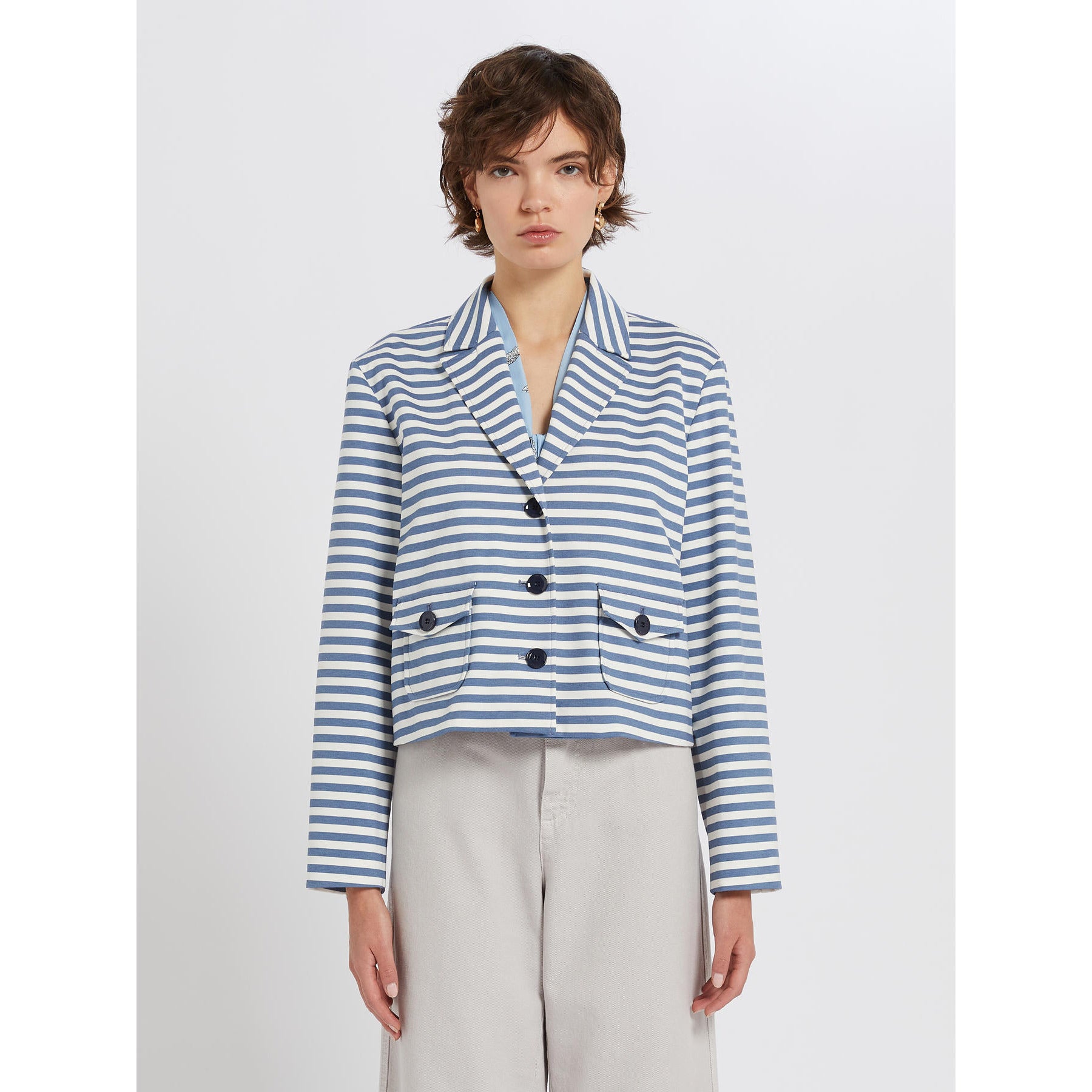 Giacca corta in jersey stretch dalla linea boxy, chiusa con bottoni. Collo a rever e maniche lunghe. Tasche applicate con patta.