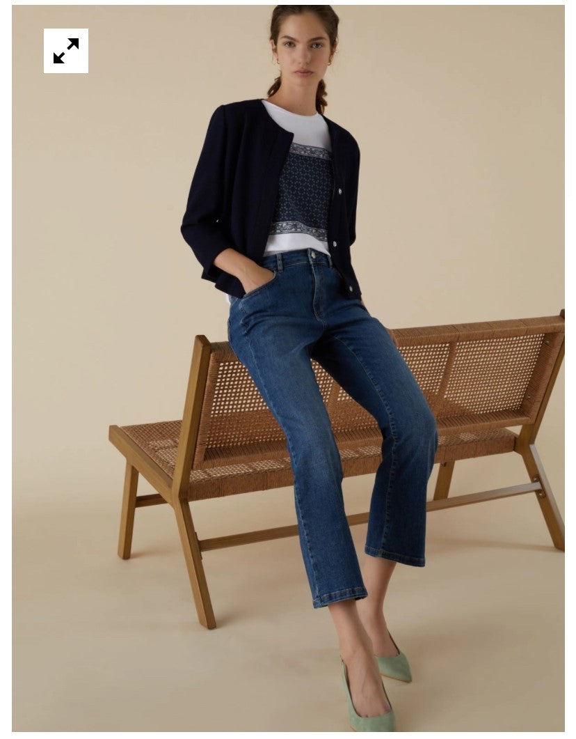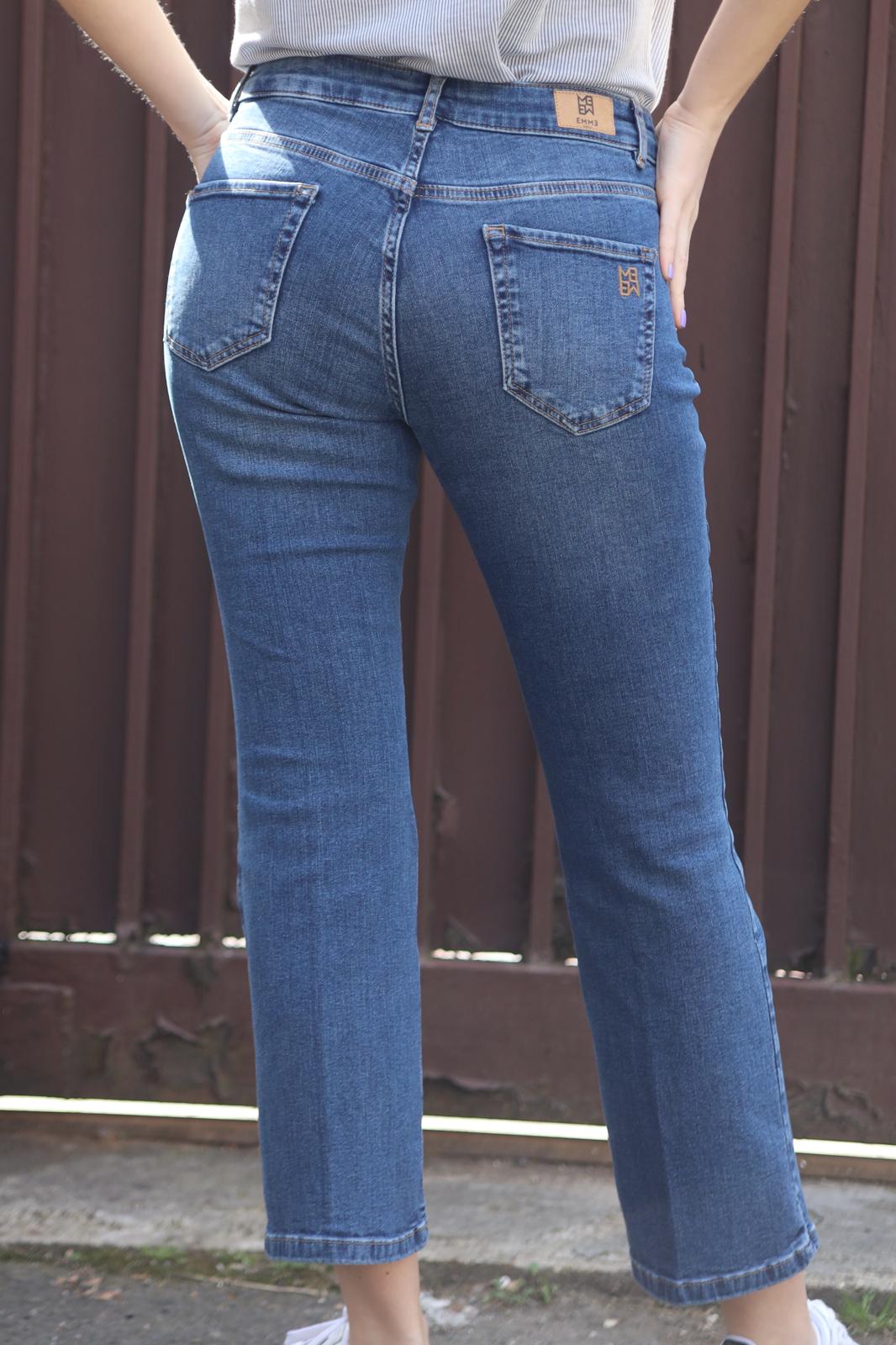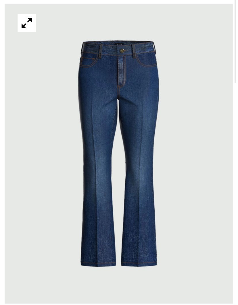 Linea flare e allure rétro per questi jeans in denim di cotone stretch dal fascino vintage. L essenziale design cinque tasche si arricchisce delle impunture a contrasto.