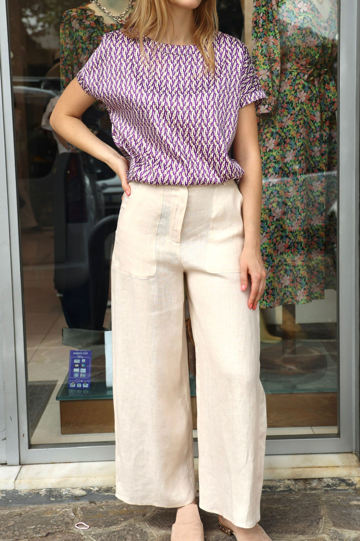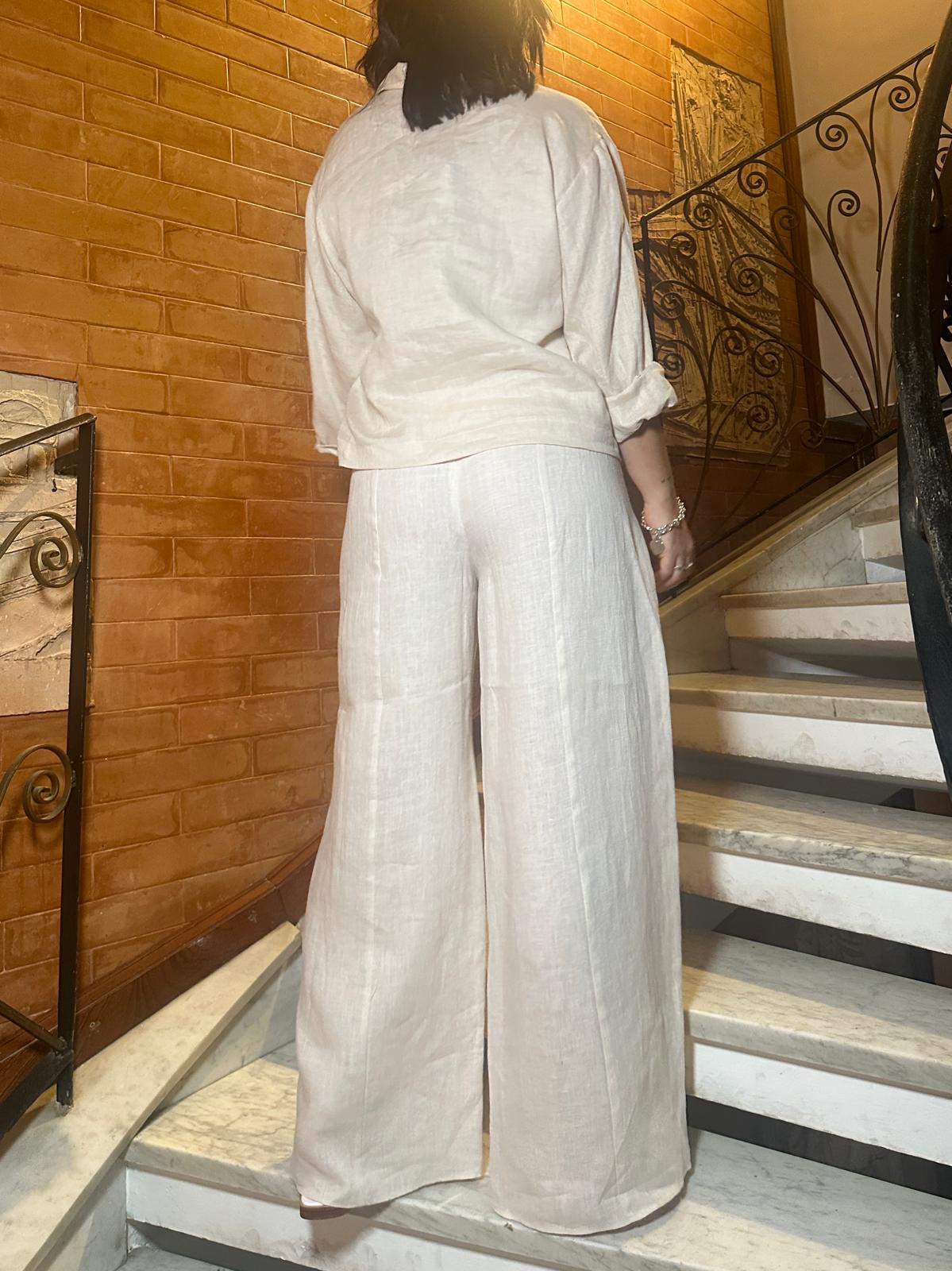 Il lino conferisce a questi pantaloni a palazzo una sensazione di leggerezza e comfort, ideale per le giornate calde.
