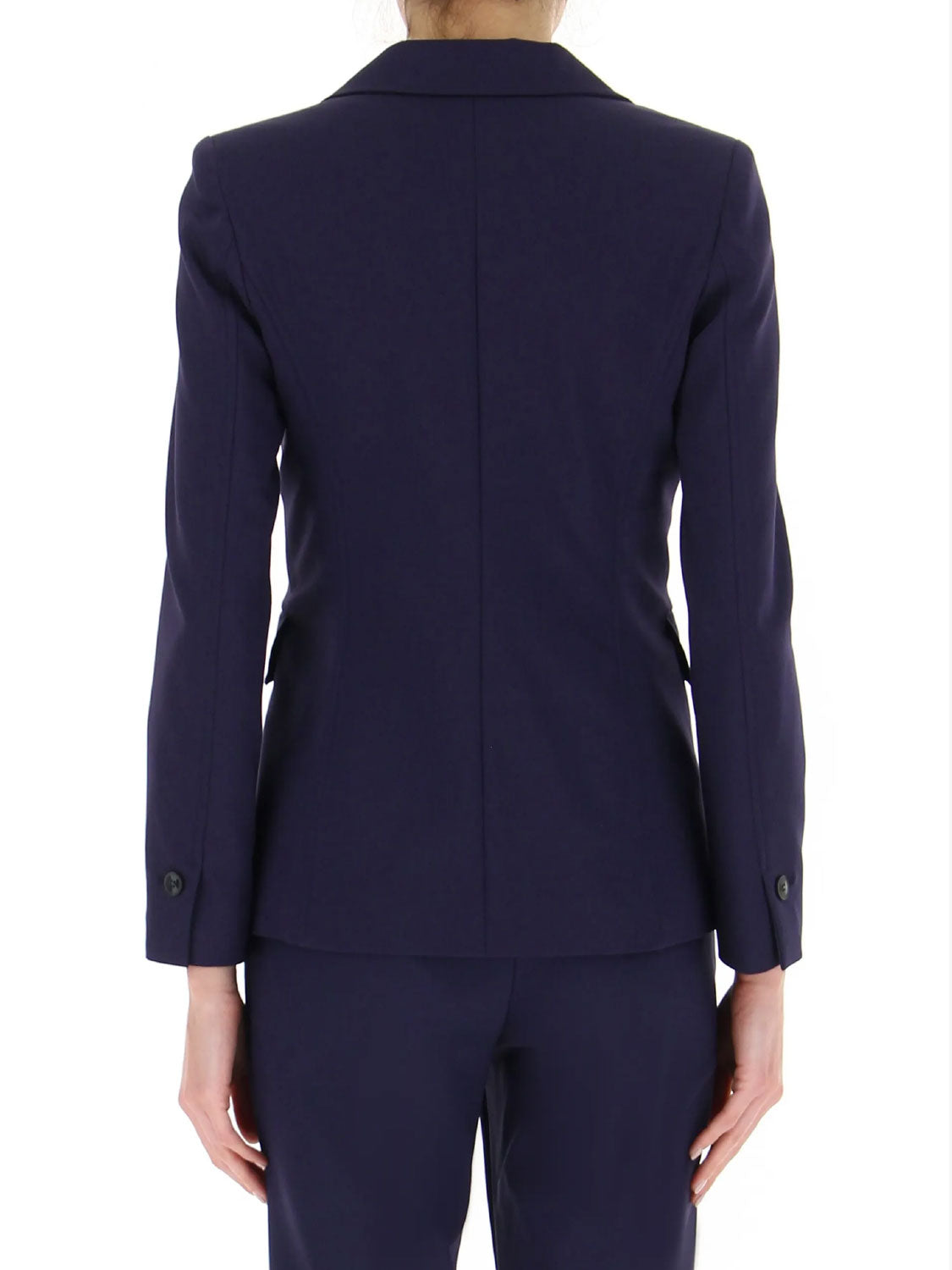 Blazer versatile e quotidiano realizzato in misto cotone stretch dalla linea semiaderente a delineare la silhouette e donare femminilità al capo.