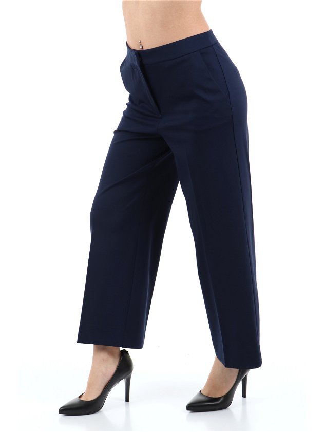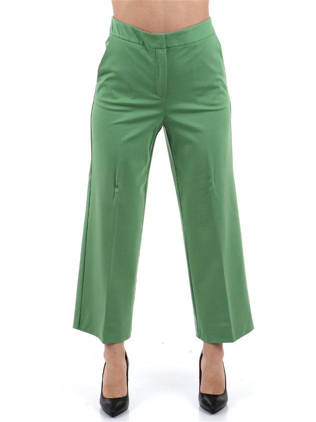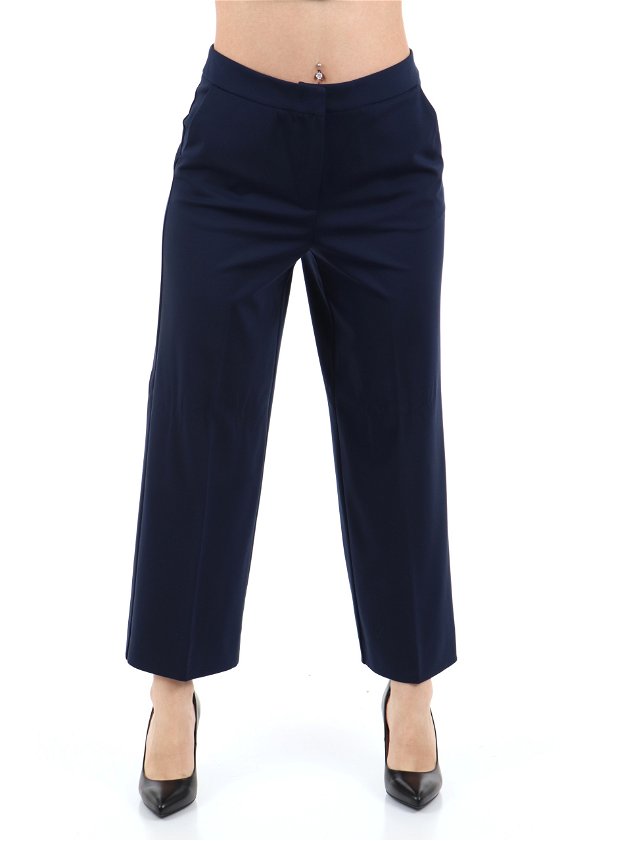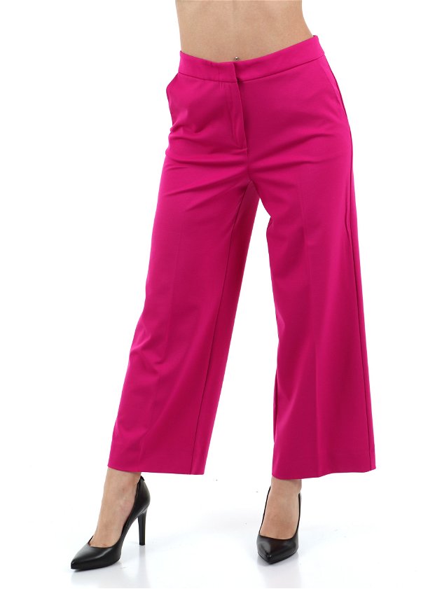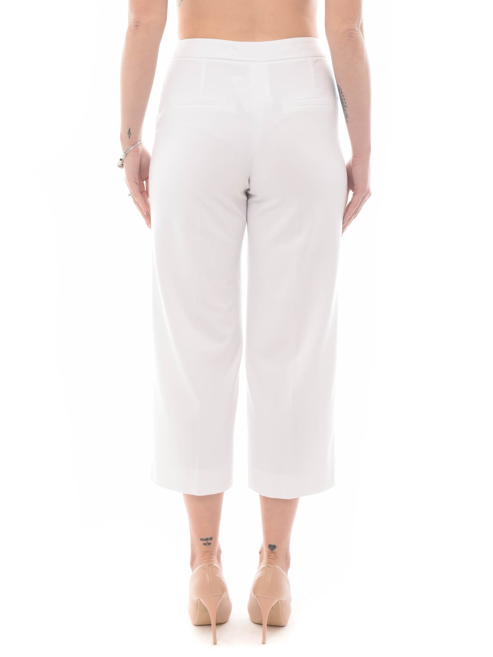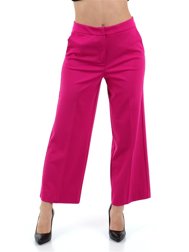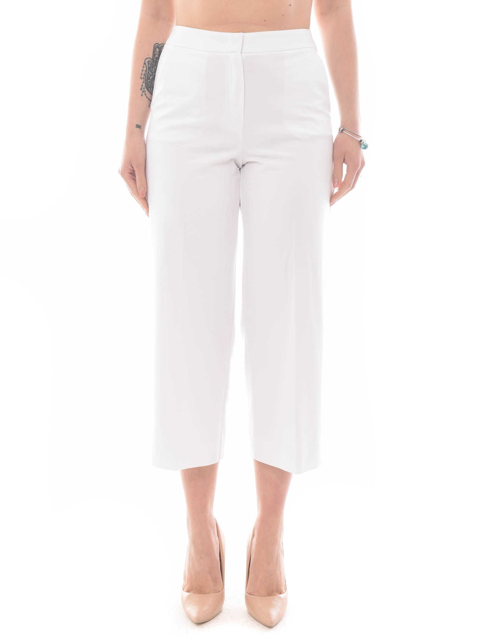 Pantaloni in jersey stretch punto Milano, dotato di bottone e zip nascosti, tasche alla francese davanti, a filetto dietro. Per un look fresco e chic.