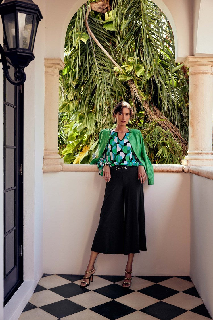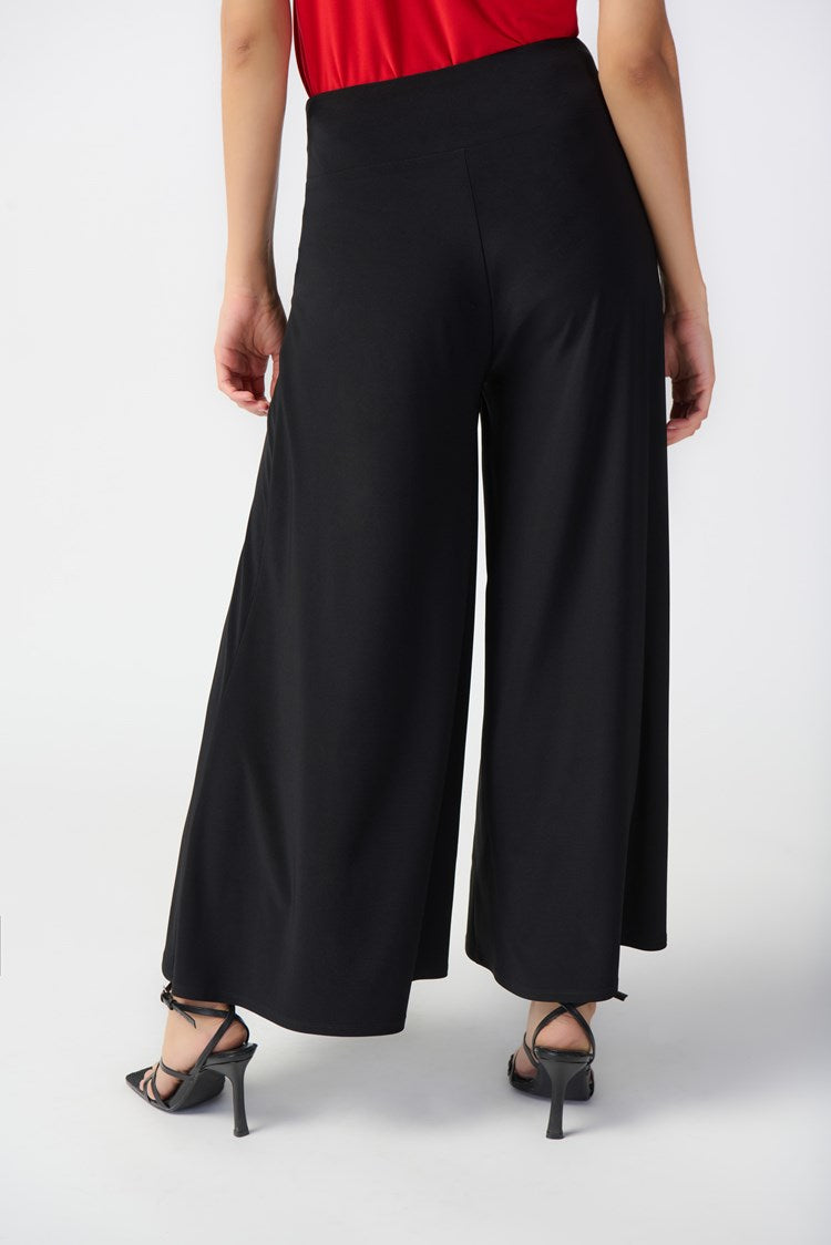 Esci in grande stile per ogni occasione con indosso questi raffinati pantaloni culotte a righe. Realizzati in tessuto a maglia effetto seta, sono caratterizzati da un taglio svasato che evoca un eleganza senza tempo. Presentano un ampia fascia in vita per una maggiore comodità e una fine decorazione dorata che infonderà al tuo look un tocco di sobria eleganza.