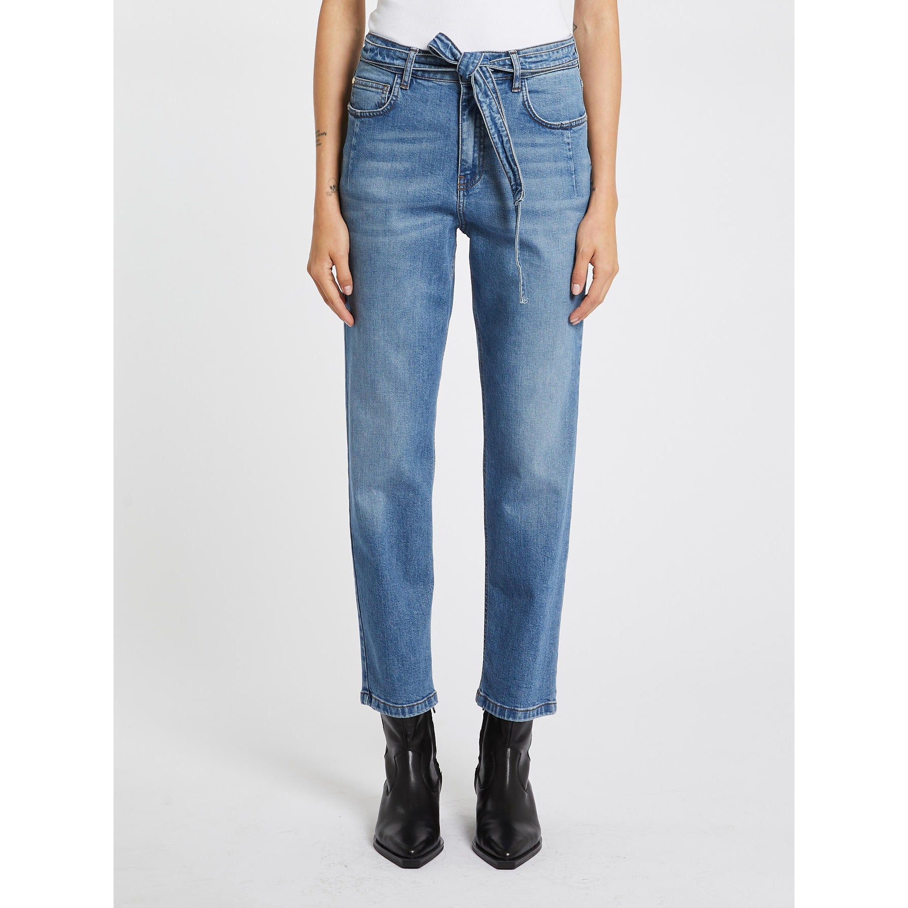 Chiusura con bottone a chiodo e zip nascosta, cintura in tessuto