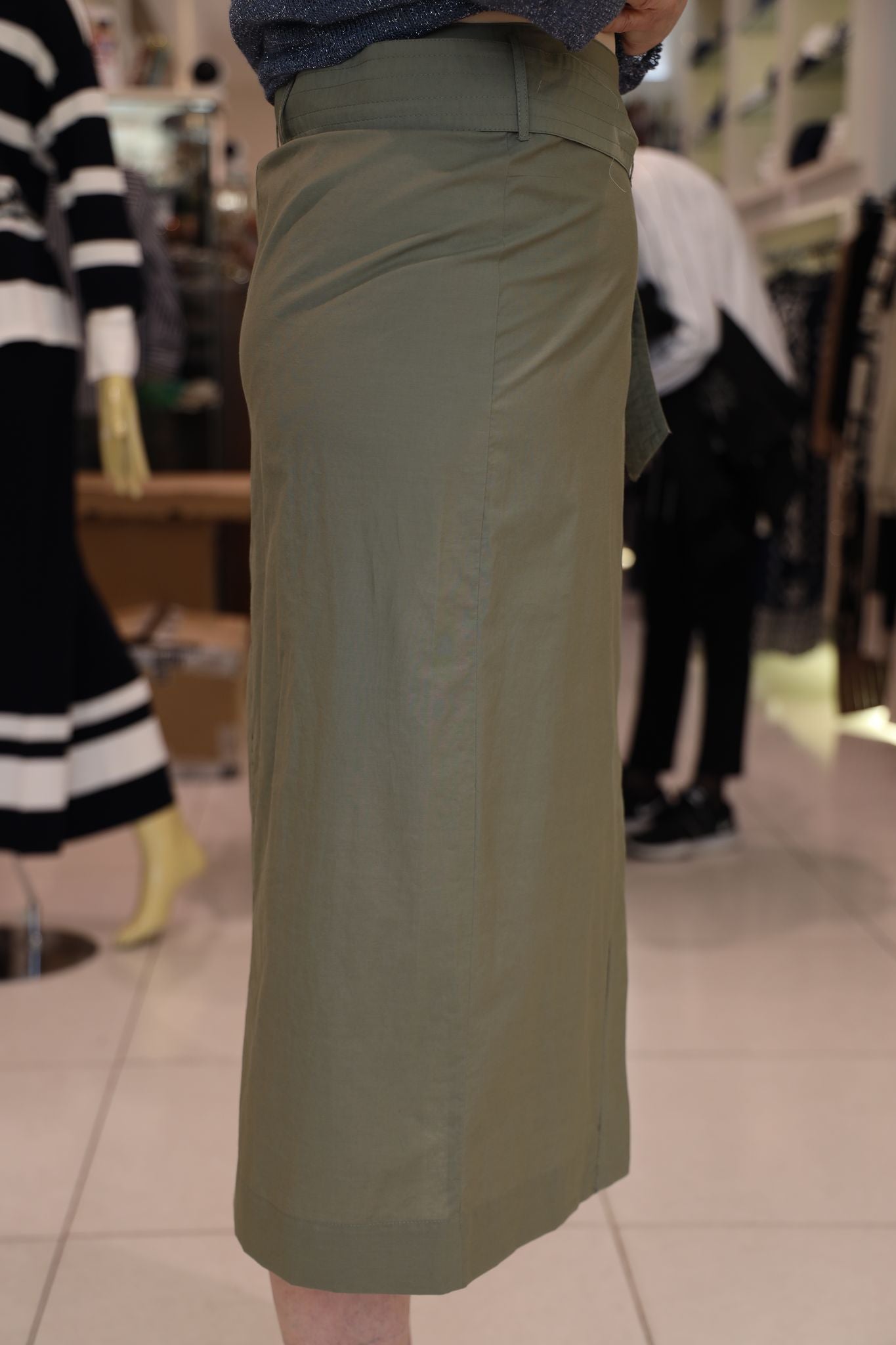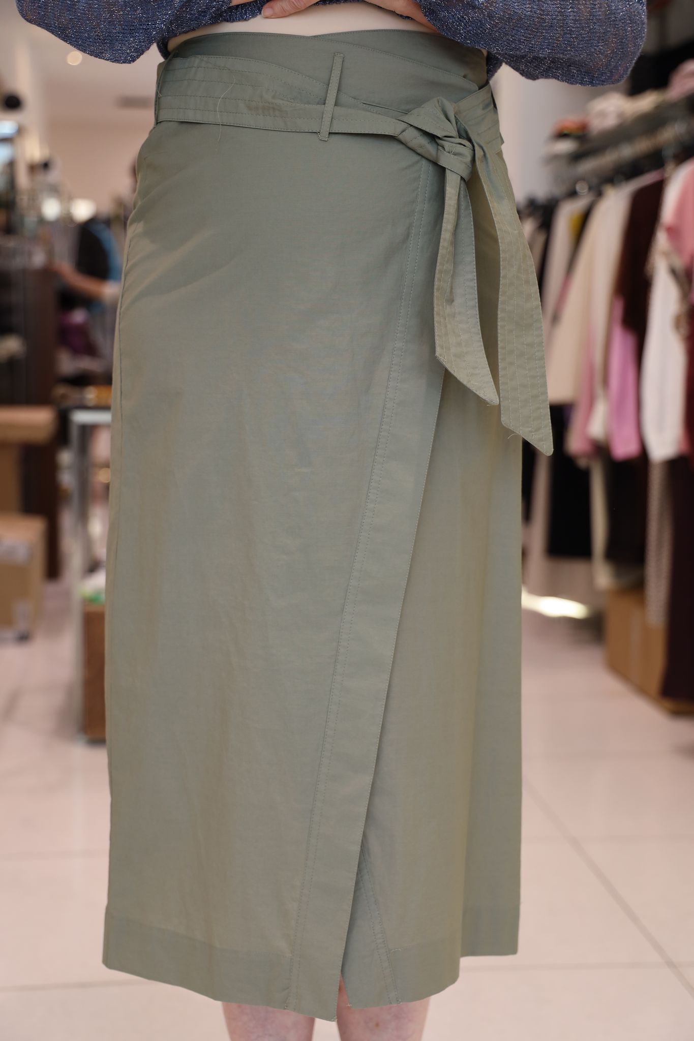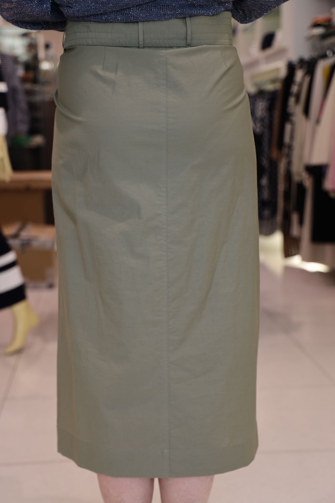 Chiusura con bottone esterno e interno, cintura in tessuto abbinata