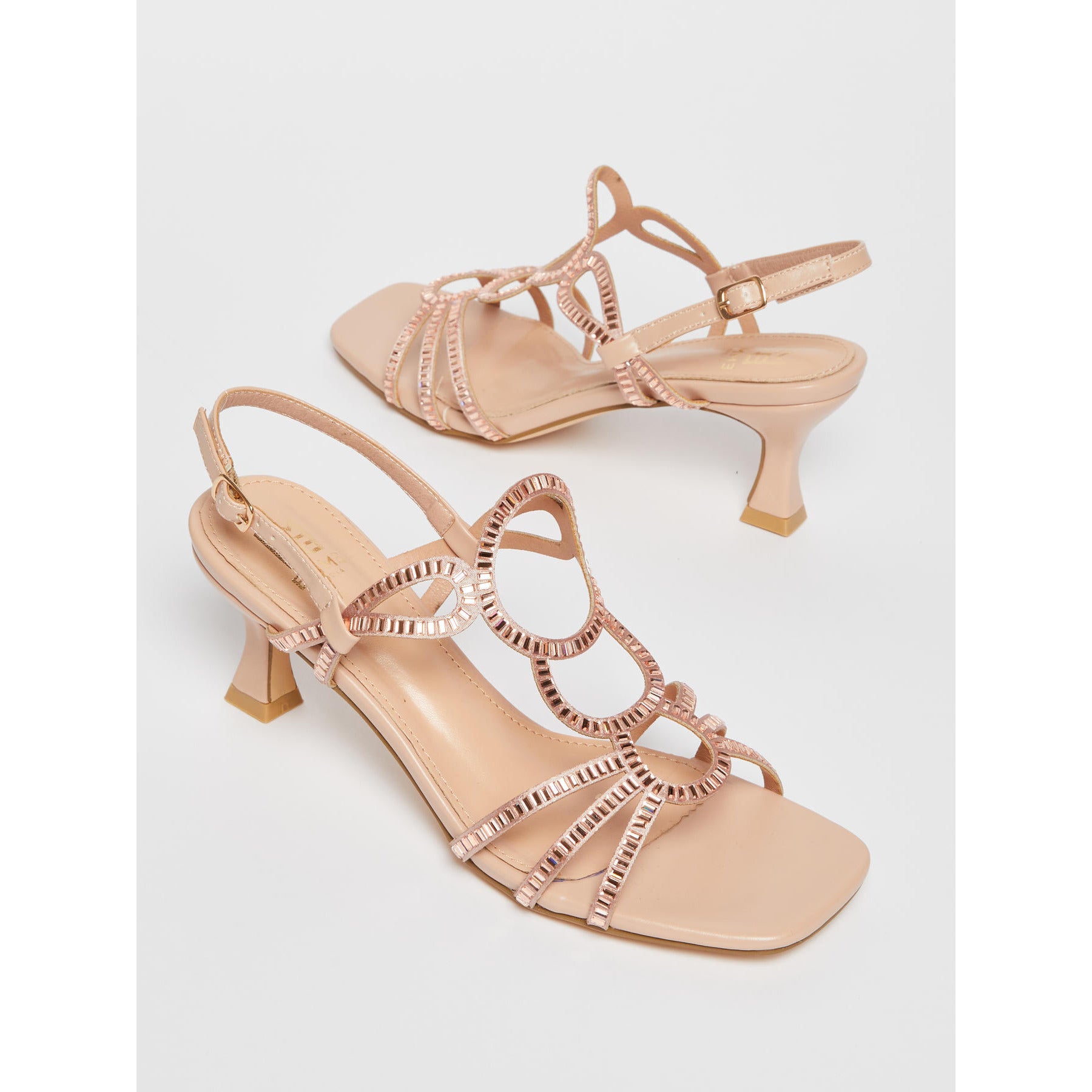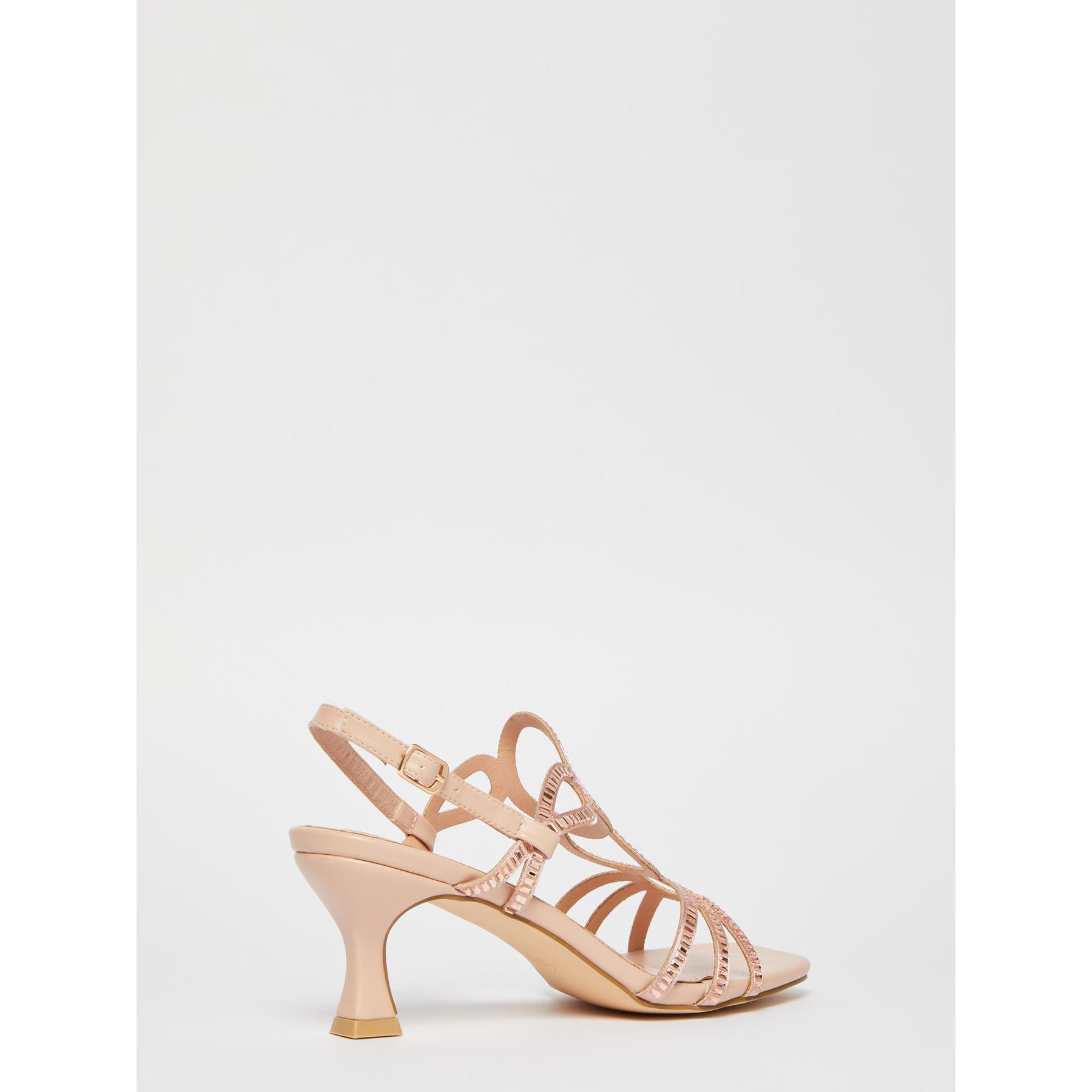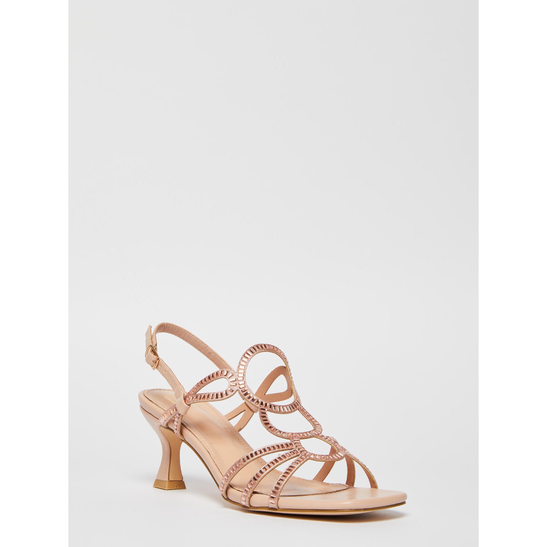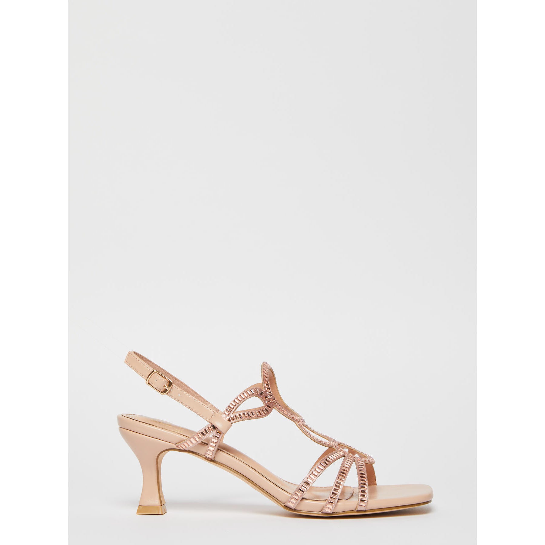 Slancia la silhouette e aggiungi una nota scintillante ai tuoi piedi grazie a questi sandali con strass applicati e tacco medio. Con cinturino per essere sempre comode.