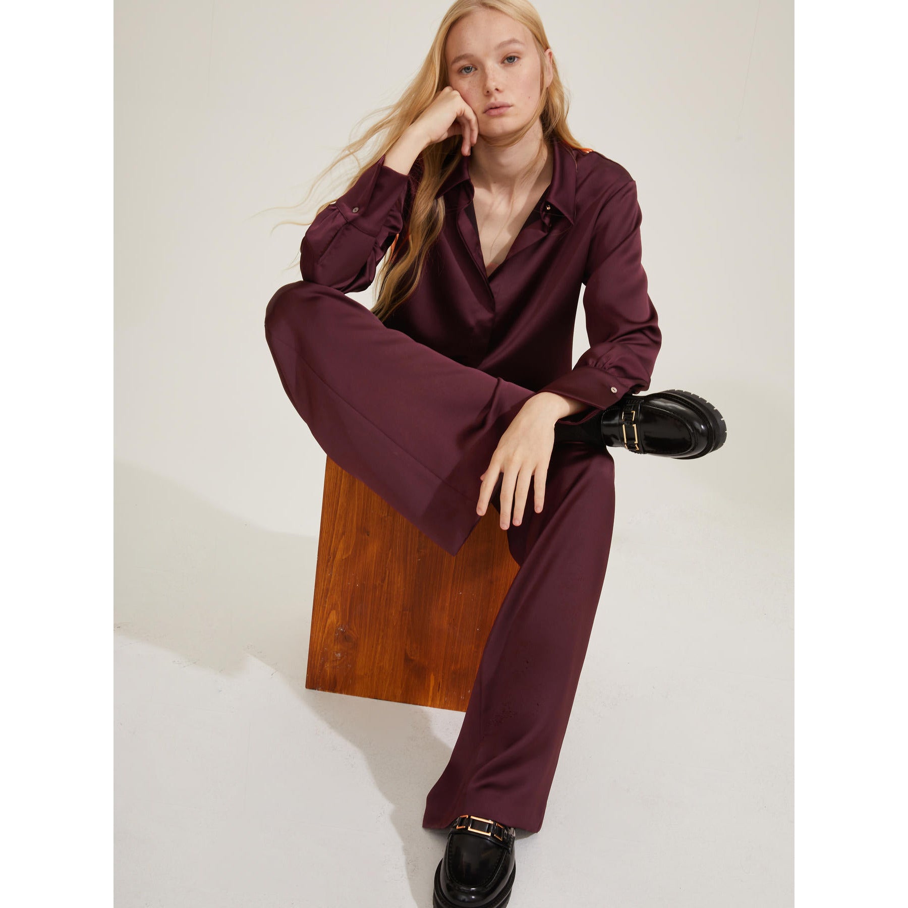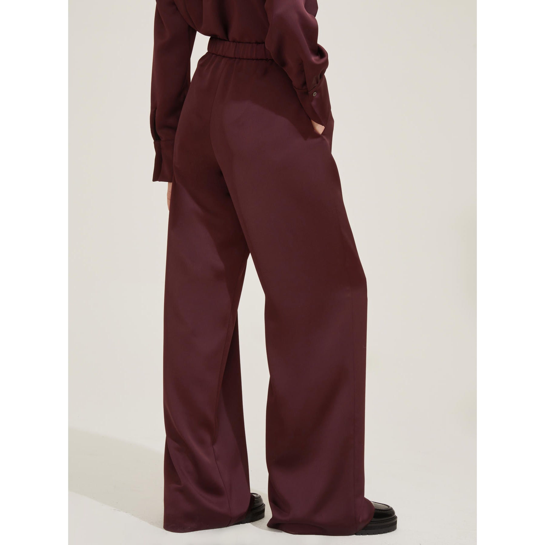 Pensato per la città, l ufficio o i momenti più sofisticati, il pantalone wide leg trova nuova energia nel tessuto lucido effetto raso. Con elastico in vita per un eleganza sempre confortevole.