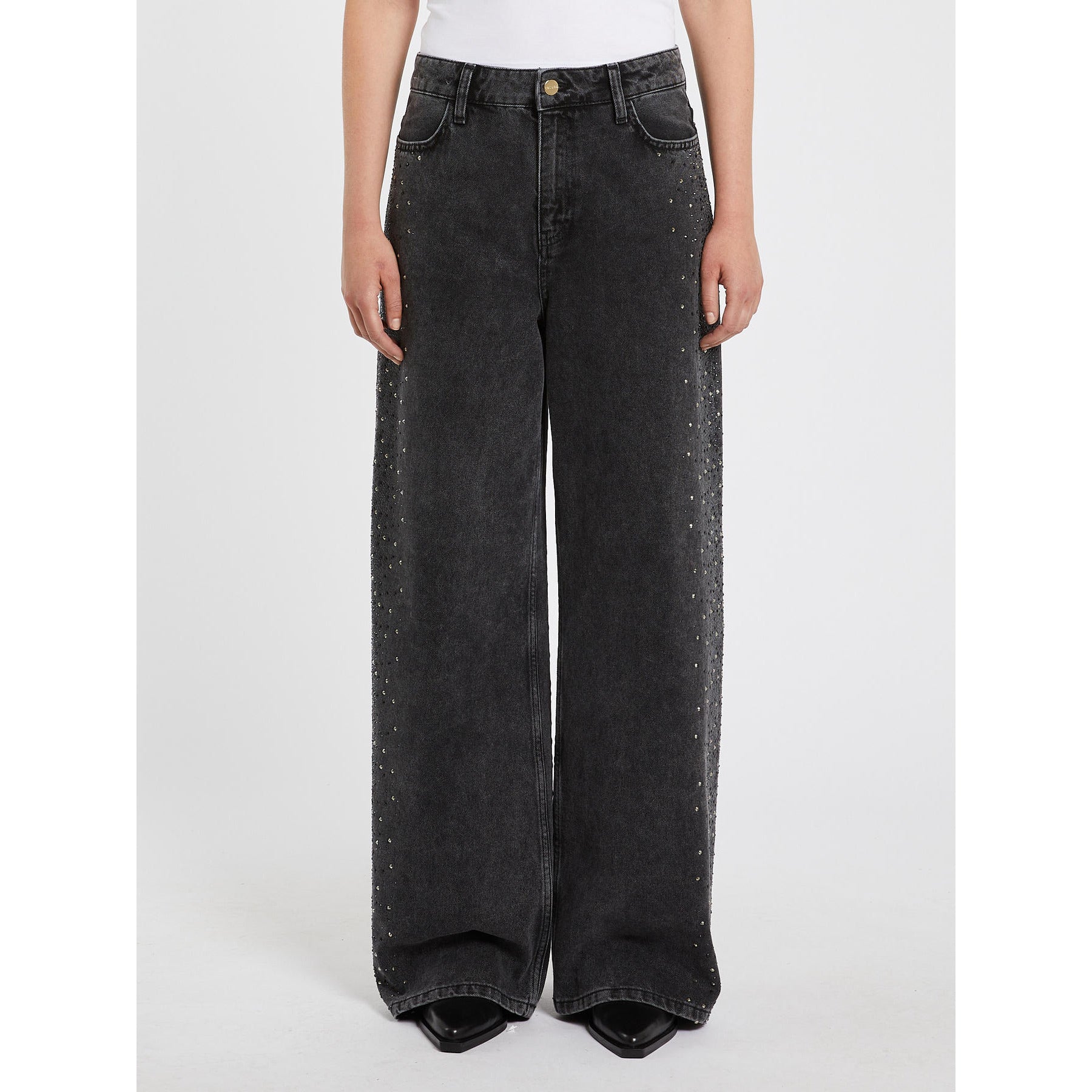 Strass applicati sui fianchi, piega stirata