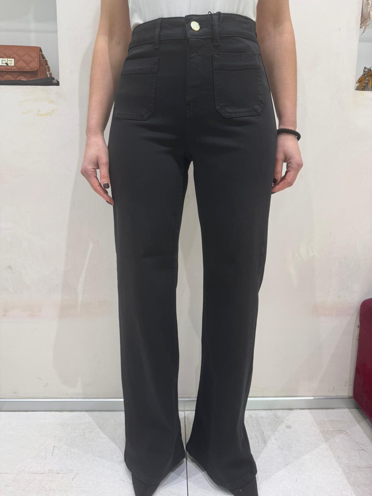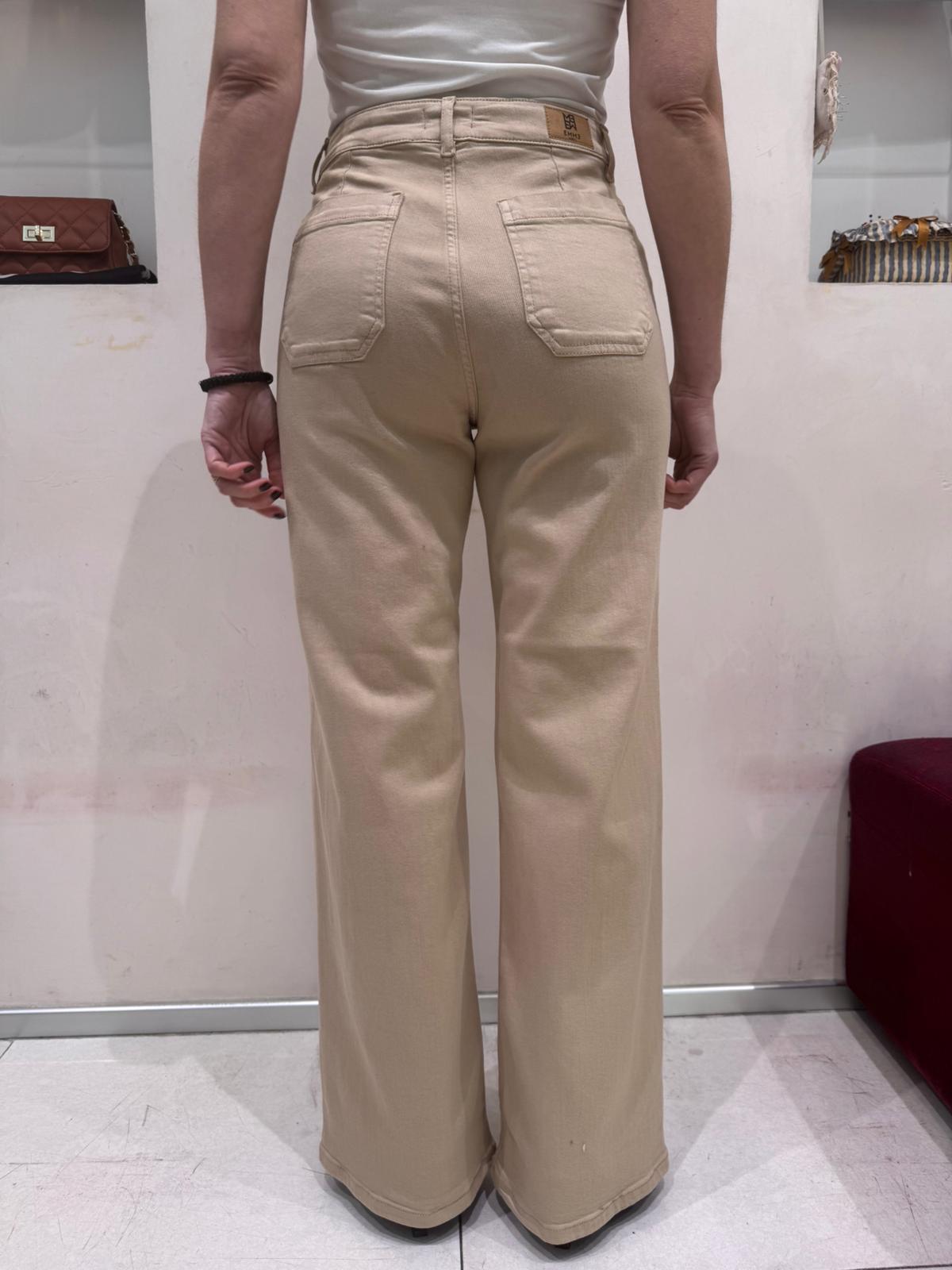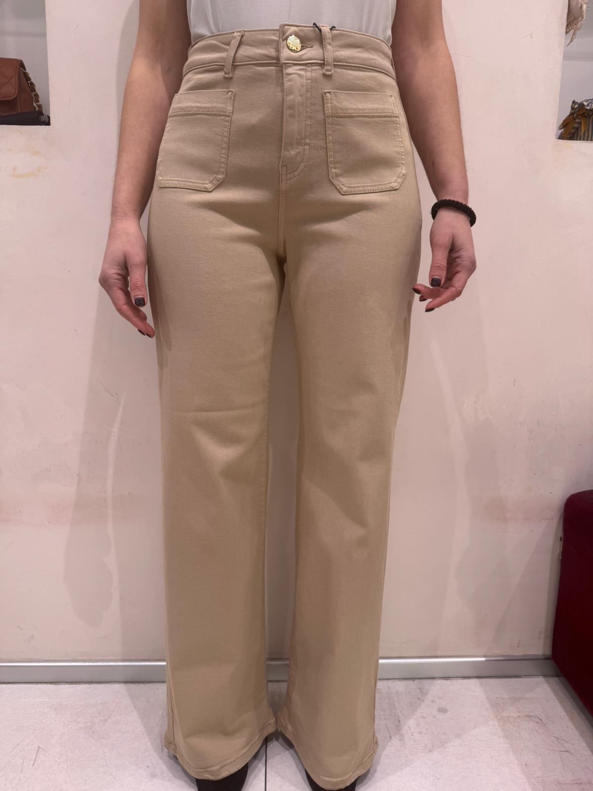 Quella delicata allure seventy che aggiunge freschezza ad ogni look! Impossibile resistere ai pantaloni in gabardina stretch, con le linee ampie e il tocco giocoso delle taschine sul davanti.