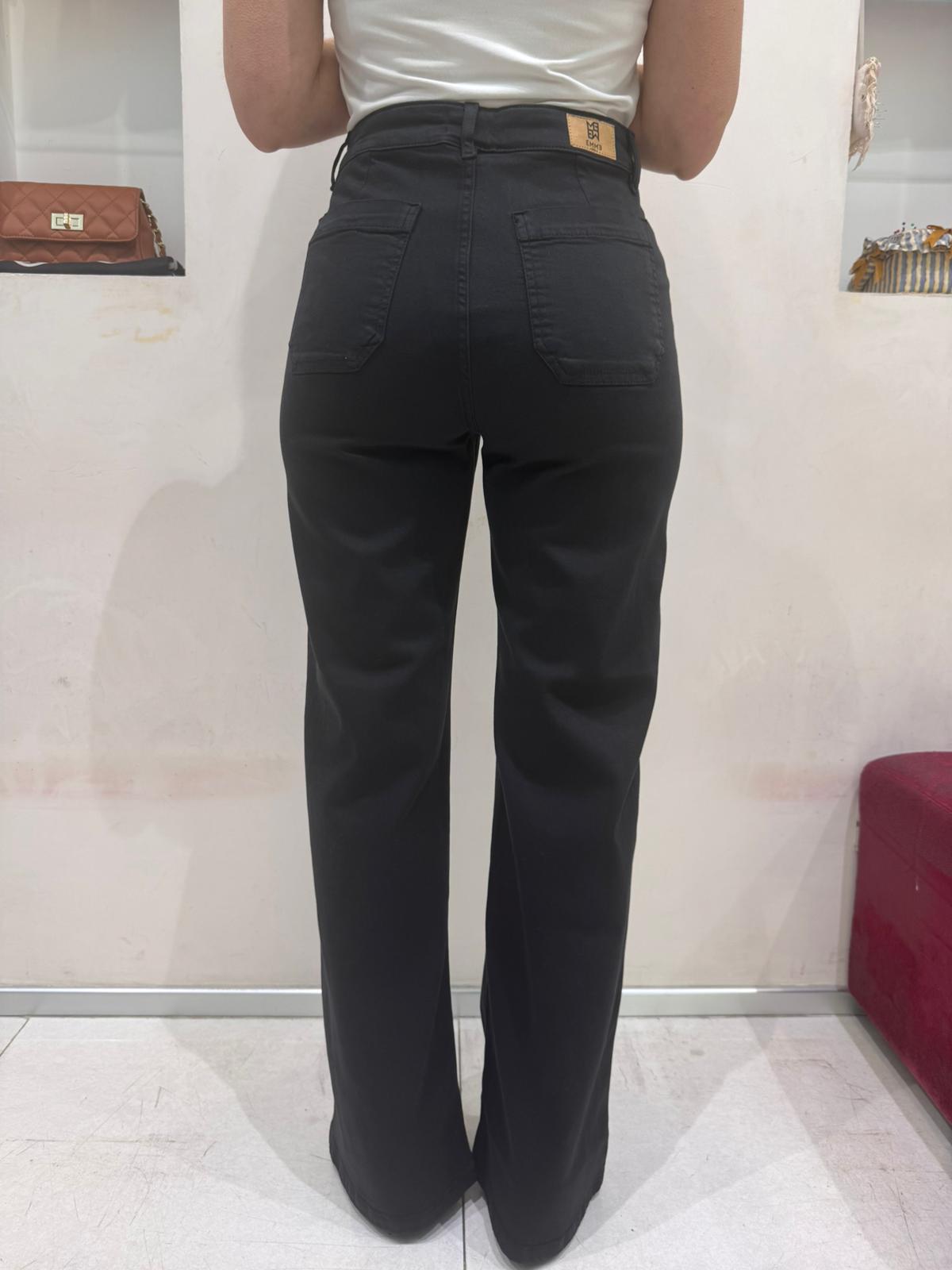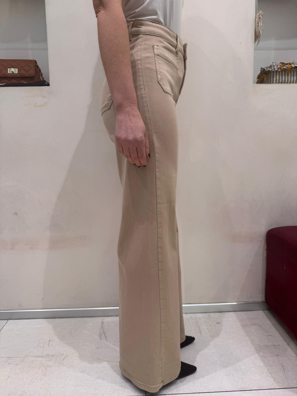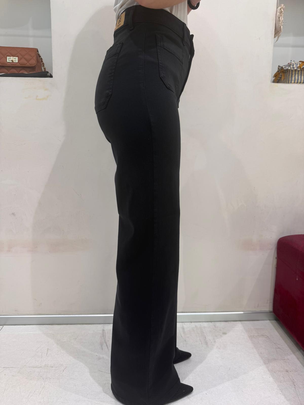 Quella delicata allure seventy che aggiunge freschezza ad ogni look! Impossibile resistere ai pantaloni in gabardina stretch, con le linee ampie e il tocco giocoso delle taschine sul davanti.