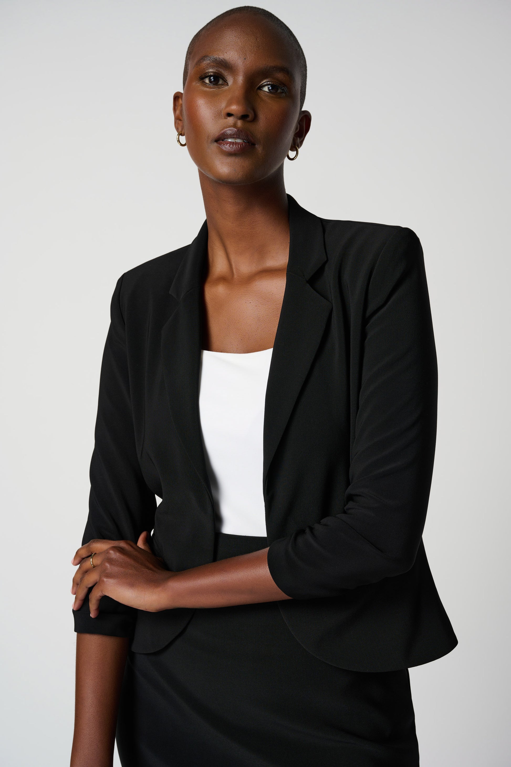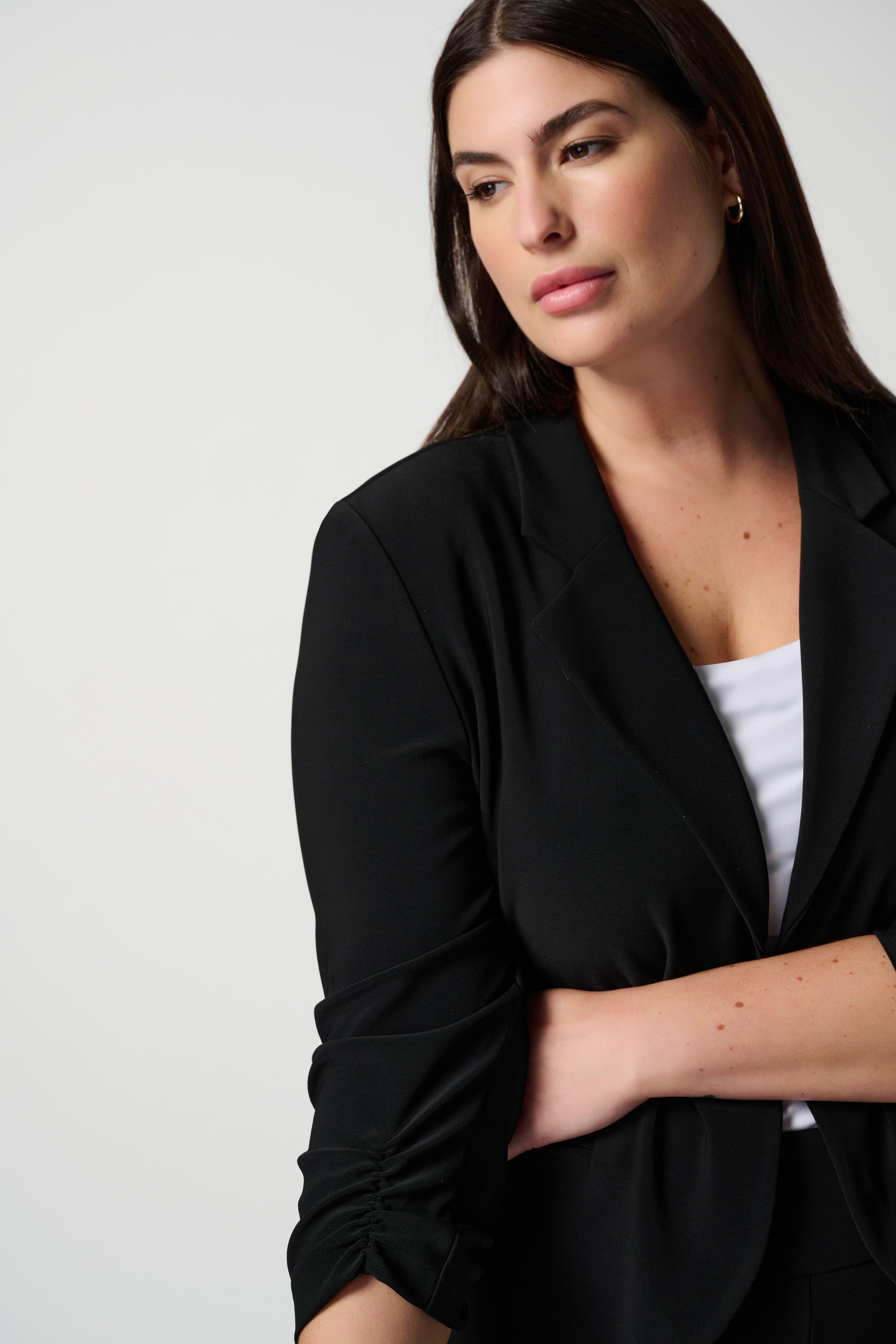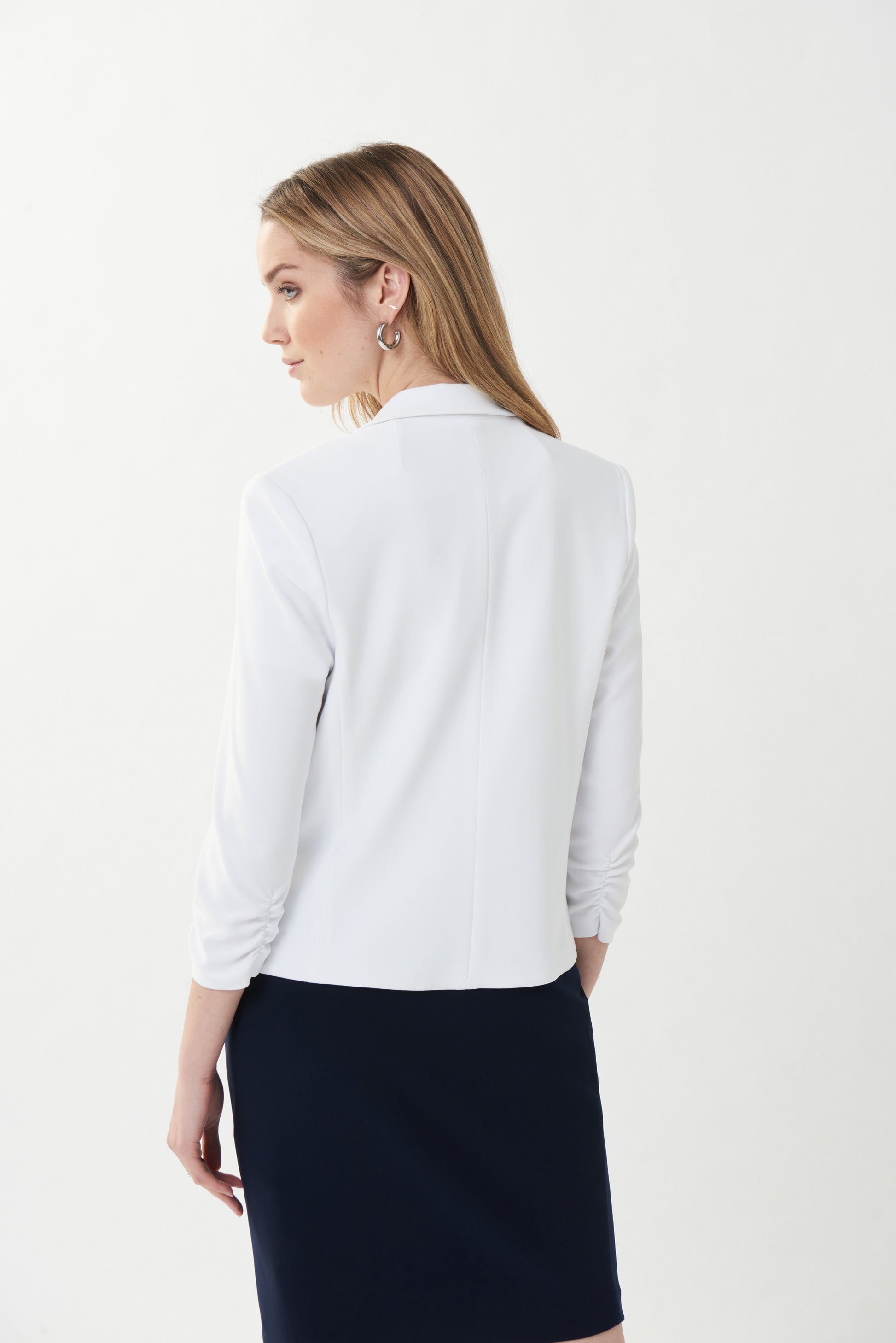 Questo blazer classico con colletto dentellato è il massimo della versatilità. Con il look e la morbidezza di un blazer destrutturato, si abbina perfettamente alla gonna a sigaretta coordinata, ai tuoi jeans preferiti o a eleganti pantaloni di pelle. Le finte tasche anteriori e le maniche a tre quarti arricciate aggiungono un tocco di stile in più.
