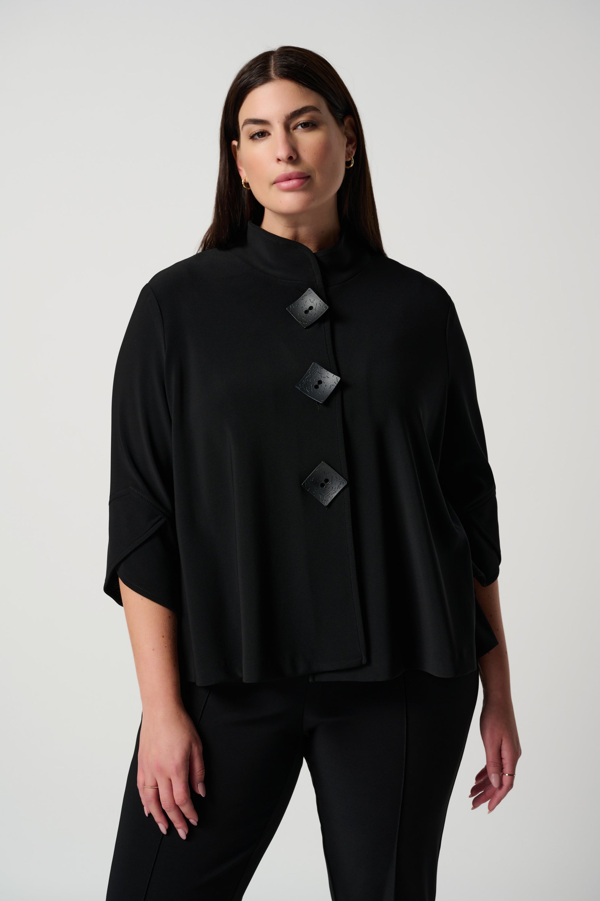 Sfoggia un look sofisticato con questa popolare giacca a trapezio con colletto rialzato e vistosi bottoni. Ogni dettaglio di questa giacca a trapezio stile anni Settanta esprime sicurezza ed eccellenza. Dalle splendide maniche a 3/4 con risvolti fino agli inserti posteriori, questo capo originale dona un look che sprigiona l essenza della donna contemporanea.