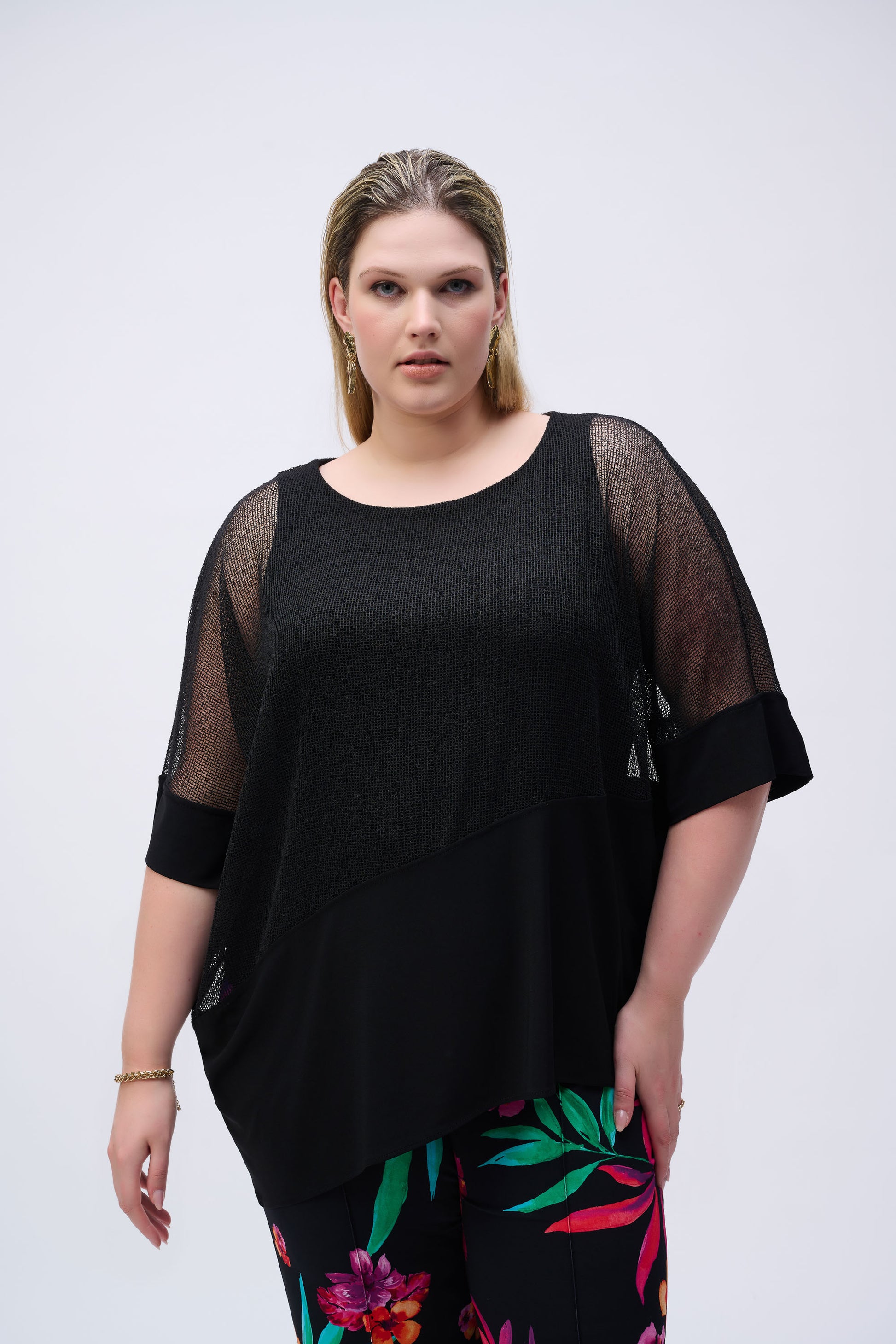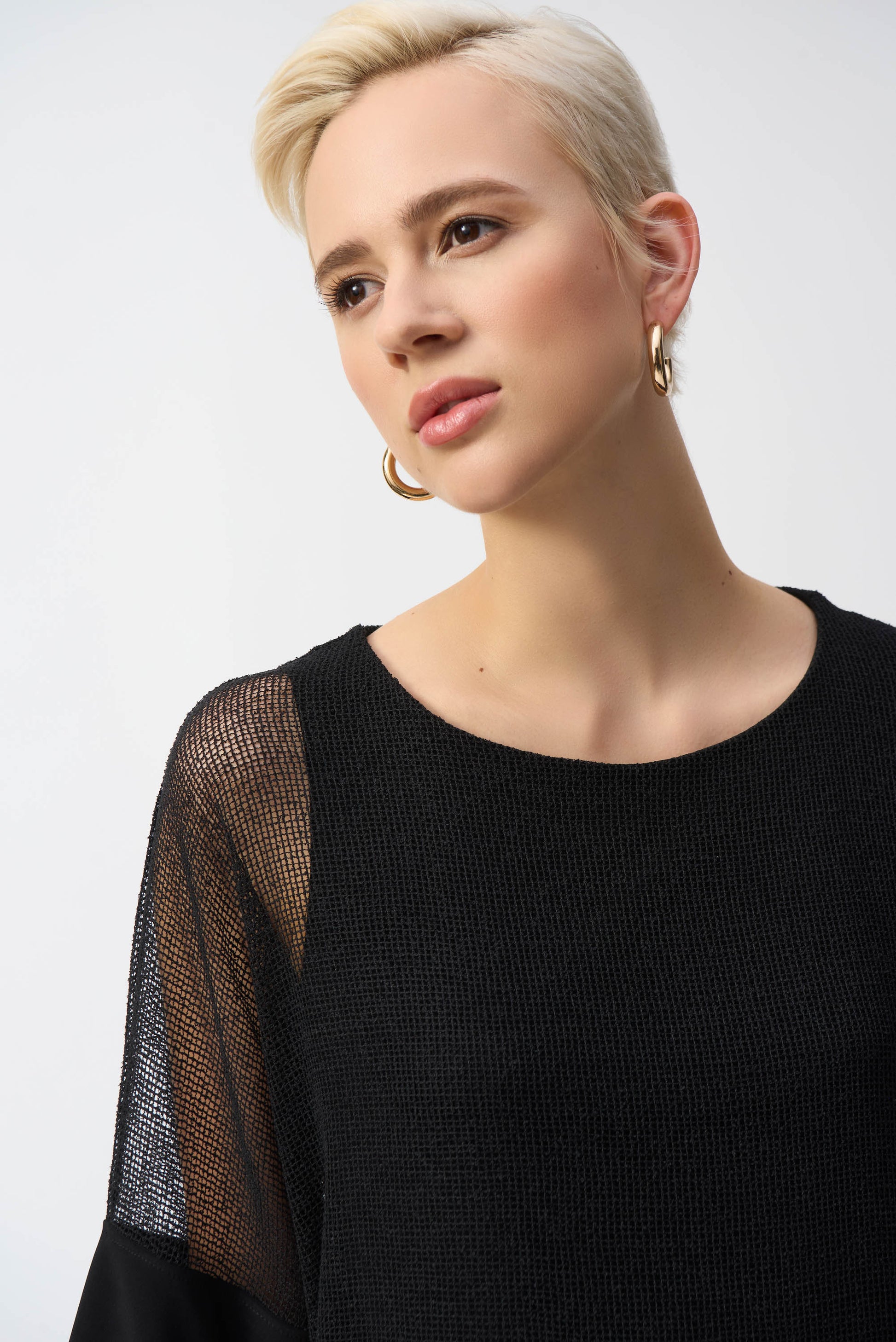 Ecco la maglia Joseph Ribkoff, un capo estivo chic e casual essenziale, pensato per uno stile senza sforzo. Caratterizzato da una comoda vestibilità ampia e un design lungo fino ai fianchi, questo top vanta un lusinghiero scollo a barchetta e maniche a palloncino uniche. Il tessuto trasparente a strati aggiunge un tocco di eleganza al suo motivo semplice, rendendolo perfetto per qualsiasi occasione casual. Abbraccia la raffinatezza con questo versatile capo essenziale del guardaroba.