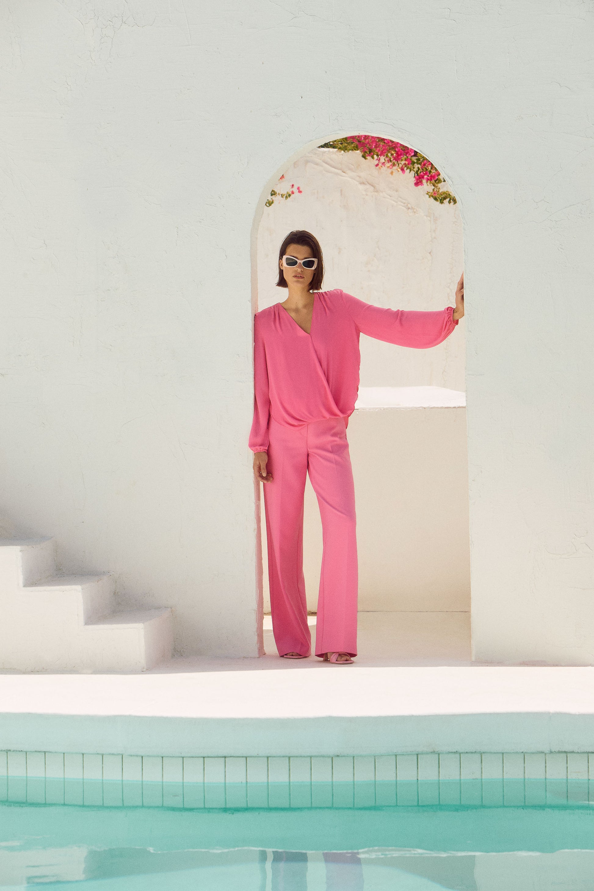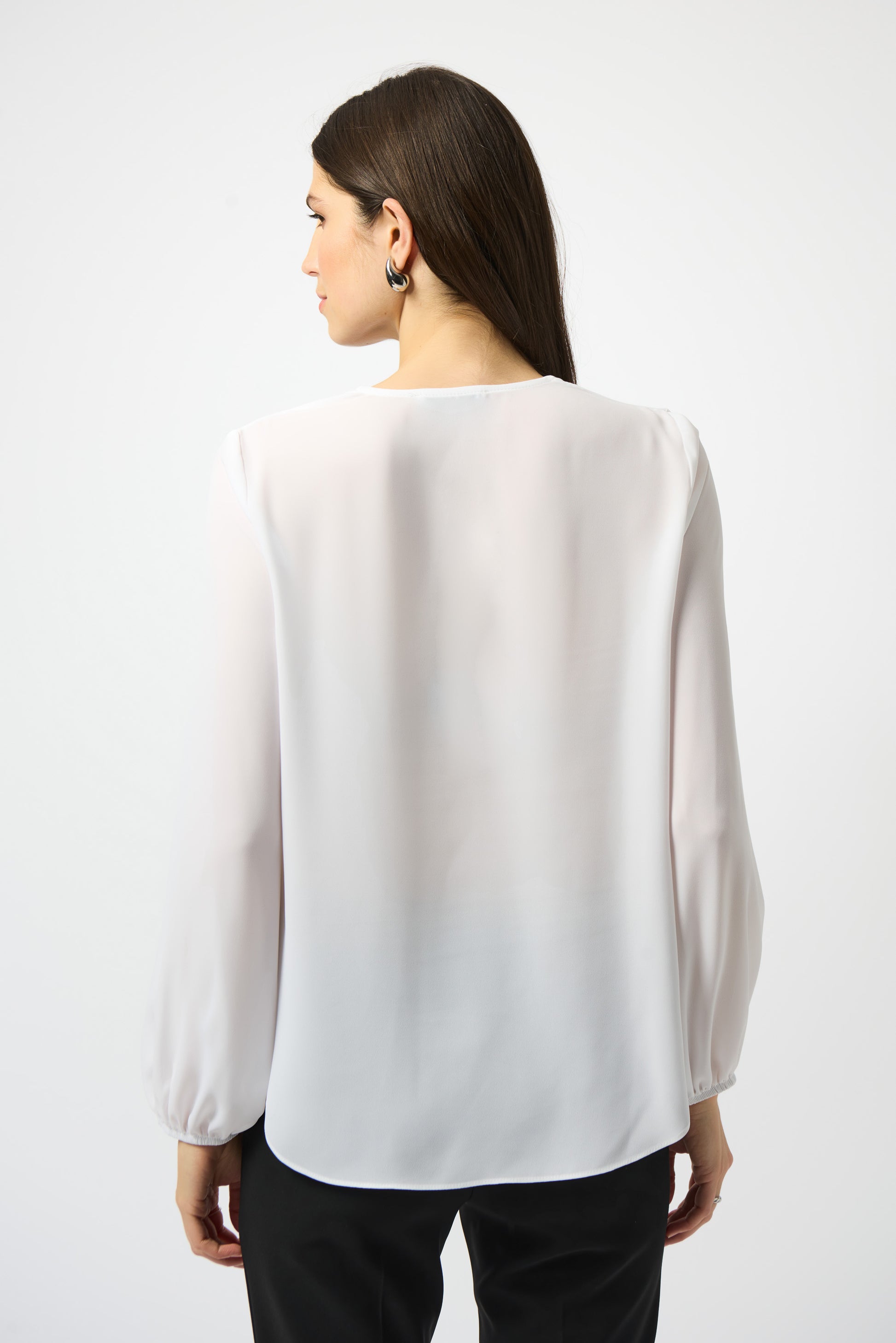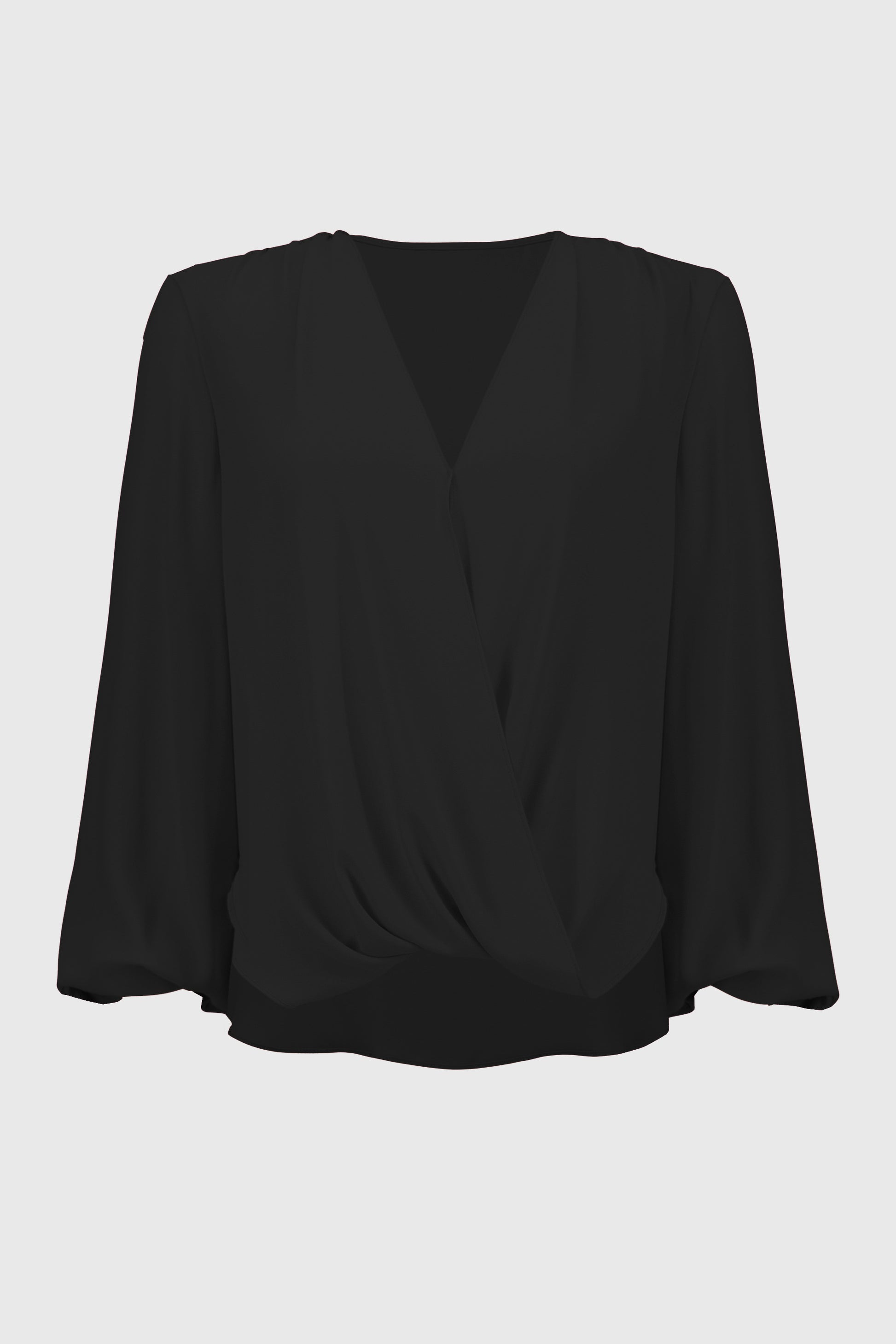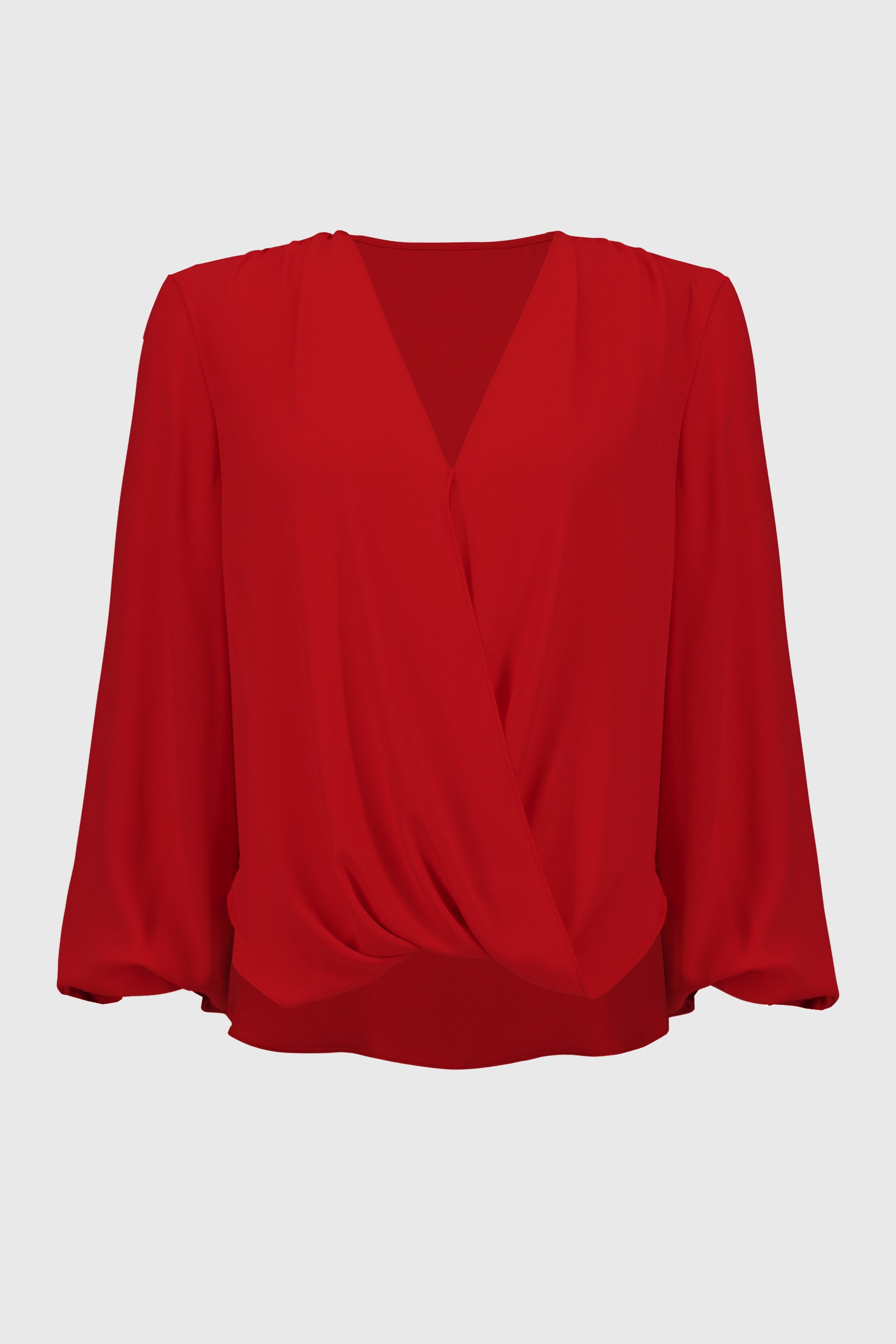 Lasciati avvolgere dalla pura eleganza di questo top in georgette. Lo splendido scollo a portafoglio e l orlo asimmetrico aggiungono carattere al taglio squadrato del capo. Le lunghe maniche a sbuffo conferiscono un tocco raffinato ad ogni movimento e un fascino senza tempo a questo capo straordinario.