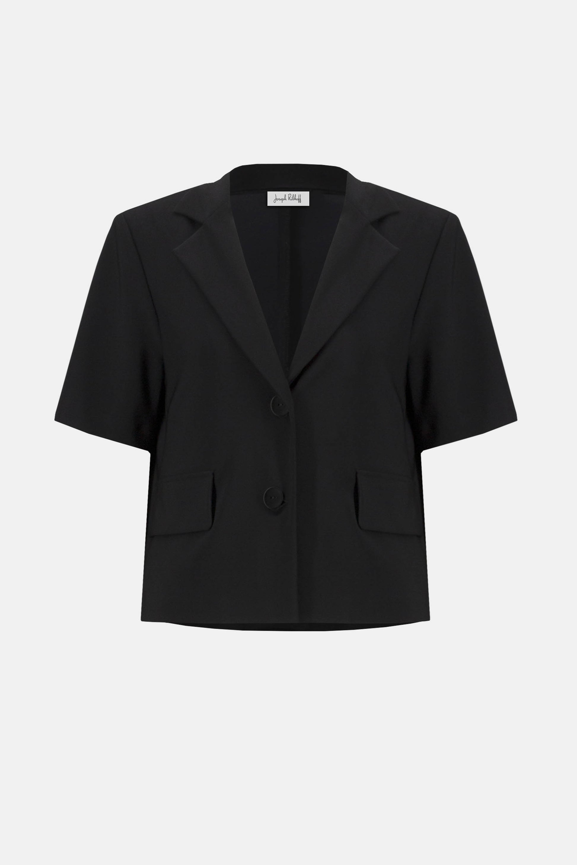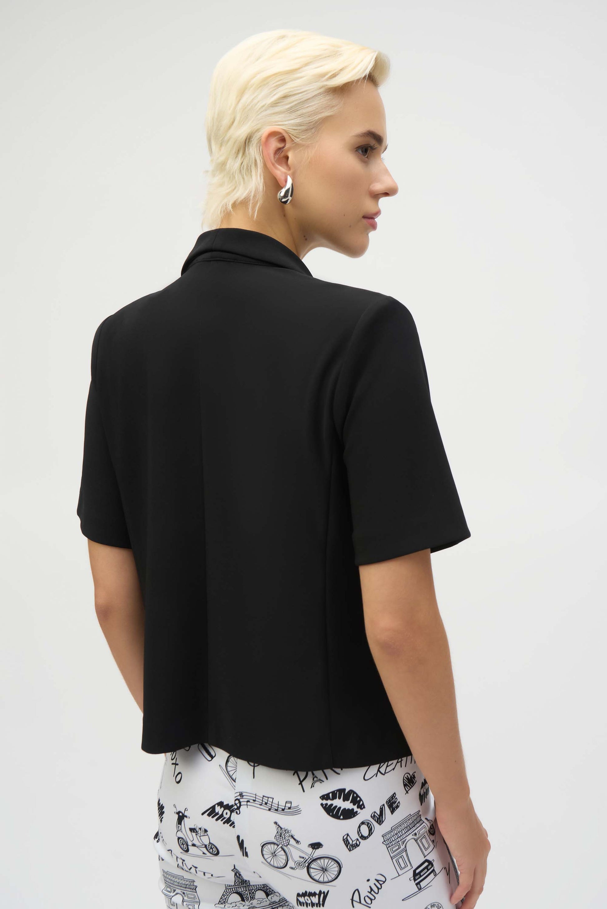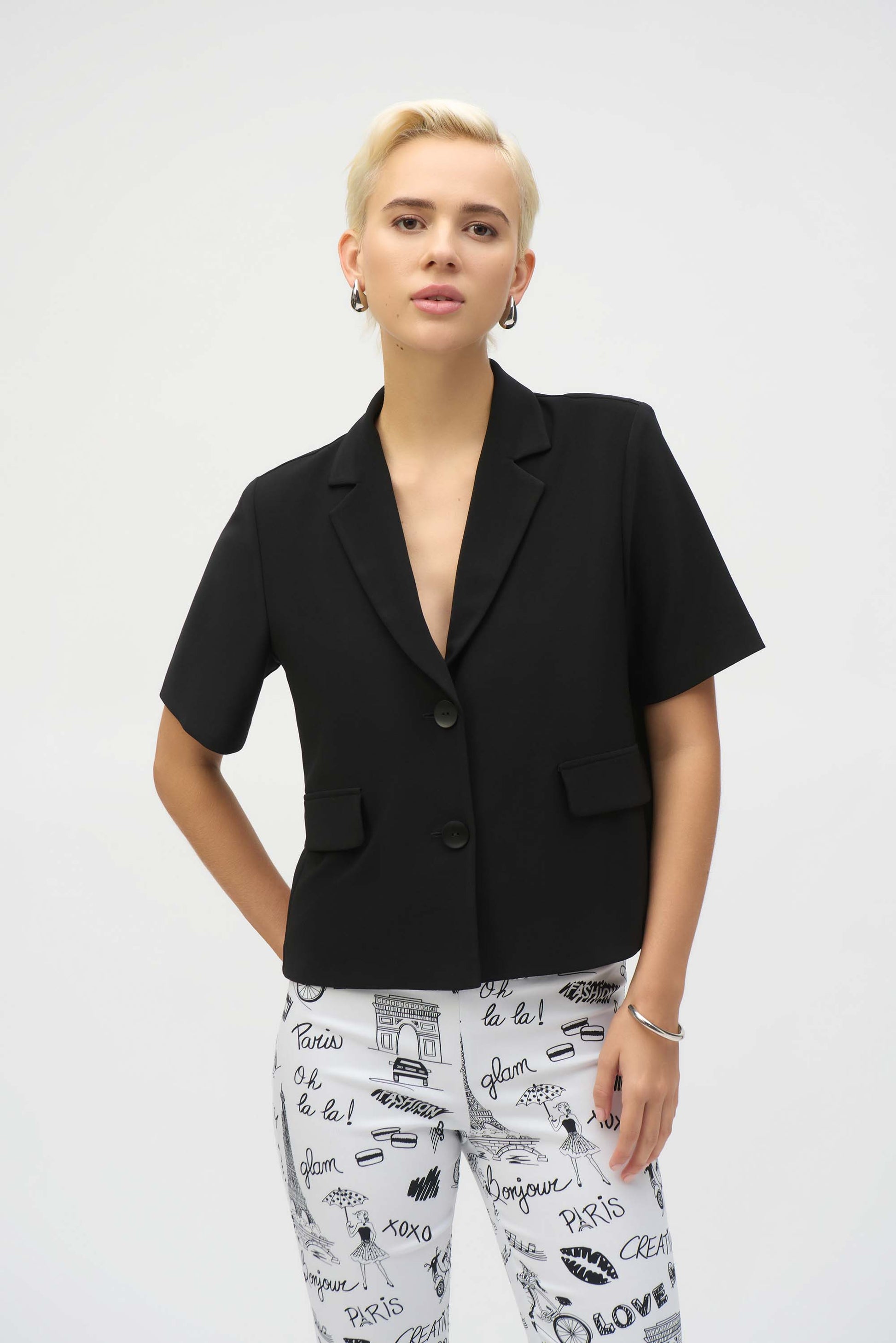 Scopri il perfetto mix di stile e comfort con questo capo di Joseph Ribkoff. Con risvolto dentellato e chiusura con bottoni, questa giacca lunga fino ai fianchi vanta una vestibilità regolare ideale per ogni occasione, formale, da ufficio o casual. Le maniche corte e dritte con comode tasche ne esaltano la praticità, rendendola un aggiunta versatile al tuo guardaroba da lavoro e quotidiano.