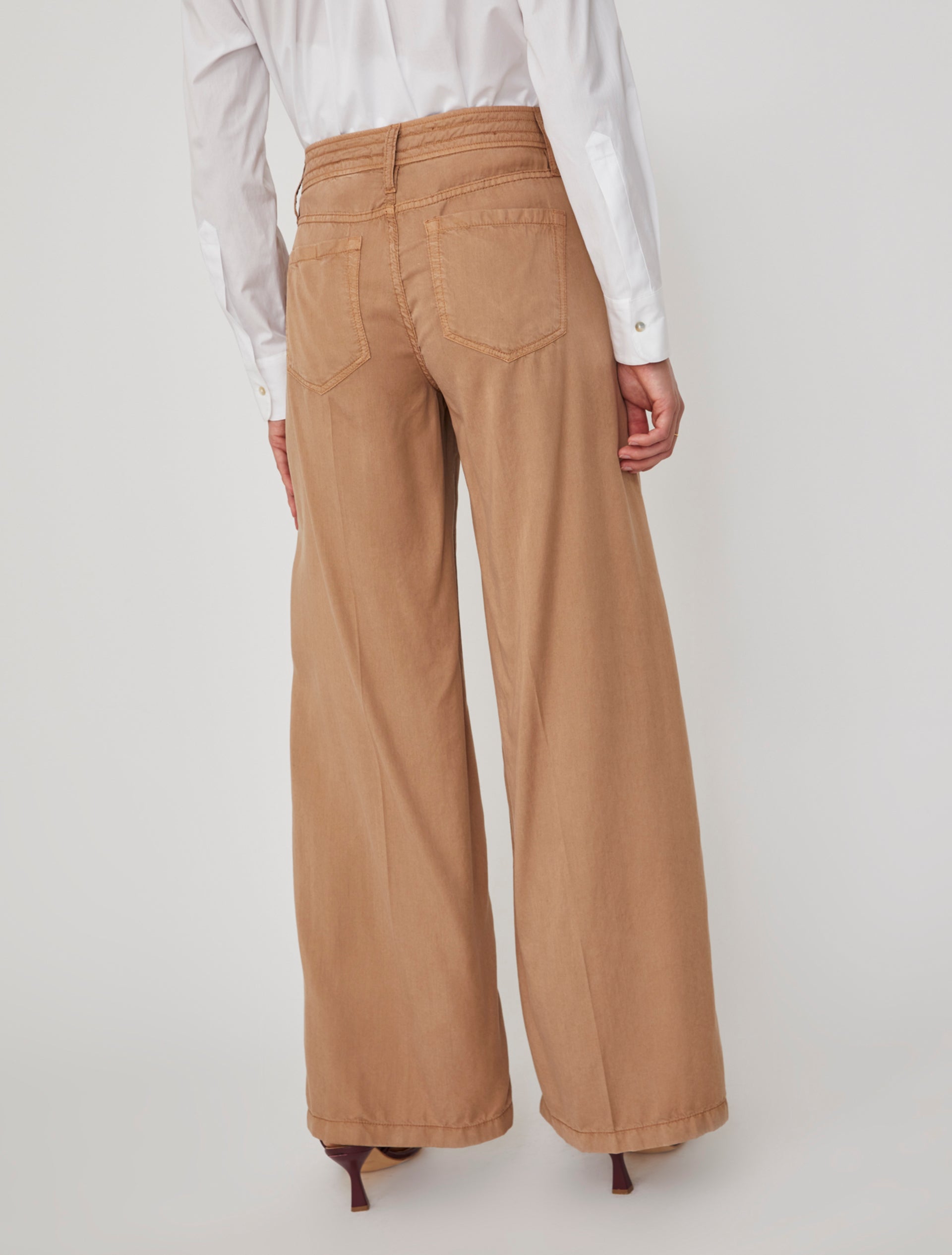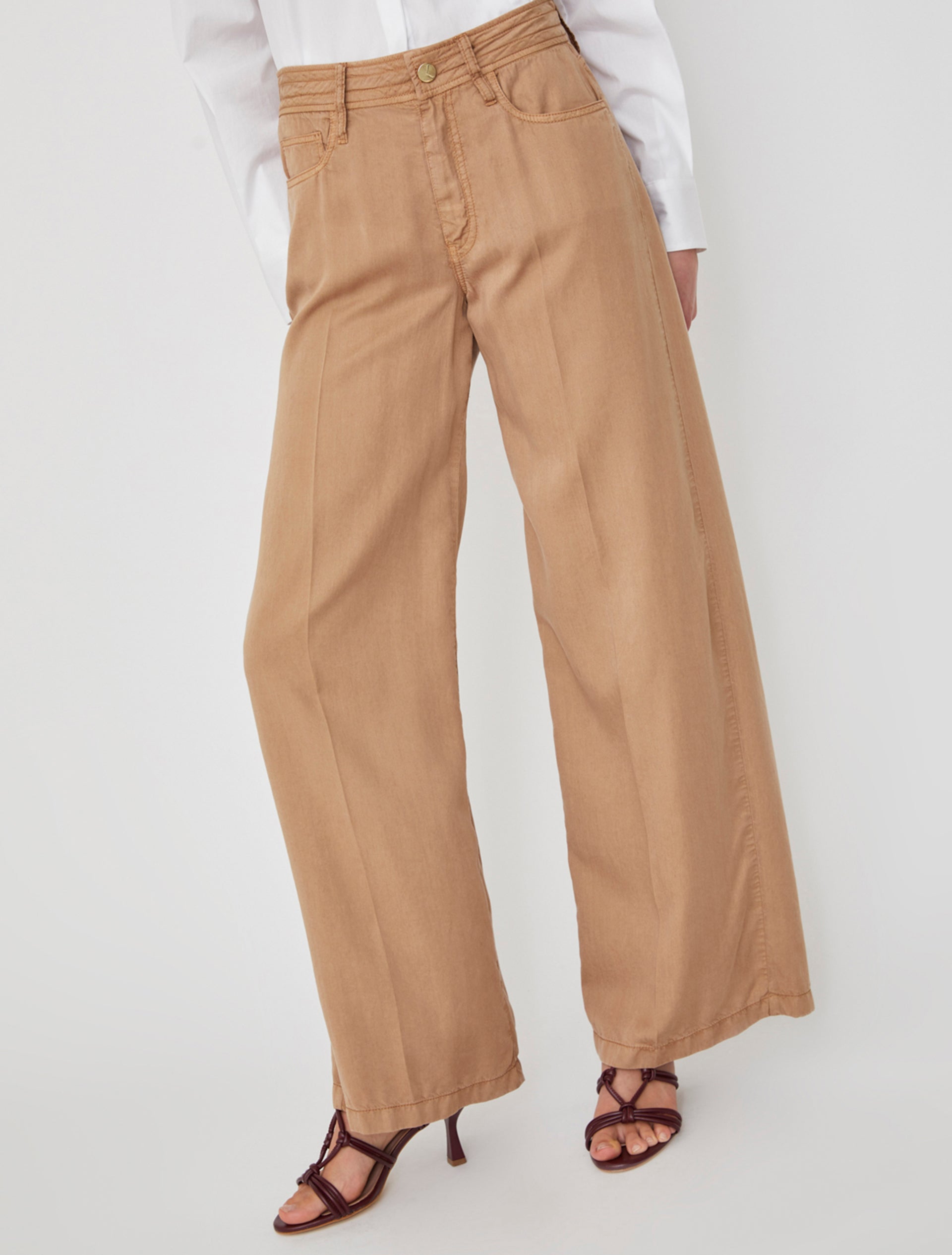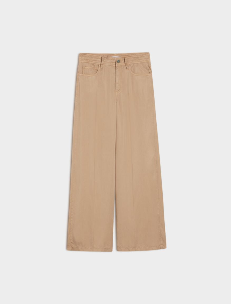 Pantaloni vita alta a cinque tasche dalla linea dritta. Realizzato in lyocell, un tessuto che rende questo pantalone fresco e fluido e che tra le sue proprietà ha la traspirabilità.
